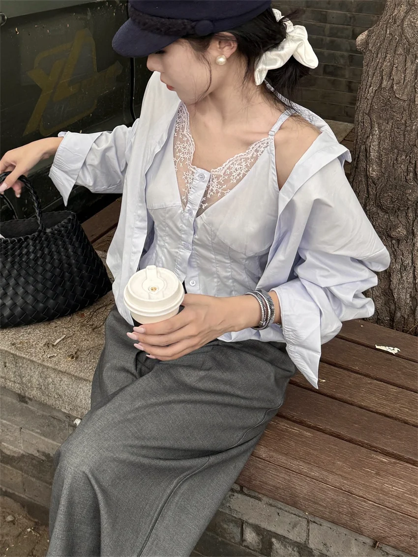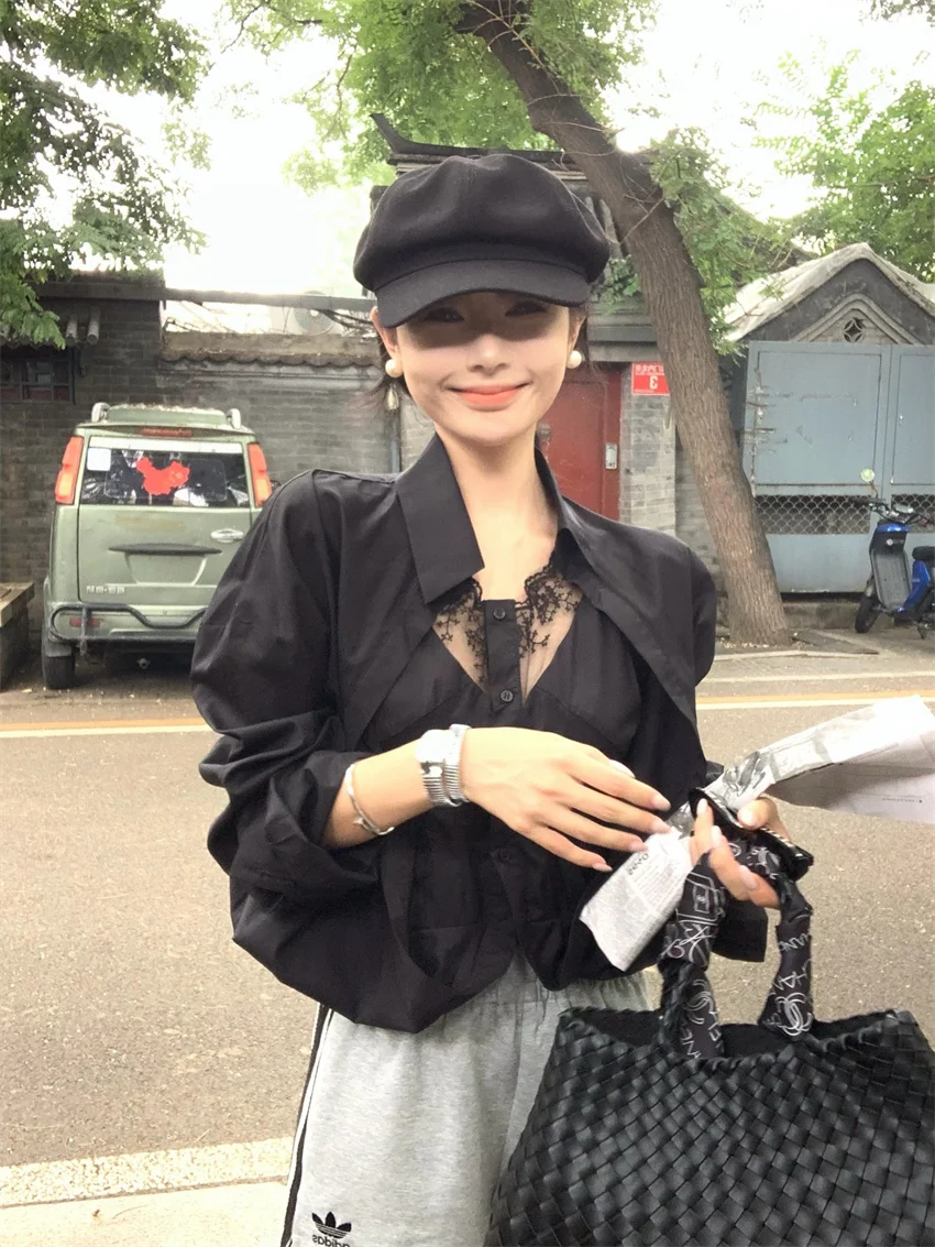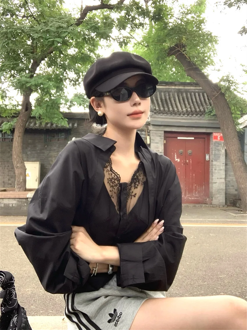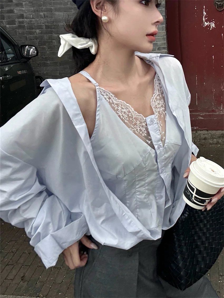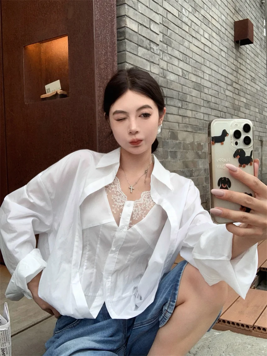 KYLETHOMASW - Elegant Lace Shirts Women New Fashion Slim 2024 Daily High Street Full Sleeve Sexy All Match Autumn Daily Casual