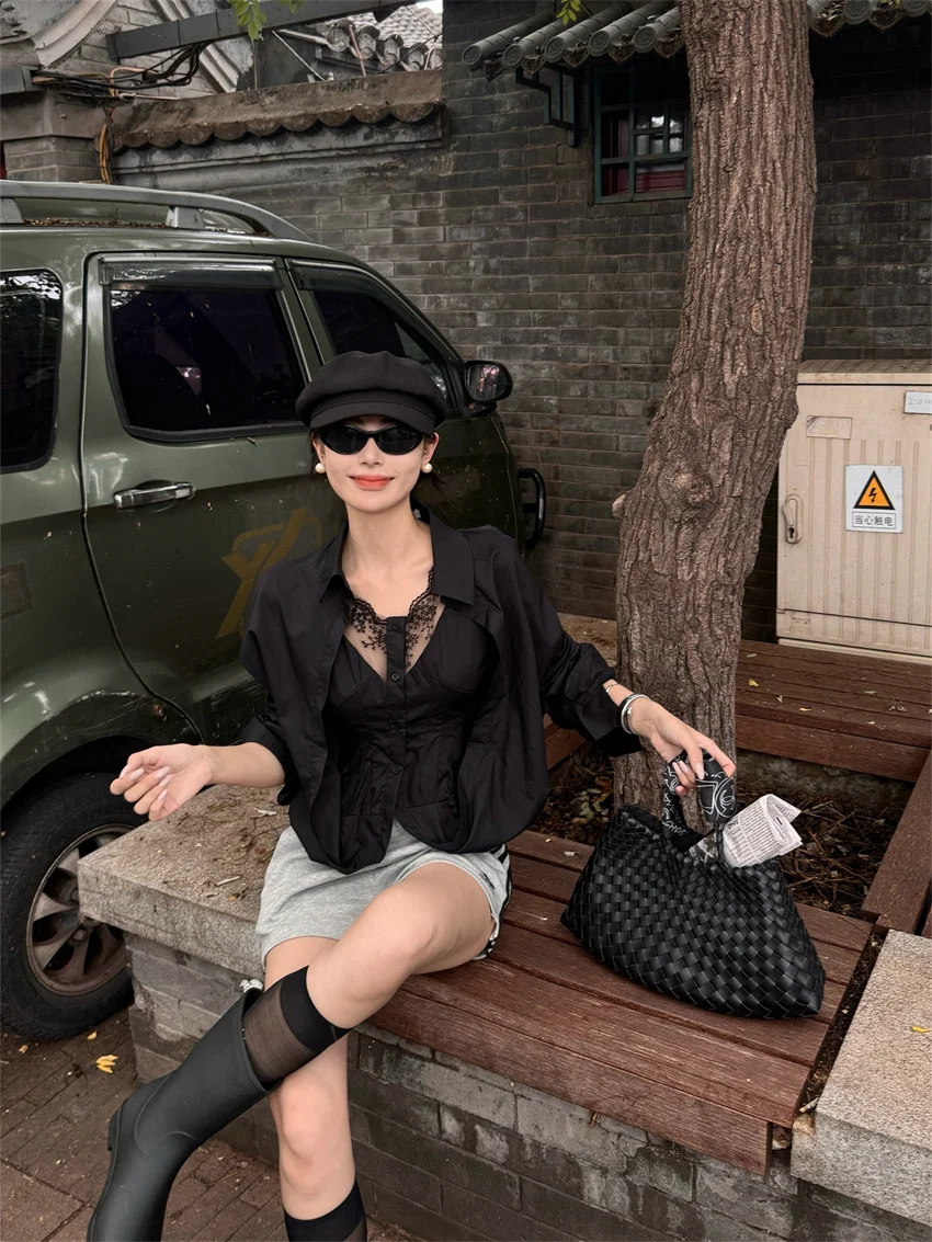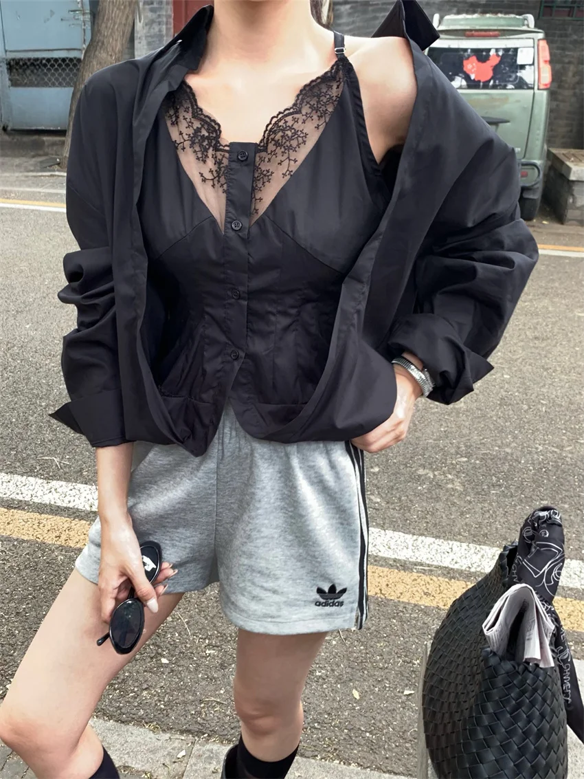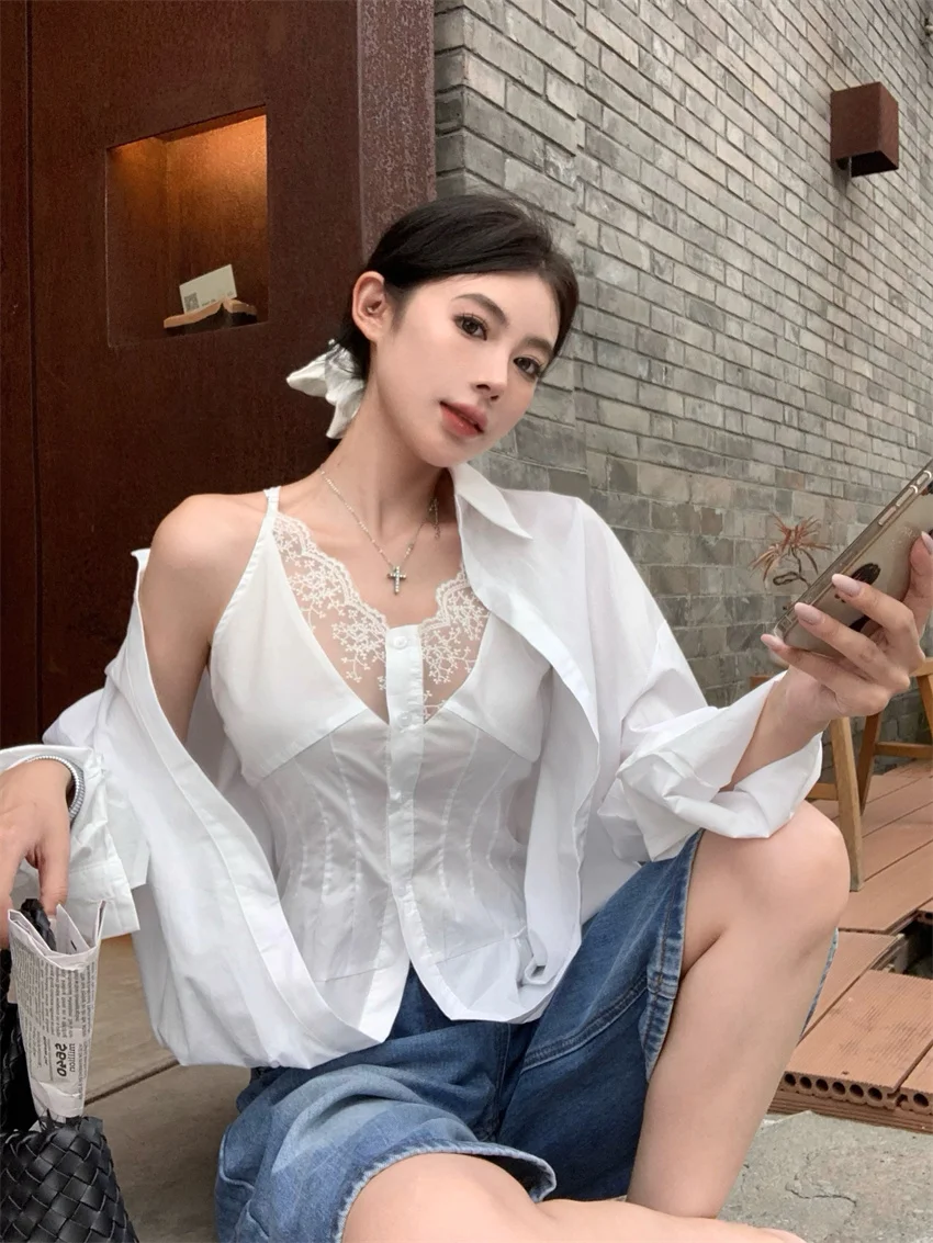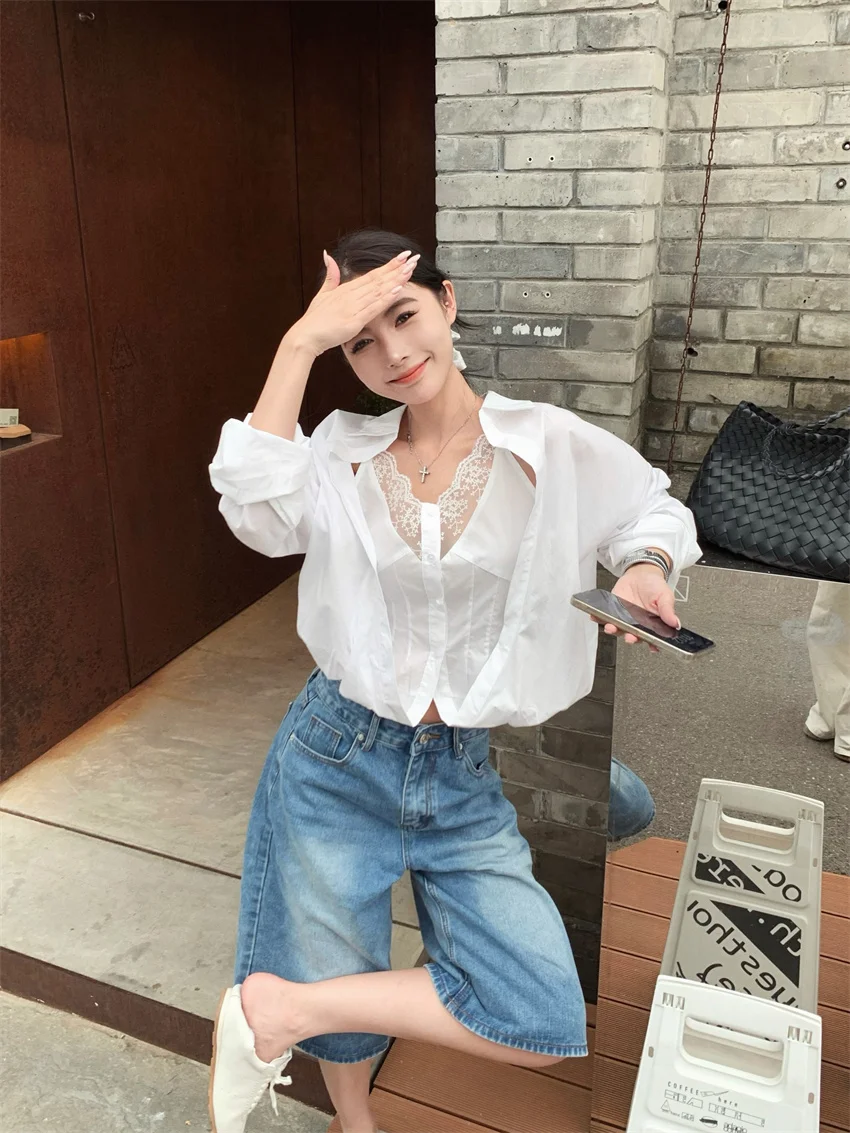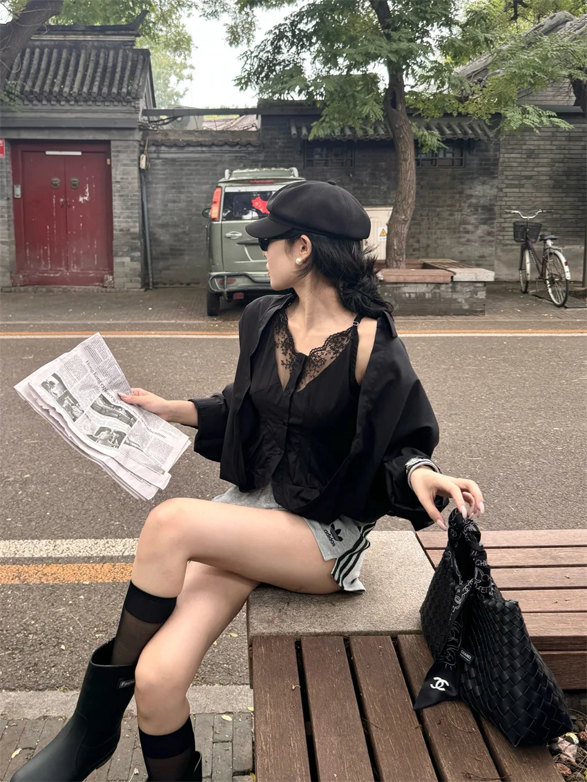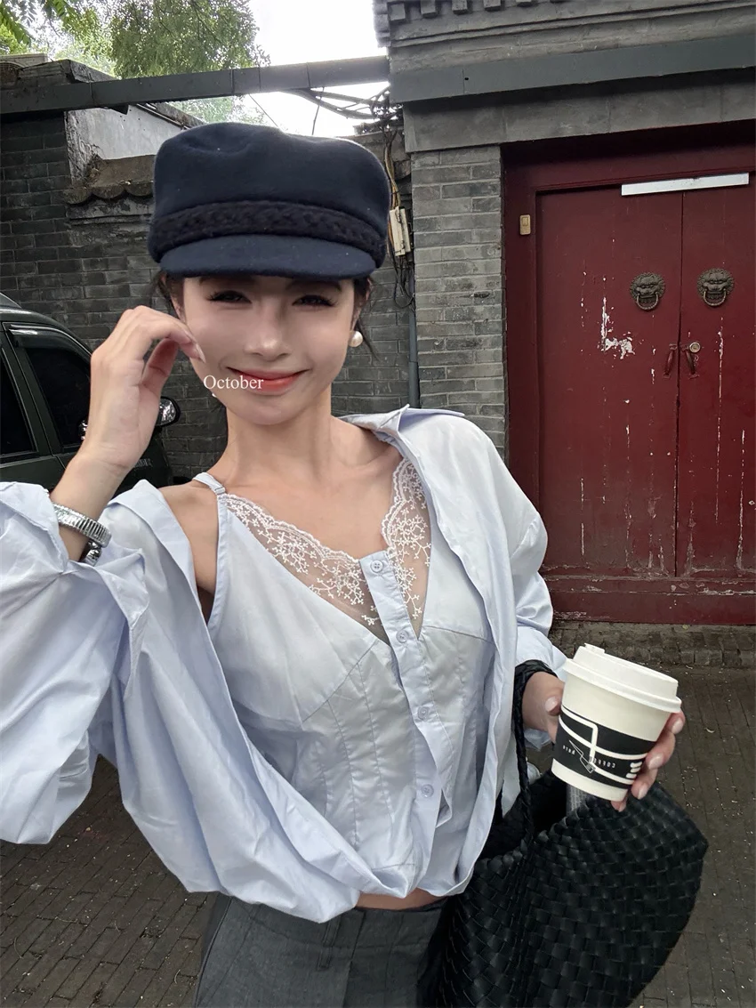 KYLETHOMASW - Elegant Lace Shirts Women New Fashion Slim 2024 Daily High Street Full Sleeve Sexy All Match Autumn Daily Casual