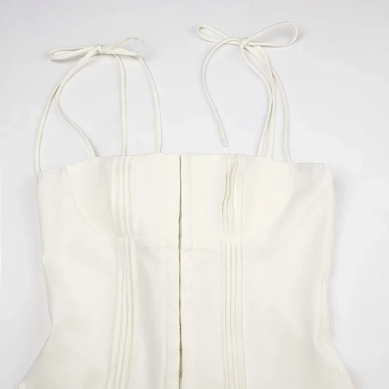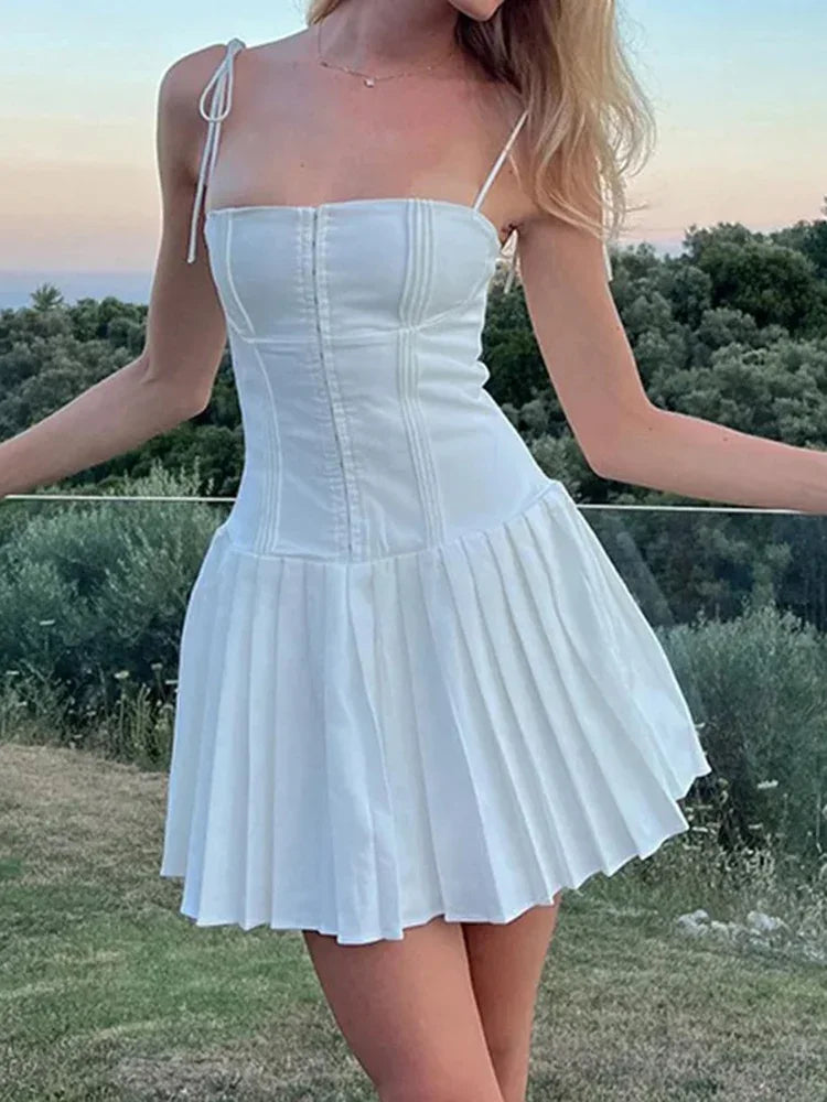 KYLETHOMASW - Elegant Spaghetti Strap Slim Mini Dress Summer Fairy Corset Pleated Chic Short Dresses Lace Up Y2K Party Evening Holiday Vestido