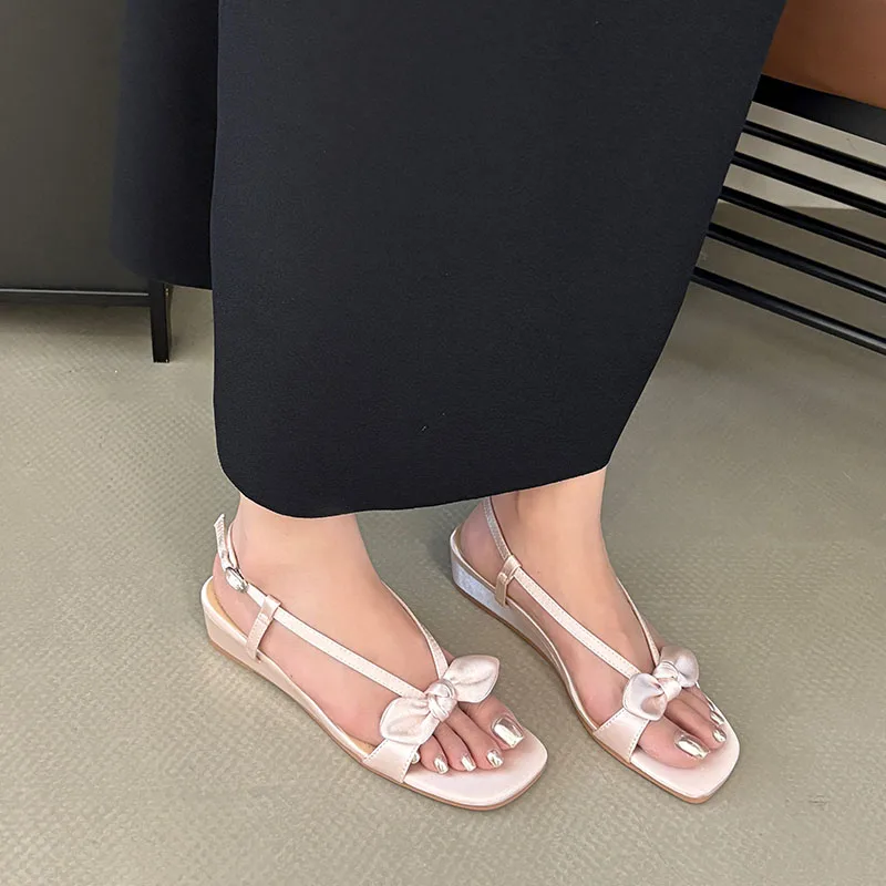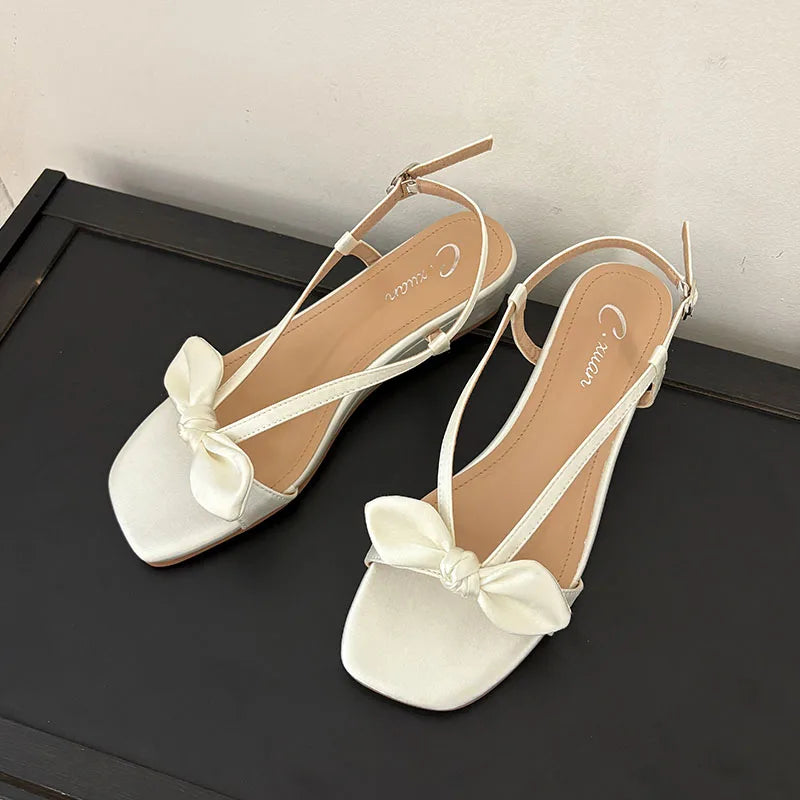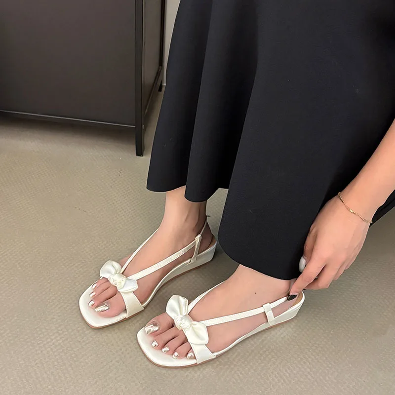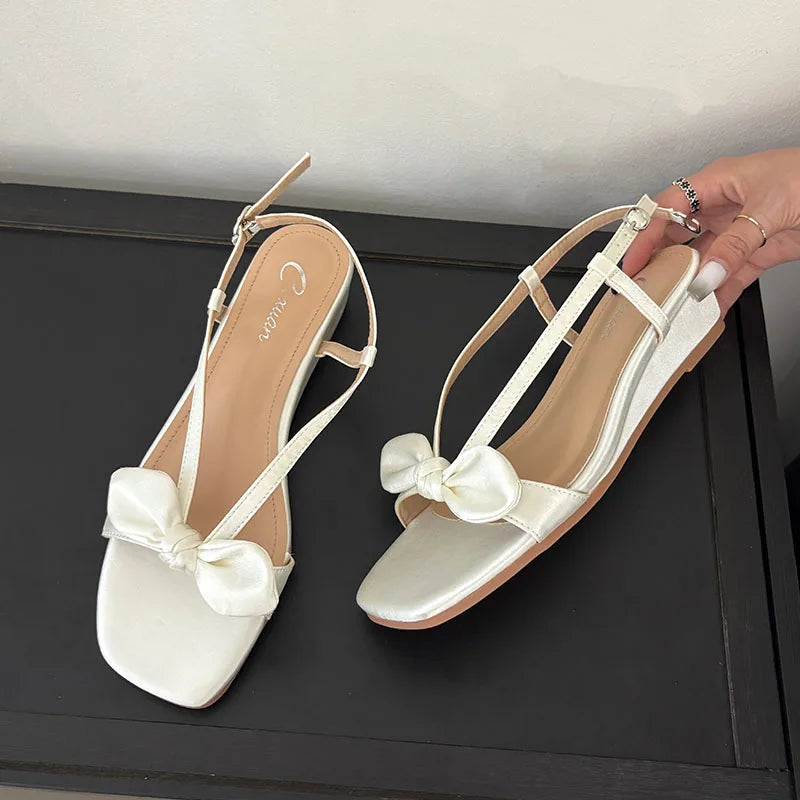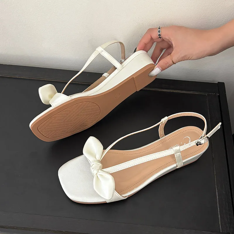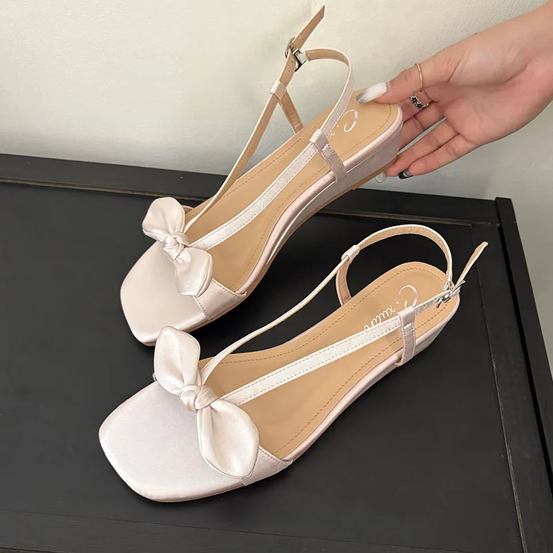 KYLETHOMASW - Elegant Women Low Heel Sandals Wedges Shoes Female Buckle Footwear Fashion Butterfly-Knot Ladies Heeled Sandals Shoes Pumps