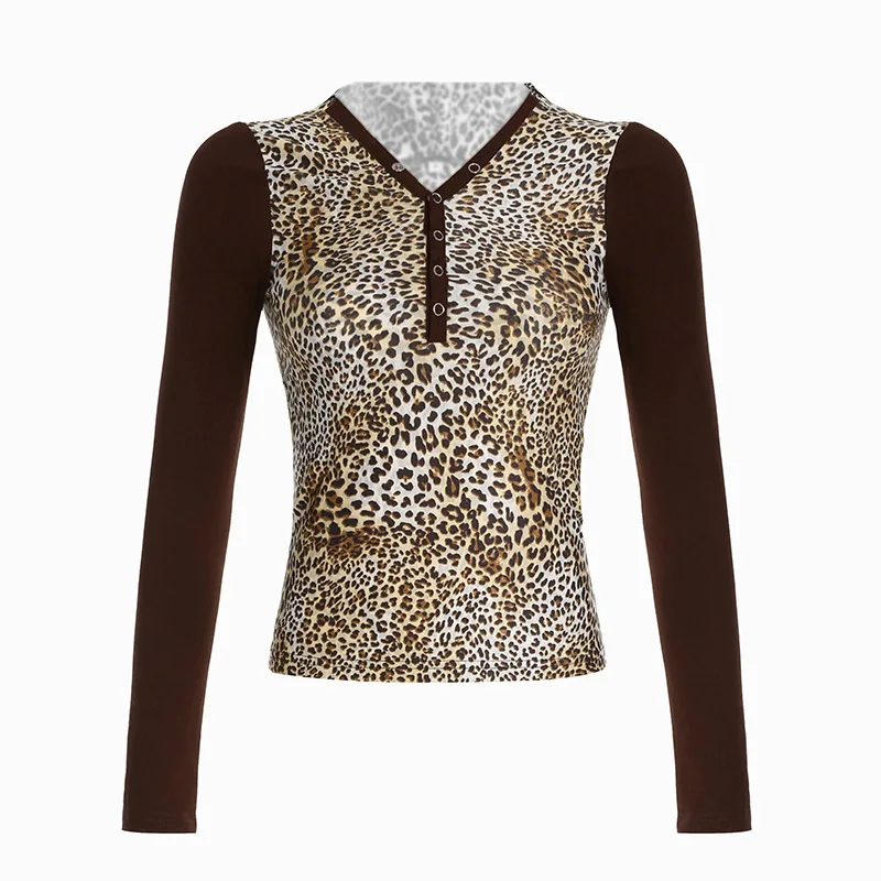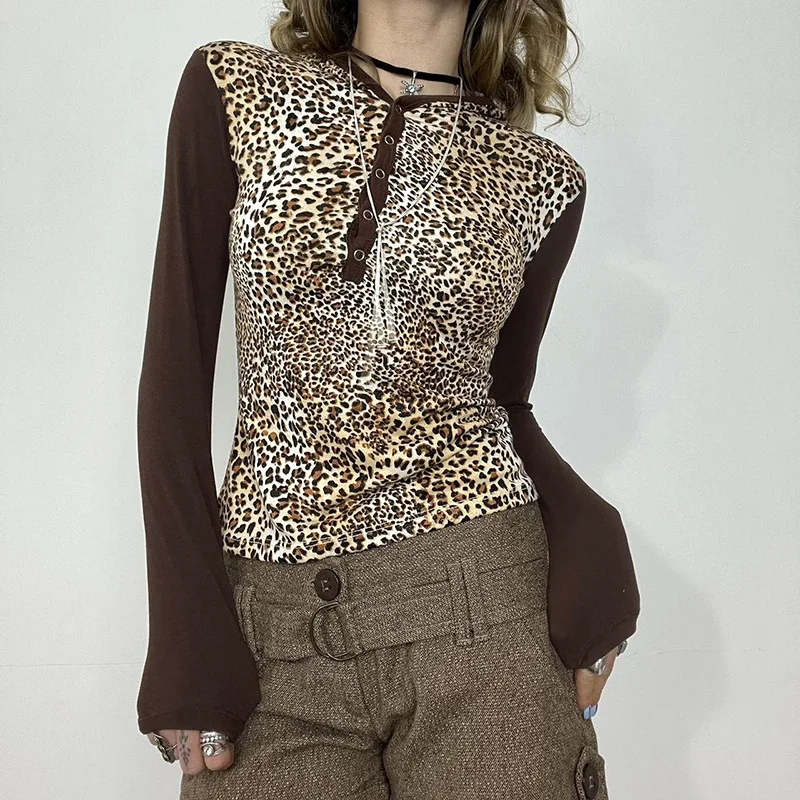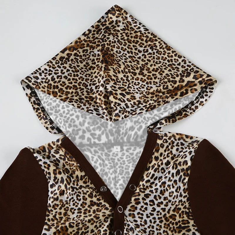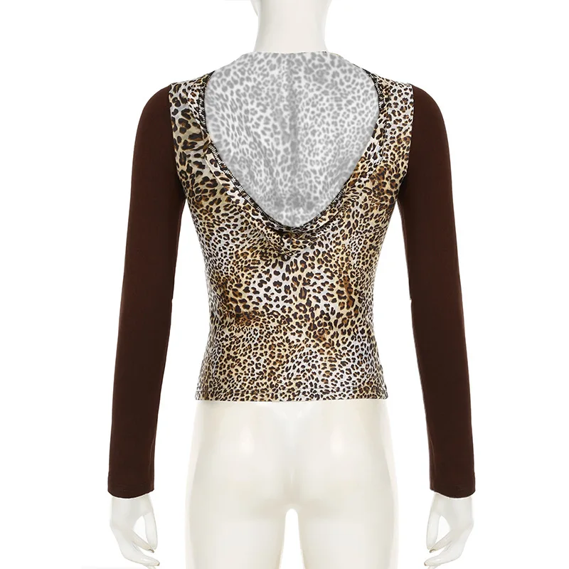 KYLETHOMASW  -  European and American leopard print five claw buckle design, shoulder length long sleeved personalized retro hooded short top