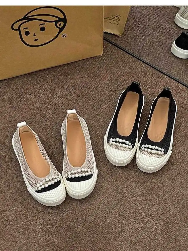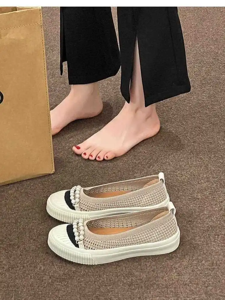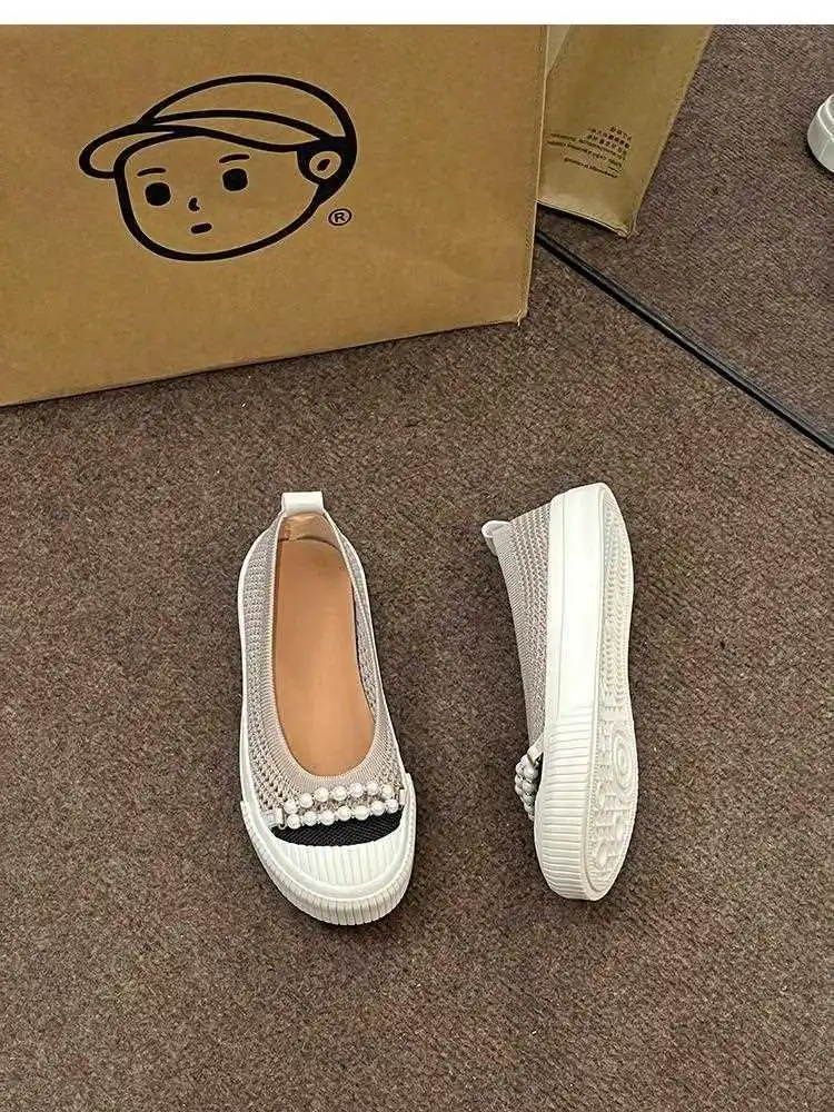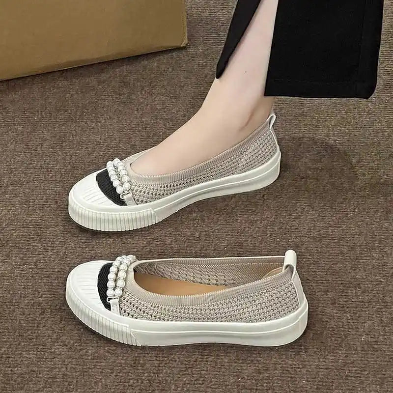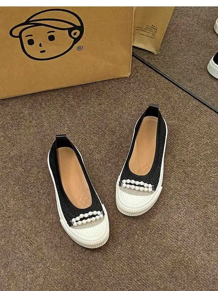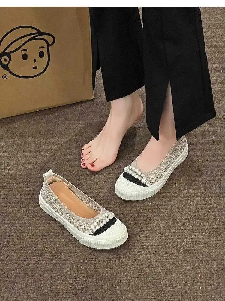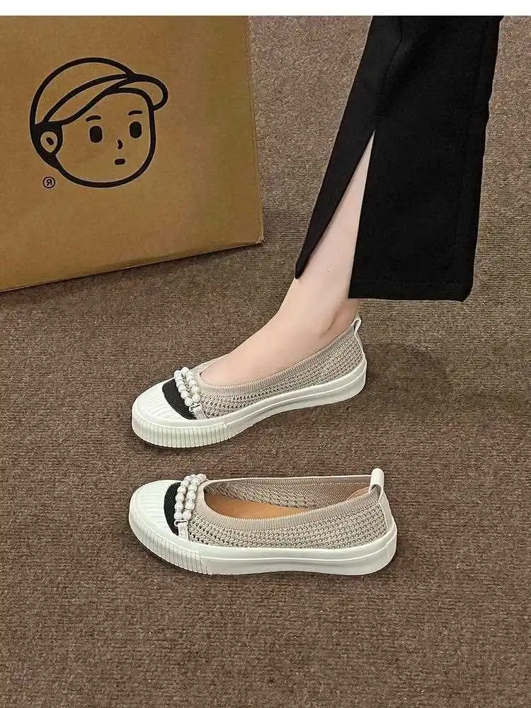 KYLETHOMASW - Fashion Shallow Mouth Round Head Women's Single Shoes Spring Autumn New Woven Pearl Bow Thick Soled Low Comfort Loafer Shoe