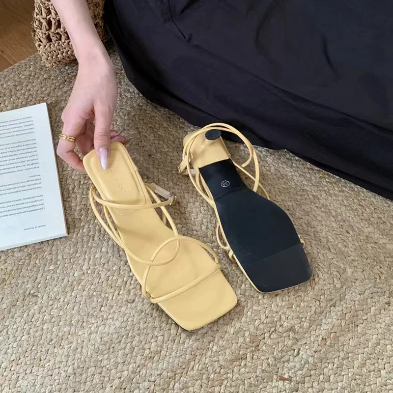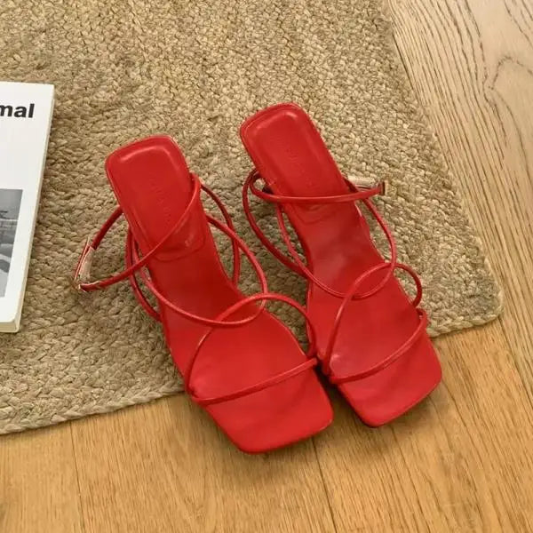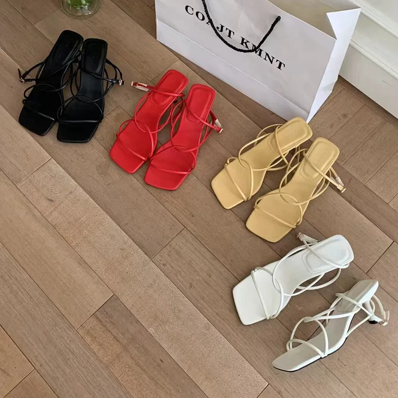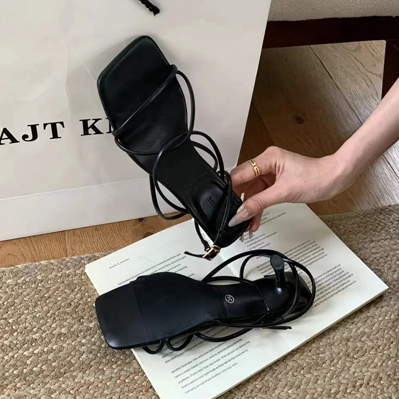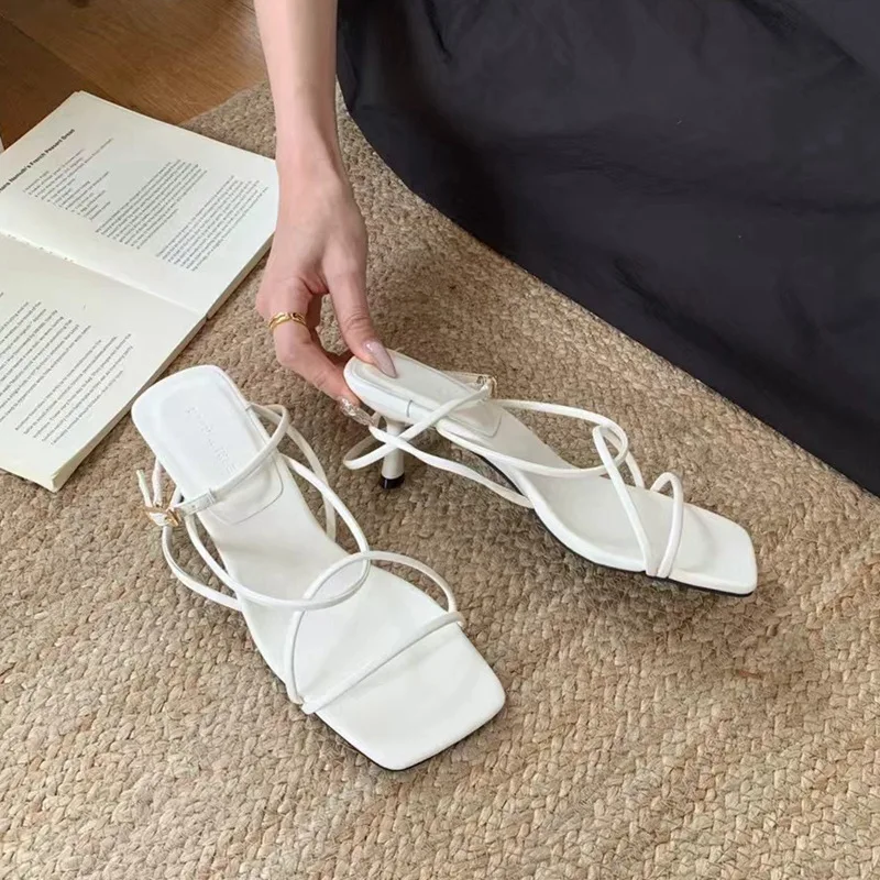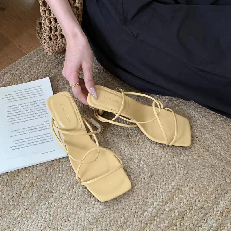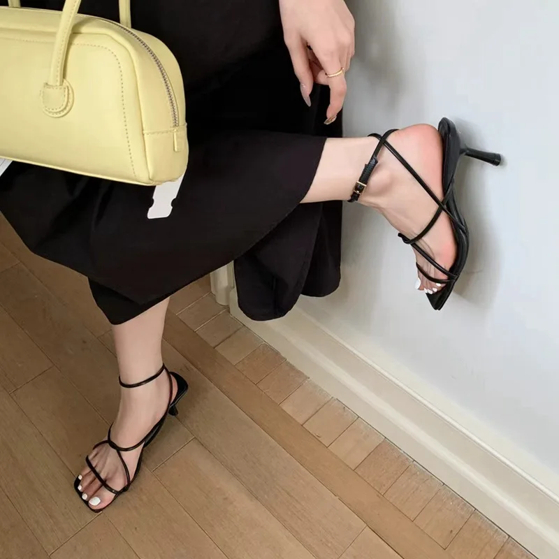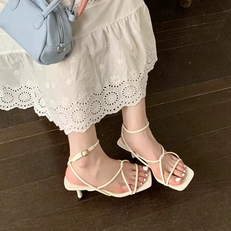 KYLETHOMASW  -  Fashion Womens Shoes 2025 Sandals Stiletto Heels Suit Female Beige All-Match Luxury Girls Low New Comfort High Retro Summer