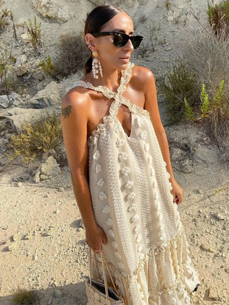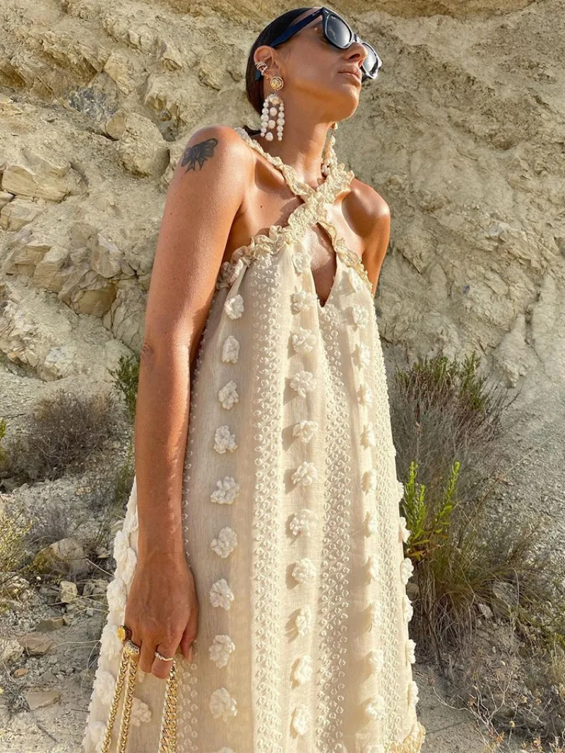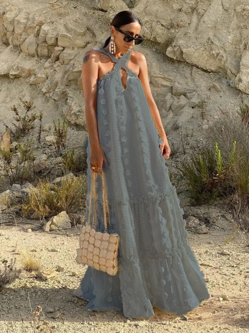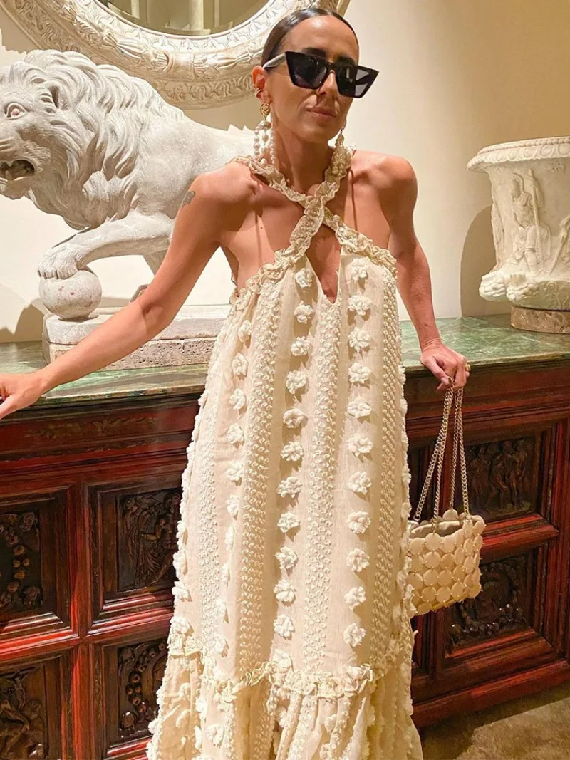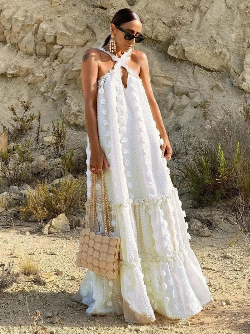 Kylethomasw Flower Splice Baggy Maxi Dresses For Women 2023 Autumn New Loose Hollow Out Princess Dress Party Sexy Party Evening Dress
