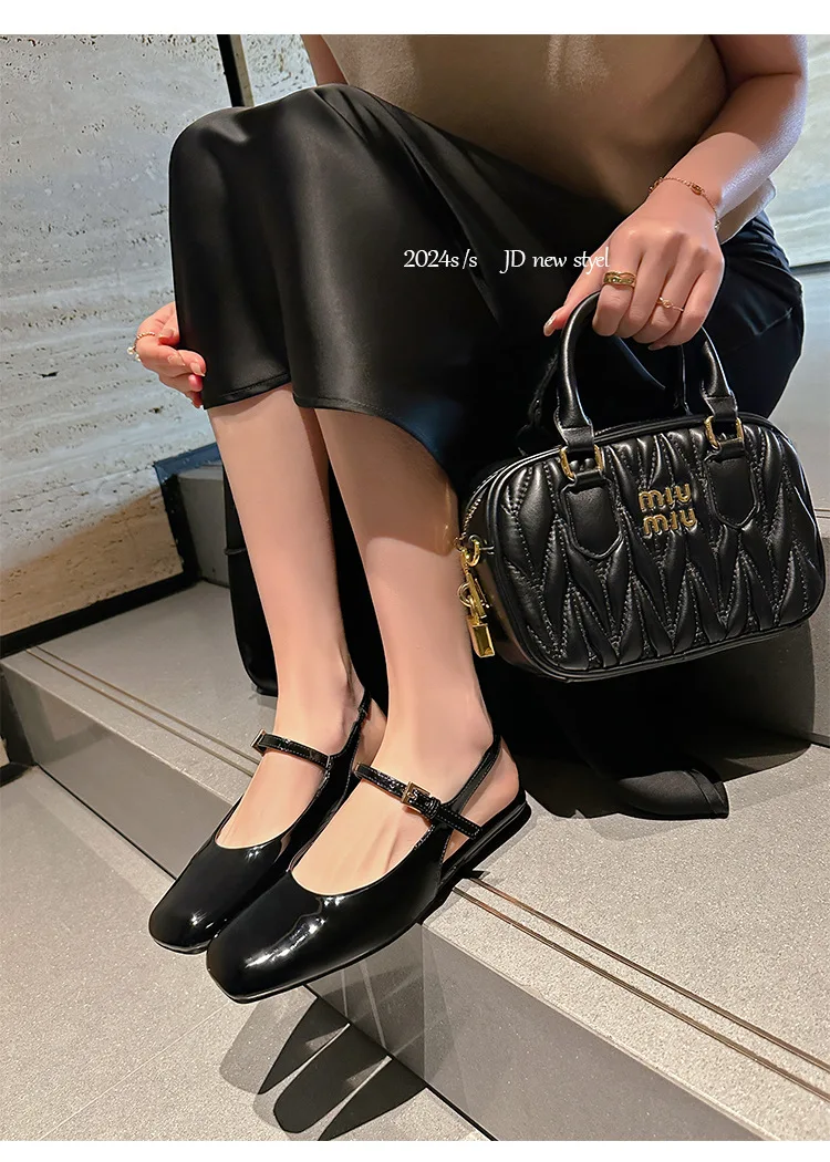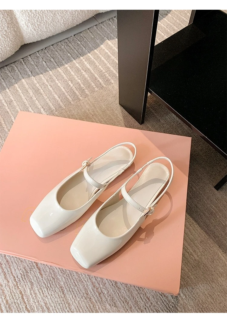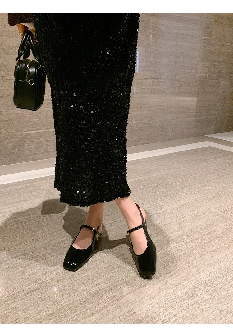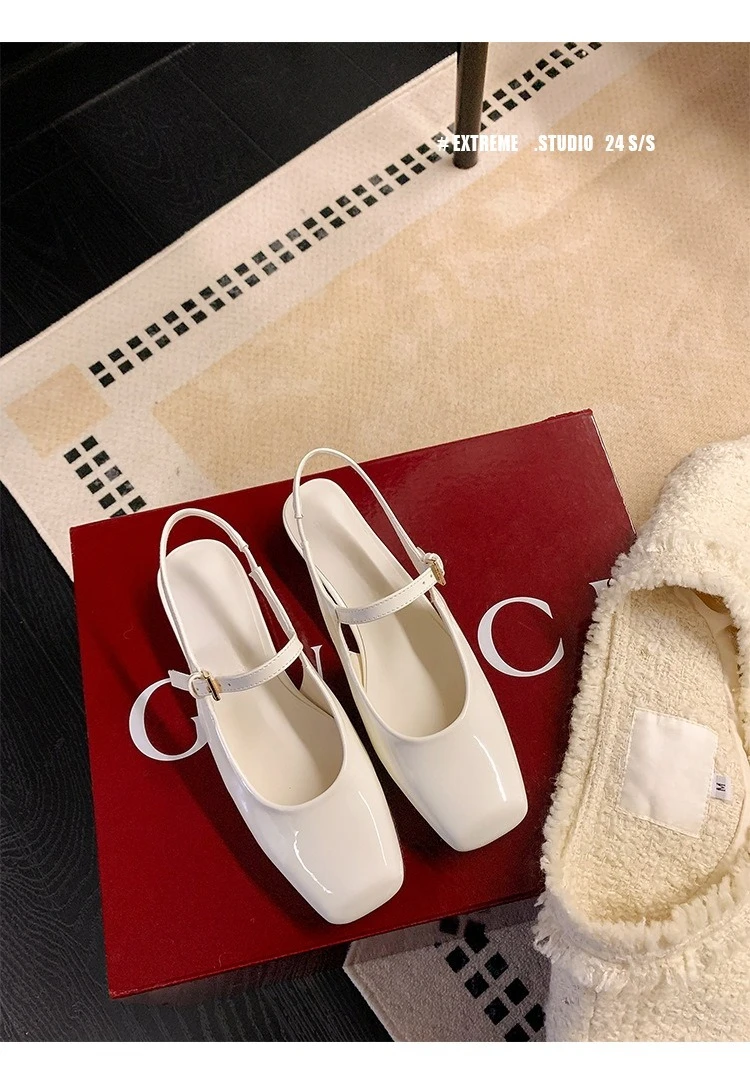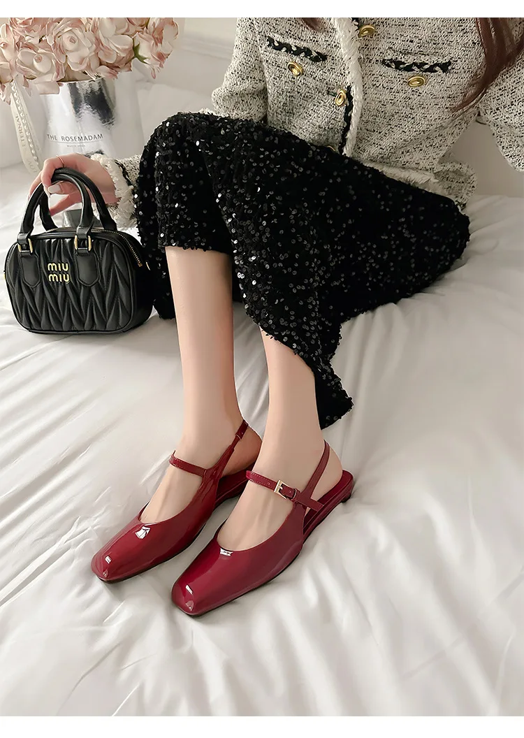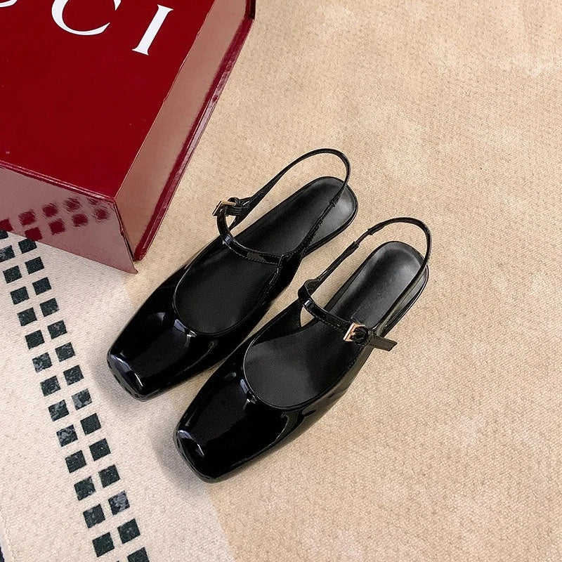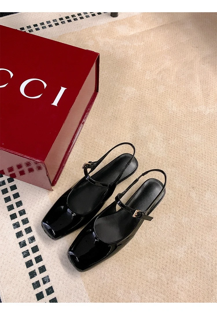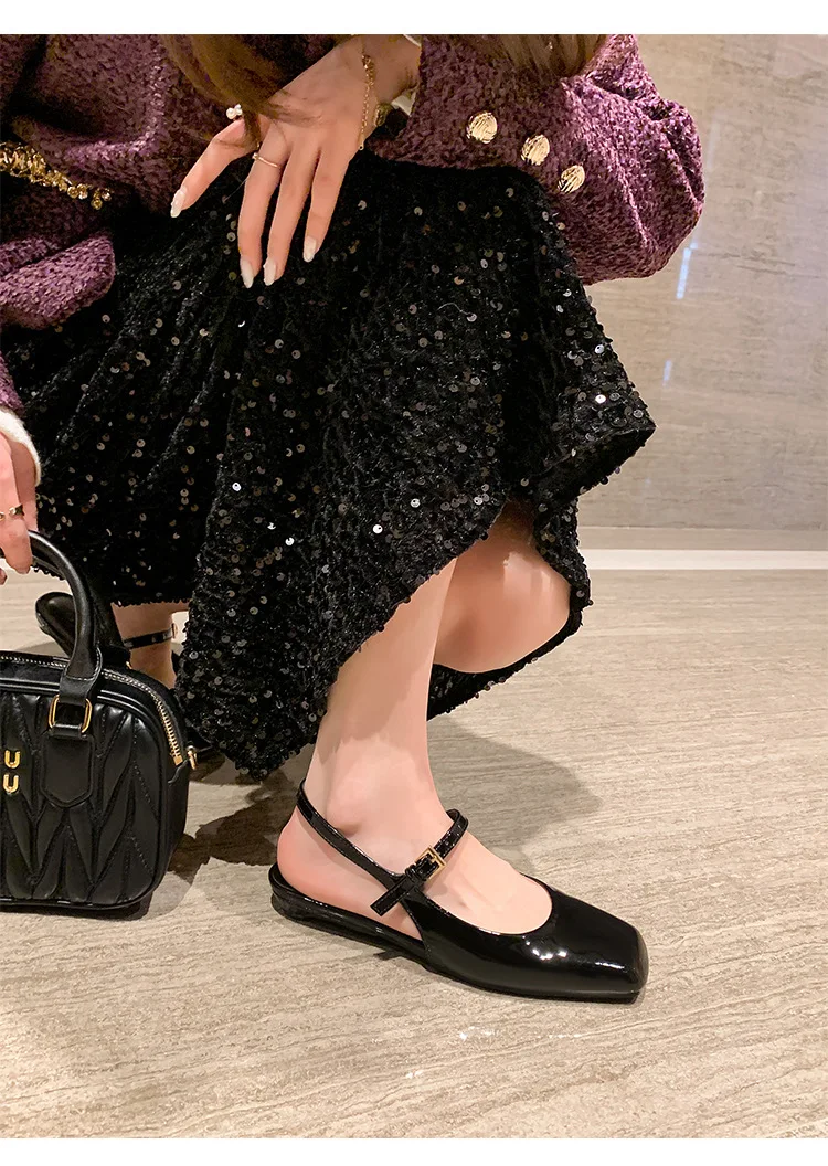 KYLETHOMASW - French Bag Head Mary Jane Sandals Women's One-word Buckle Belt Rear Empty Flat-soled Temperament Single Shoes