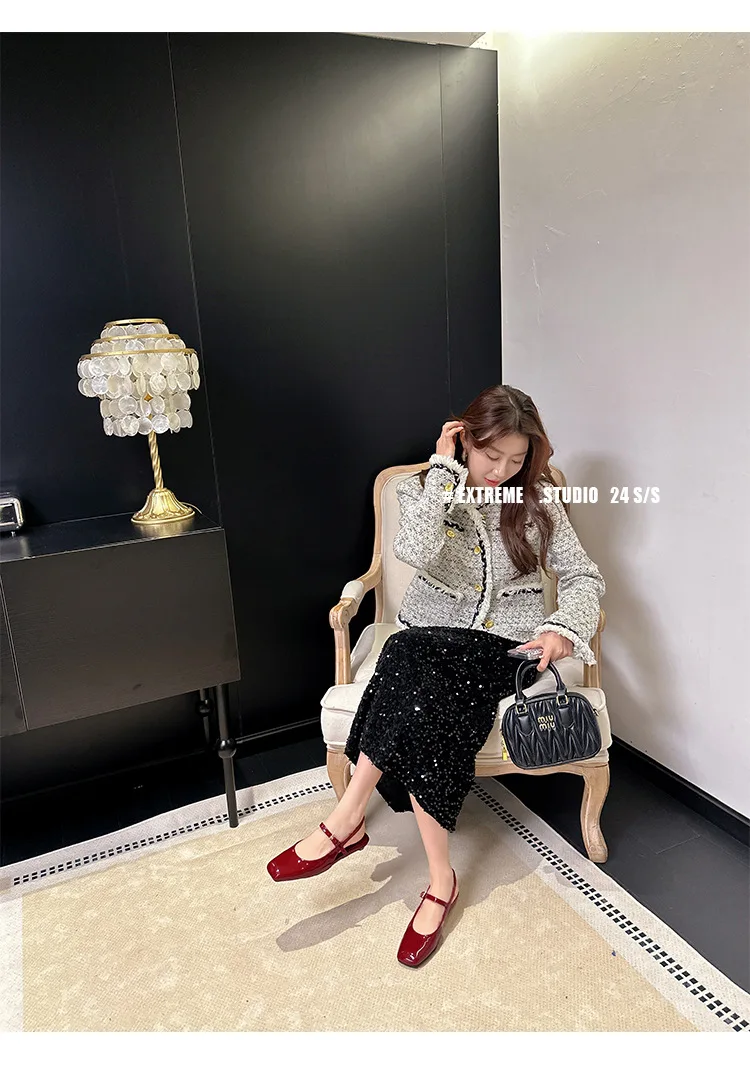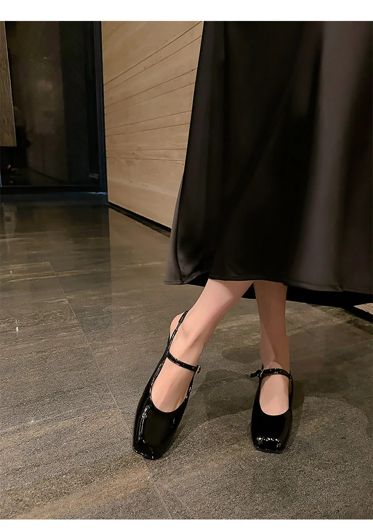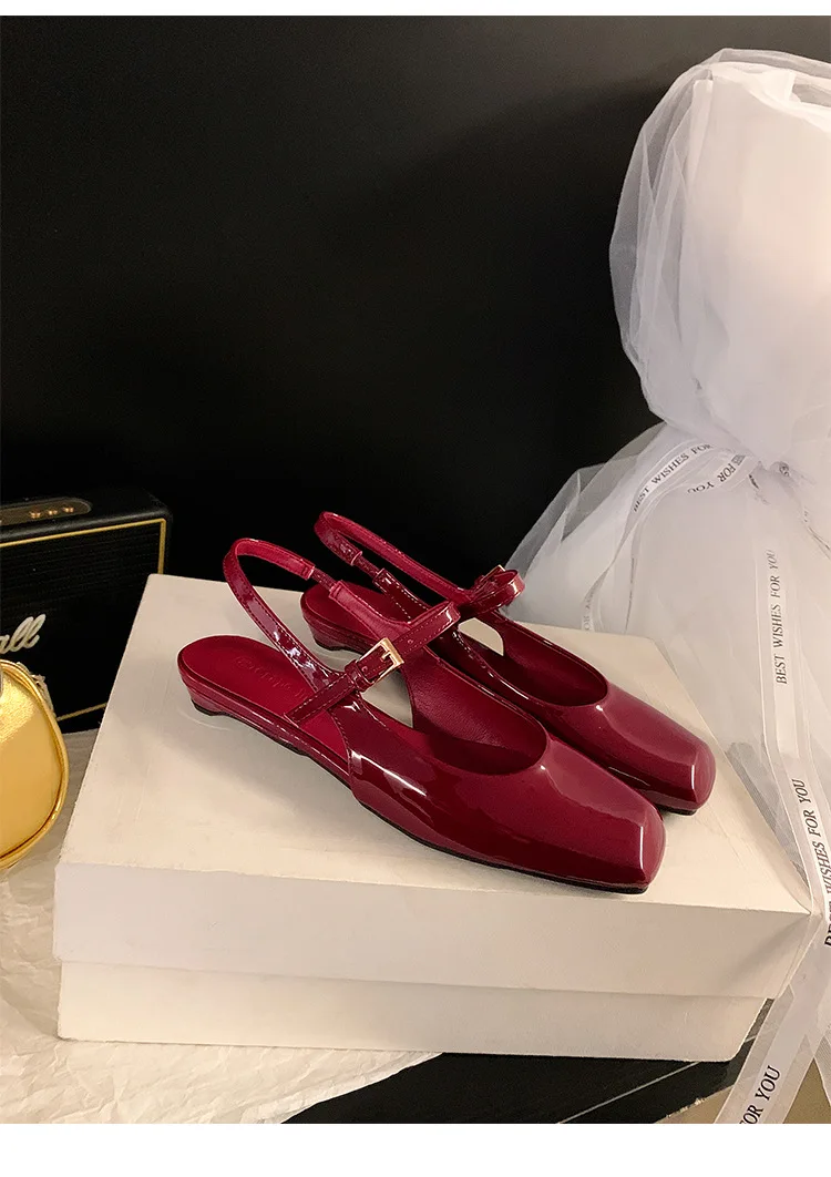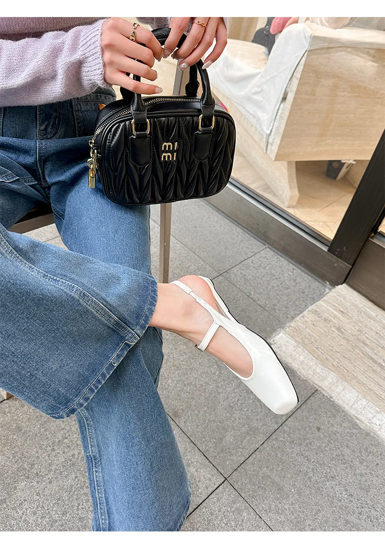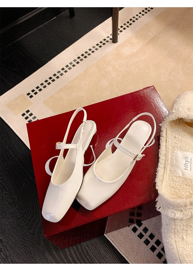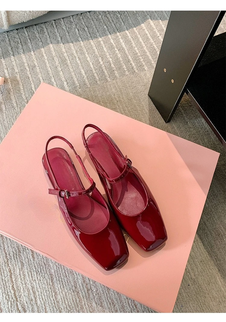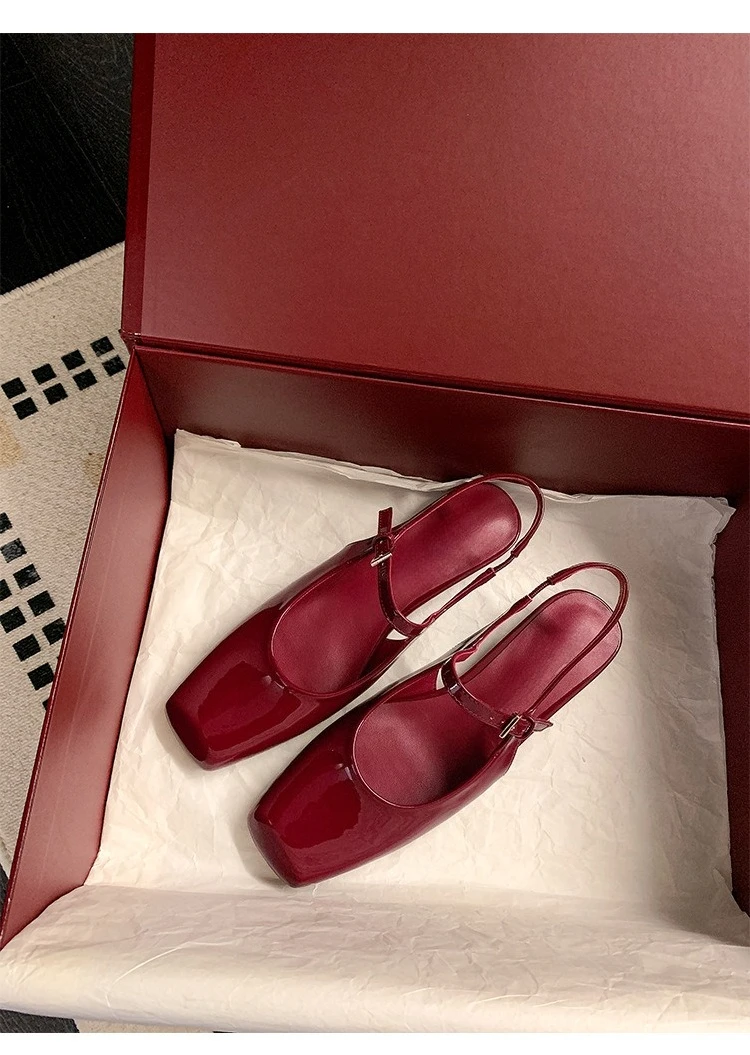 KYLETHOMASW - French Bag Head Mary Jane Sandals Women's One-word Buckle Belt Rear Empty Flat-soled Temperament Single Shoes