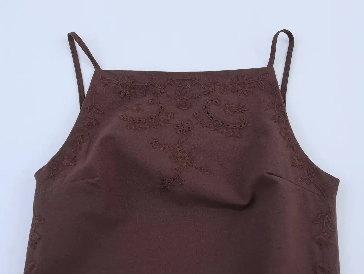 KYLETHOMASW - French Cotton And Linen Backless Sexy Suspender Shirt Minimalist Coffee Color Elegant Sleeveless Shirt Blouse Women Top