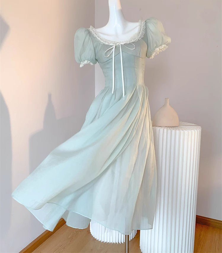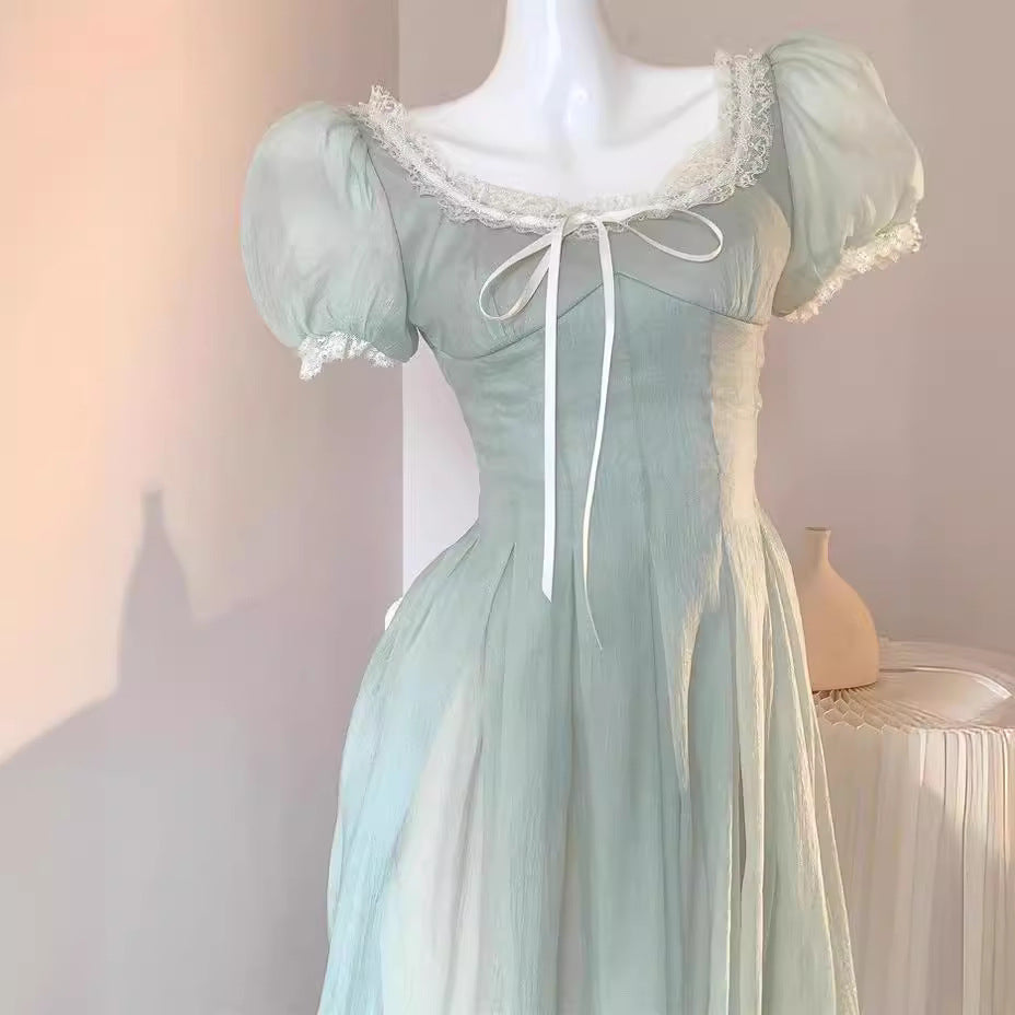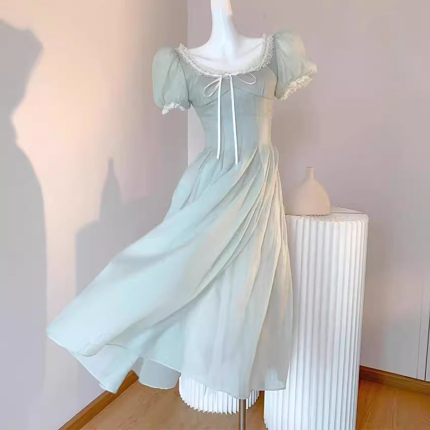 KYLETHOMASW - French Elegant Lace Dress Women Summer Heavy Embroidery Short Sleeve Royal Tea Length Dress Vintage Princess Style Formal