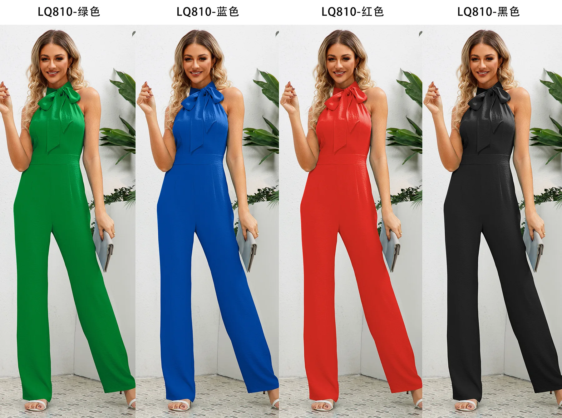 Kylethomasw High Quality Summer Hot Selling Sexy Slim Fit Temperament Jumpsuit Sleeveless Stand Up Collar Bow Straight Leg Long Pants