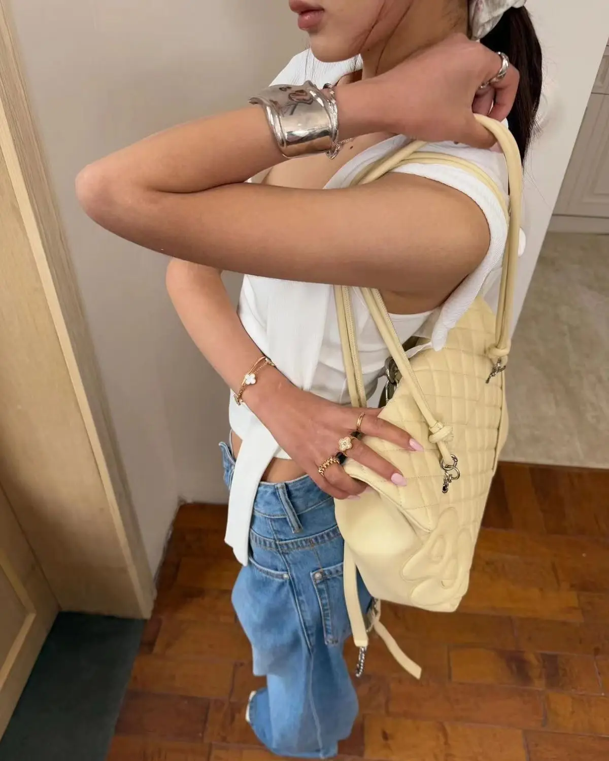 KYLETHOMASW - High Street Yellow Large Capacity Handbag Purse Hot Girls Leather Soft Casual Shoulder Bags Ladies Travel Y2k Mochila