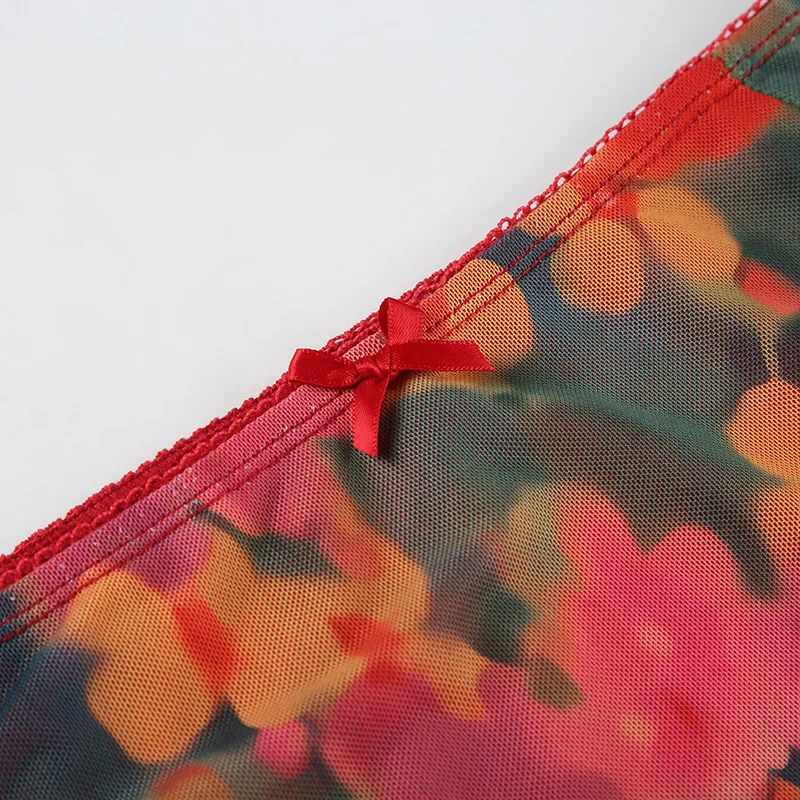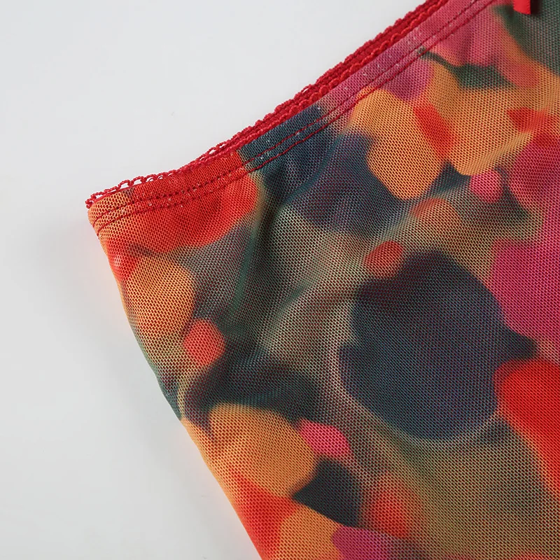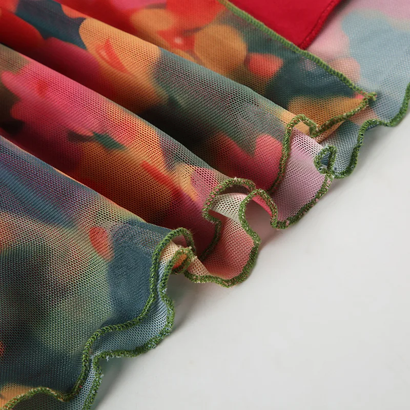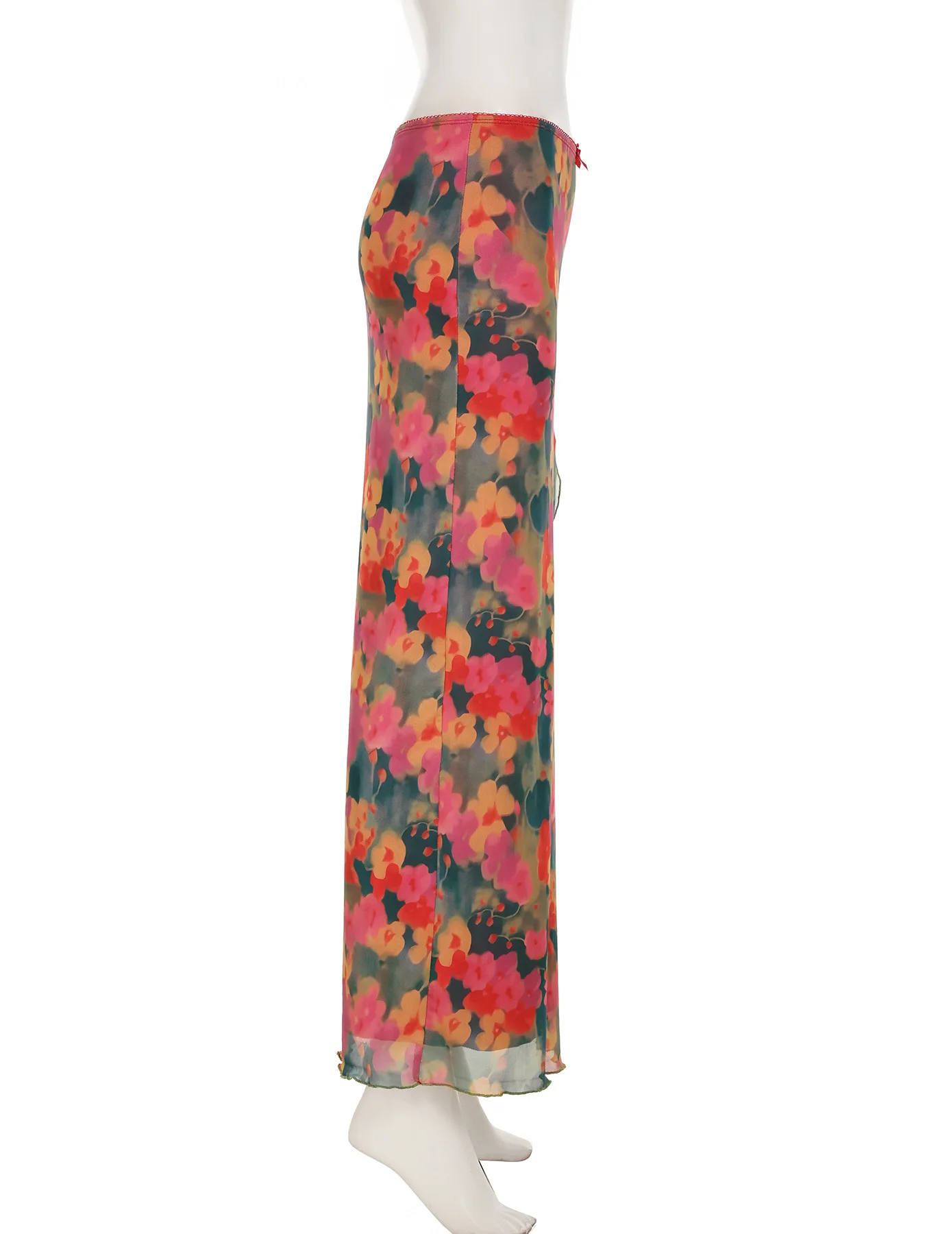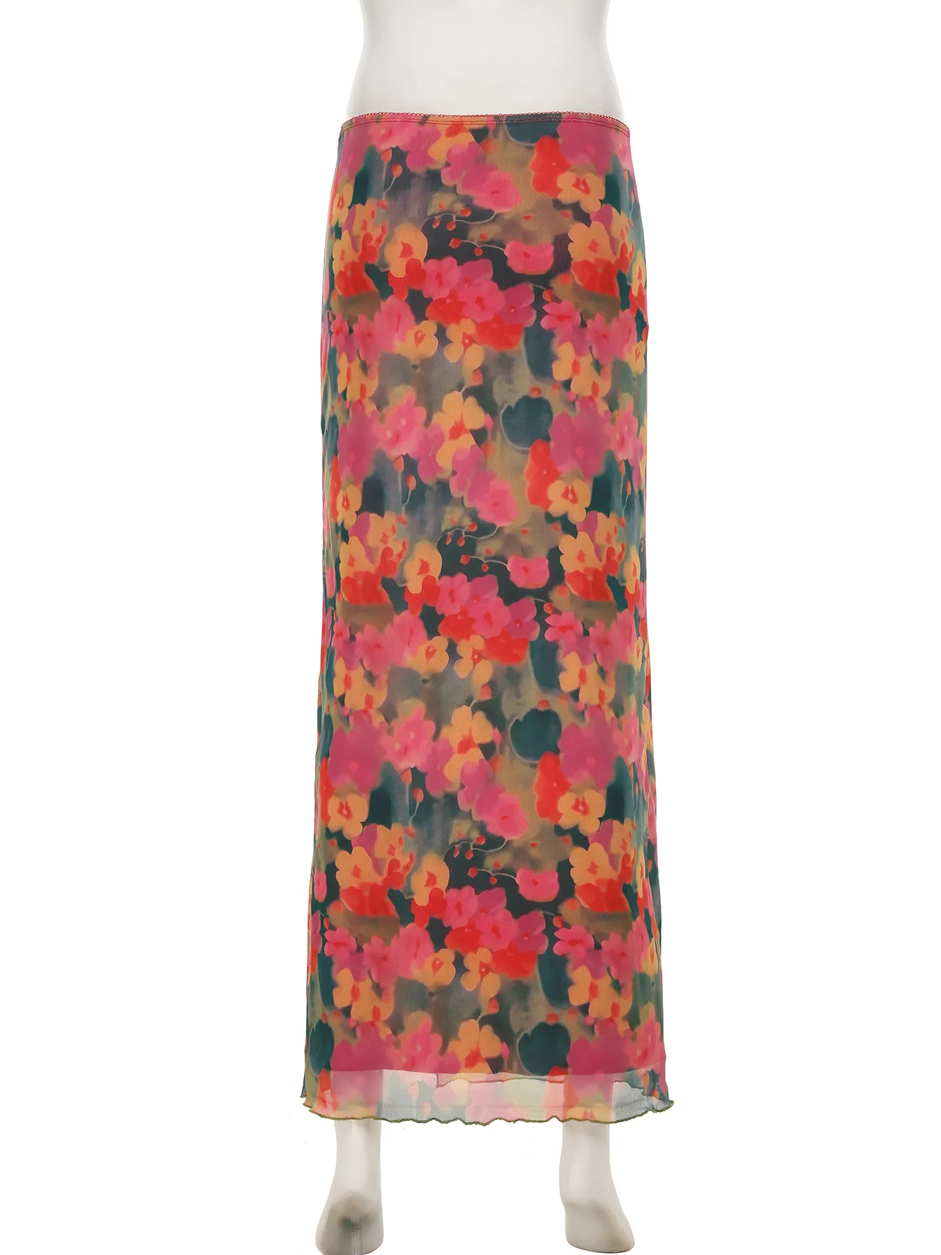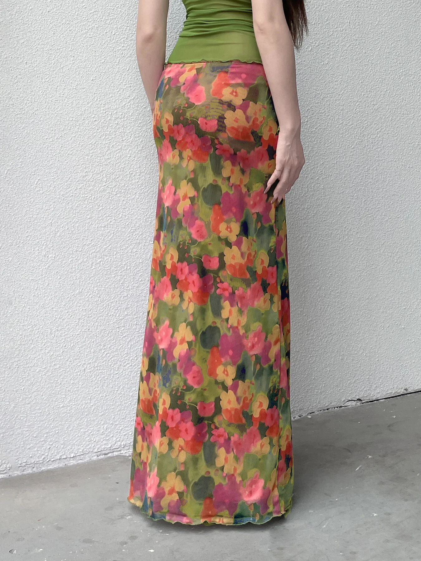 KYLETHOMASW - High Waisted Floral Print Skirt for Women's Summer Spicy Girl Irregular Mesh Split Long Skirt Fashion Female Clothes