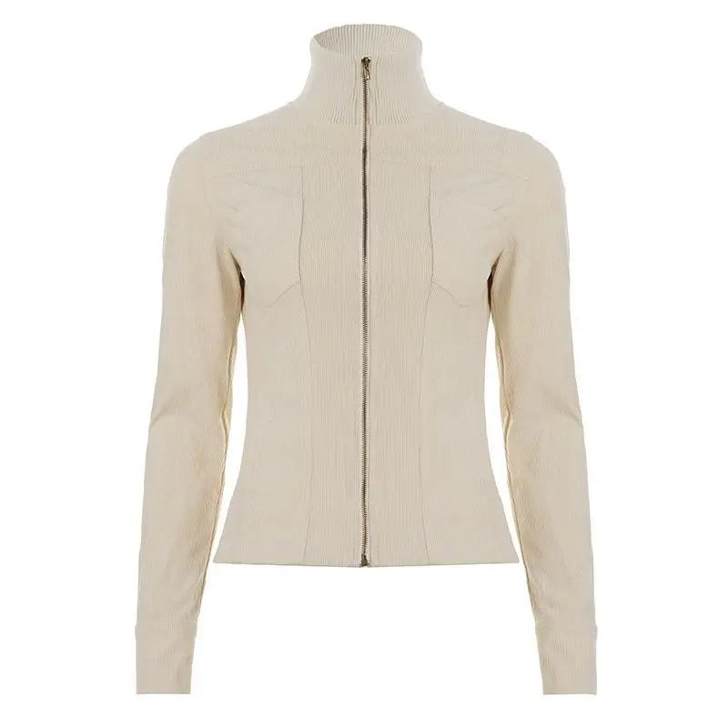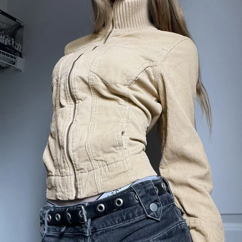 KYLETHOMASW - Jackets Women Vintage Pockets Zipper Stand Collar Sexy Y2k Harajuku Solid Grunge Autumn Winter Fashion Coats Casual