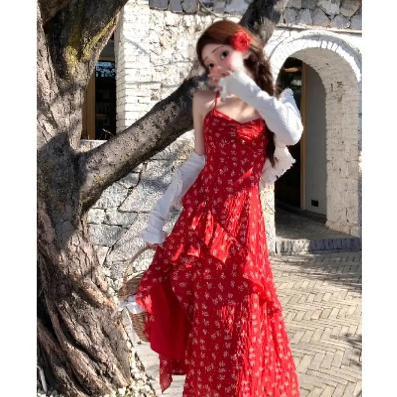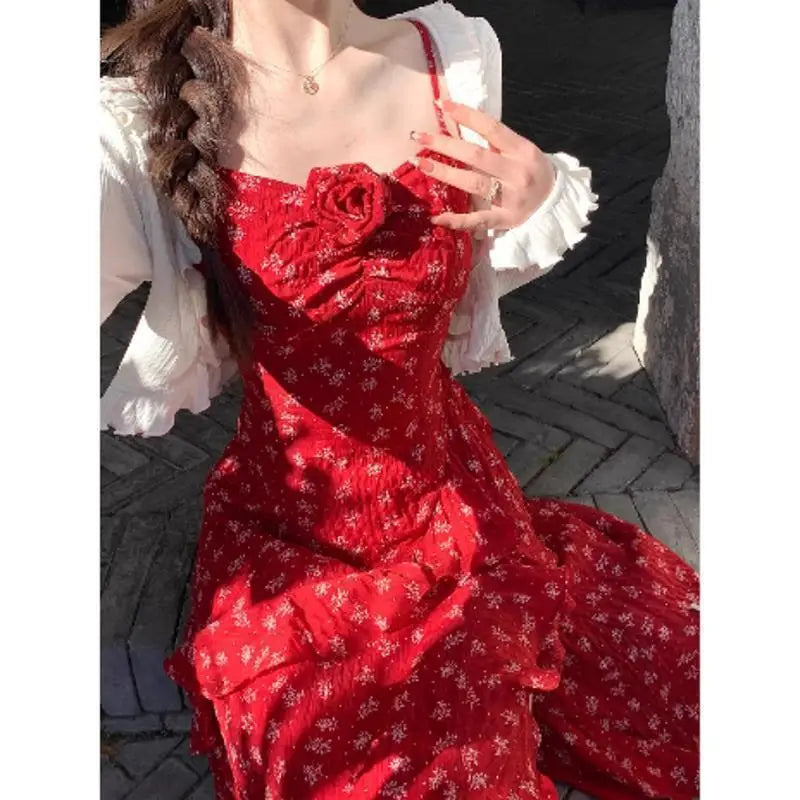 KYLETHOMASW - Japanese Fashion 2 Piece Set Woman Casual Long Sleeve Cardigan + Elegnat Irregular Midi Dress Beach Floral Dress Boho New