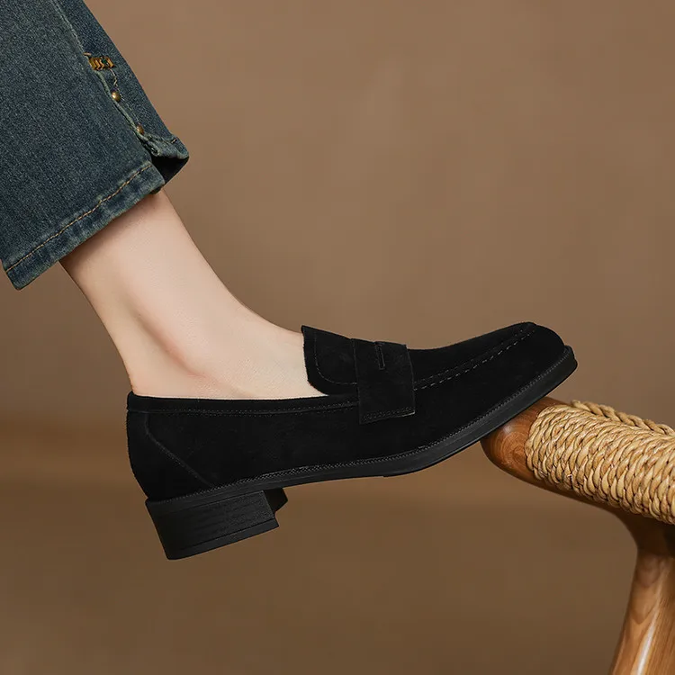 KYLETHOMASW - Kid Suede Penny Loafers Women Handmade Autumn Winter Casual Shoes Ladies Leisure Slip-on Creeper Flats Brown Size 34-43