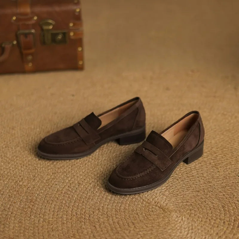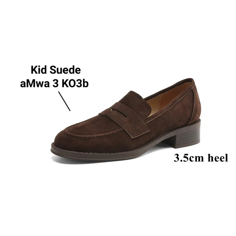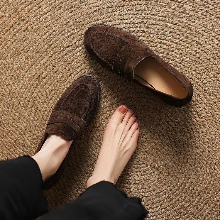 KYLETHOMASW  -  Kid Suede Penny Loafers Women Handmade Autumn Winter Casual Shoes Ladies Leisure Slip-on Creeper Flats Brown Size 34-43