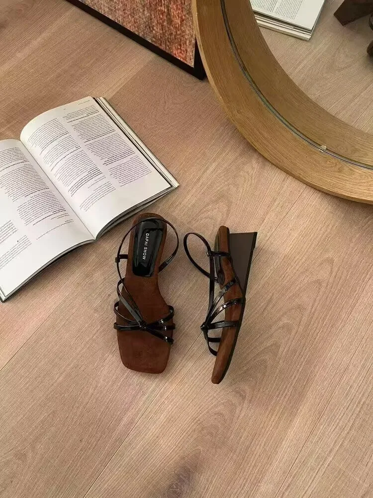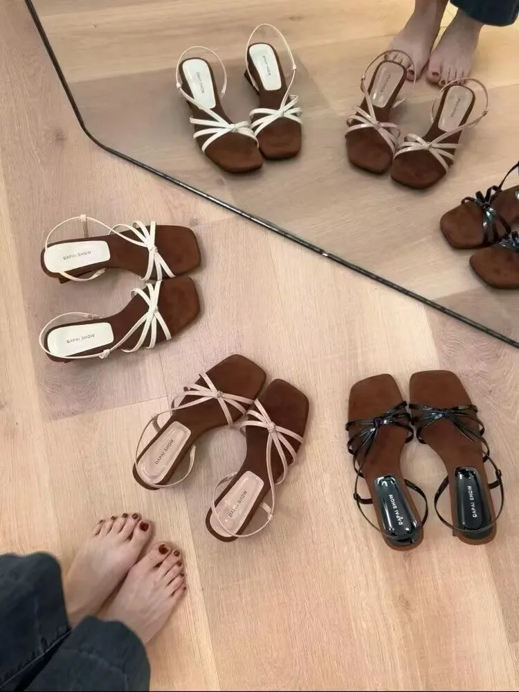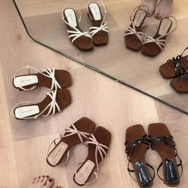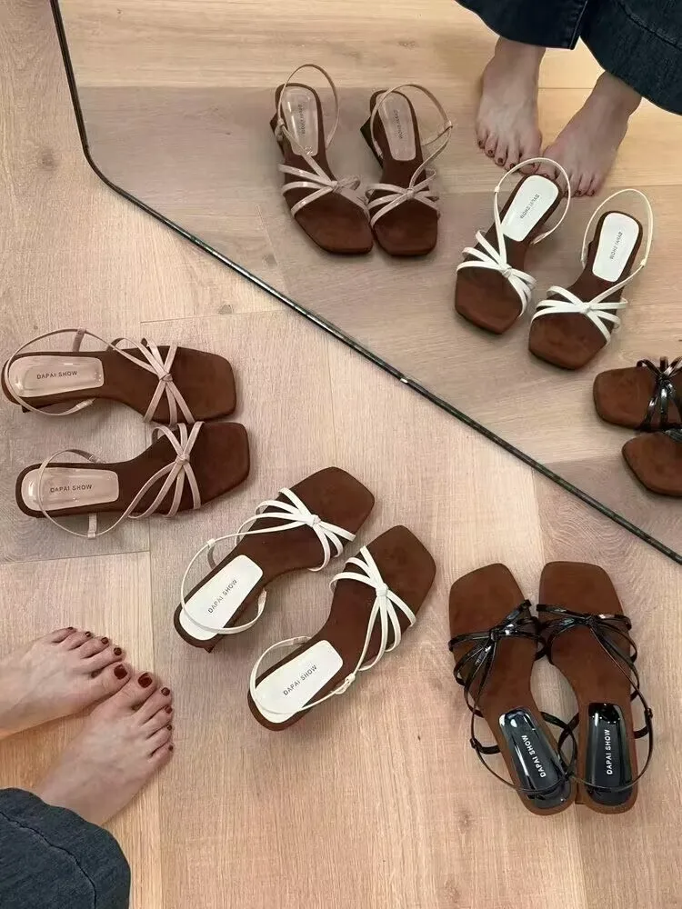 KYLETHOMASW - Kitten High Heels Open Toe Sandals Cross Narrow Band Low Slippers Stylish Comfortable Sexy Multi-work Shoes Flat Heels