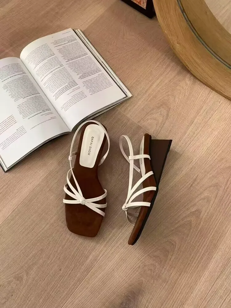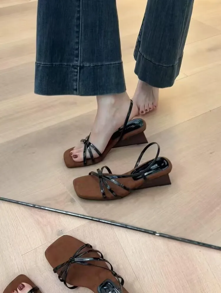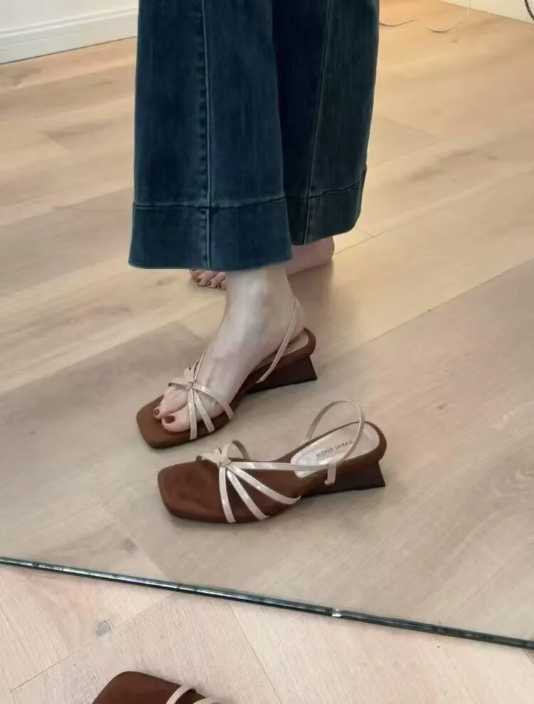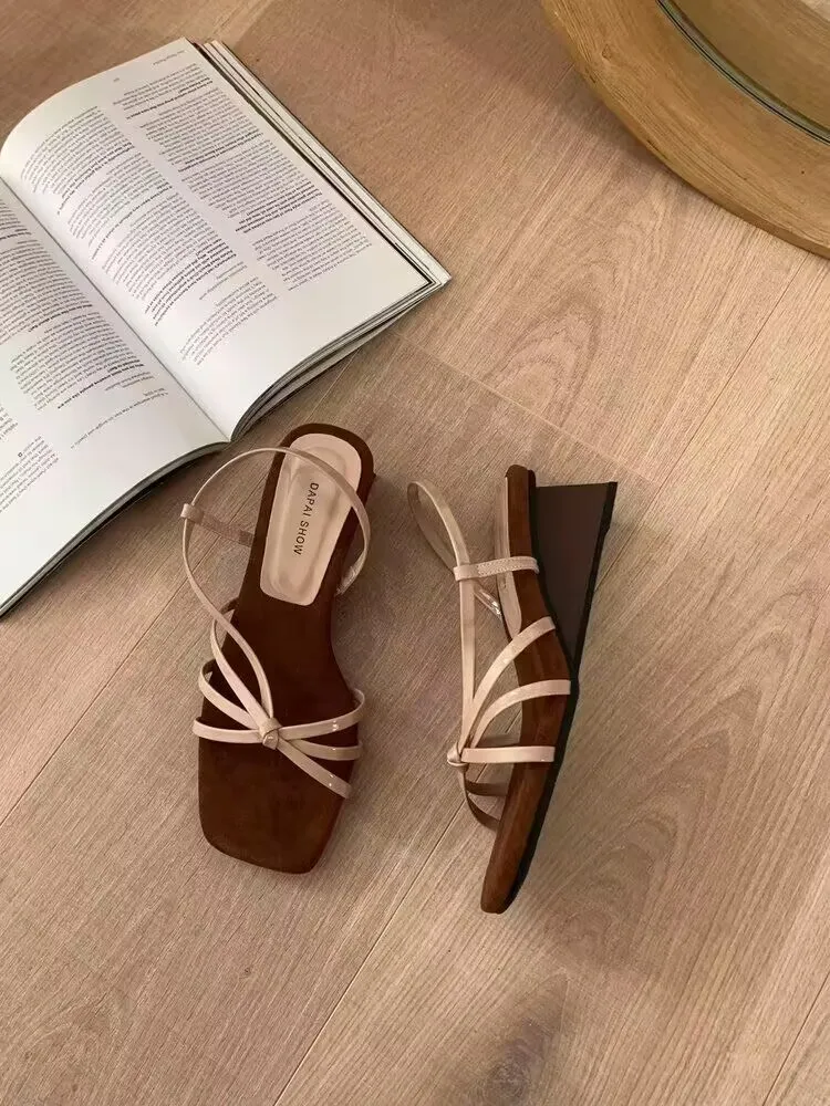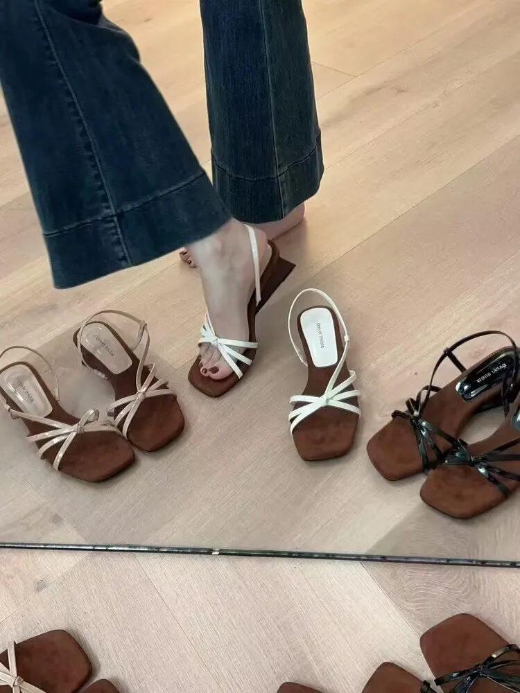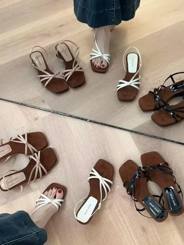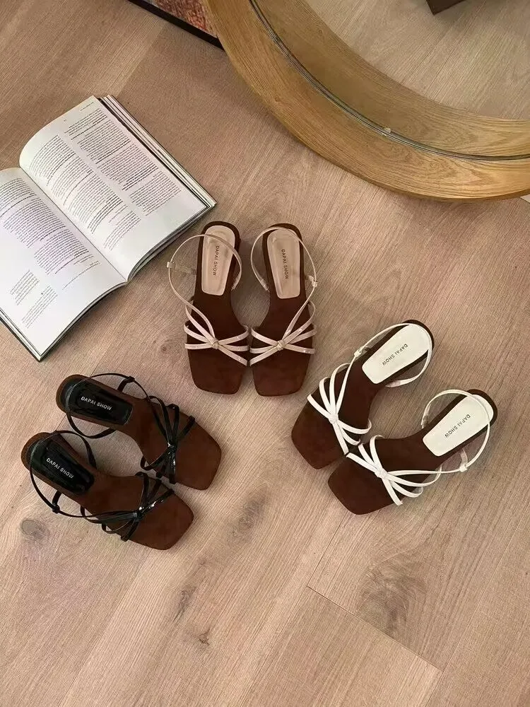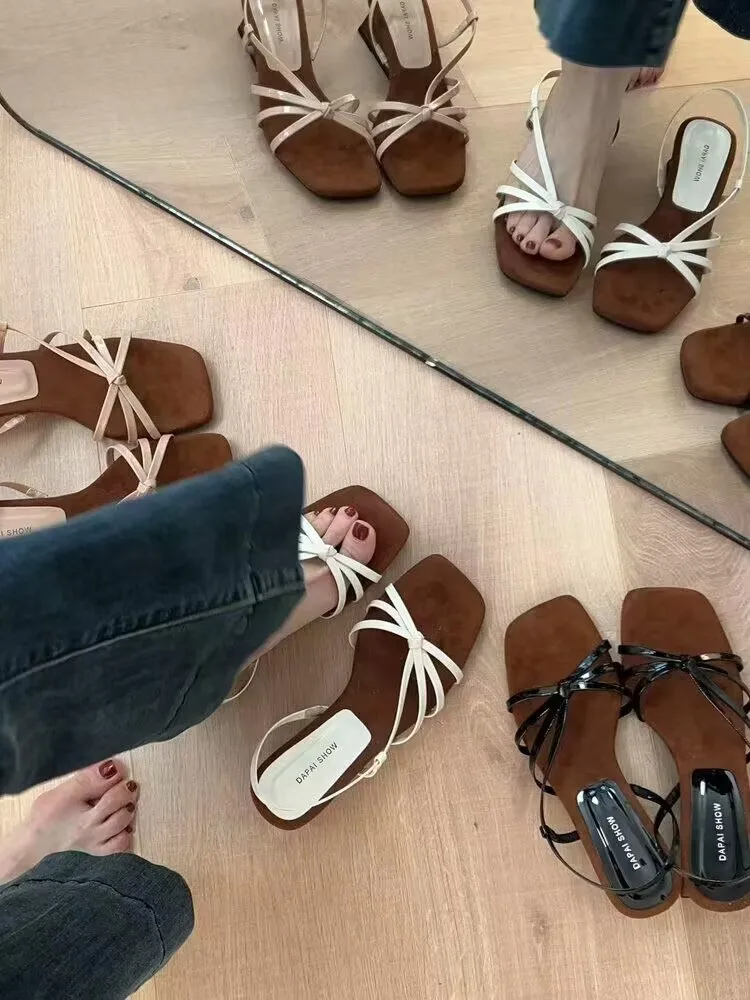KYLETHOMASW  -  Kitten High Heels Open Toe Sandals Cross Narrow Band Low Slippers Stylish Comfortable Sexy Multi-work Shoes Flat Heels
