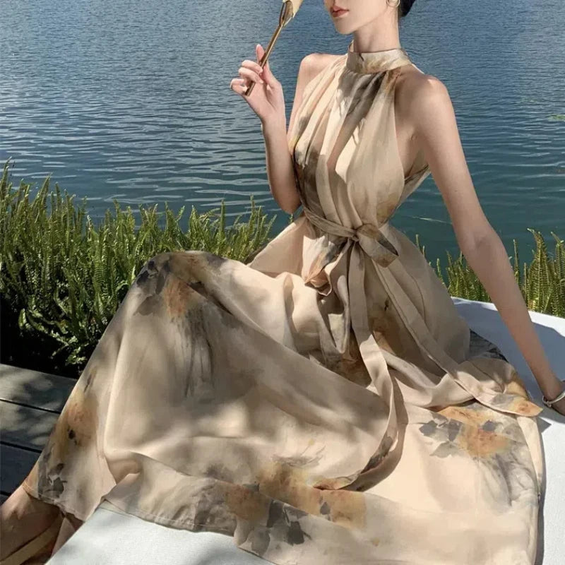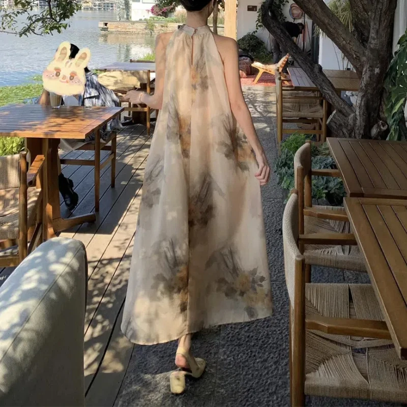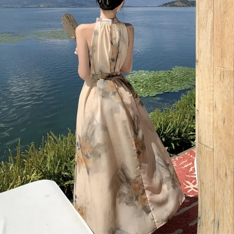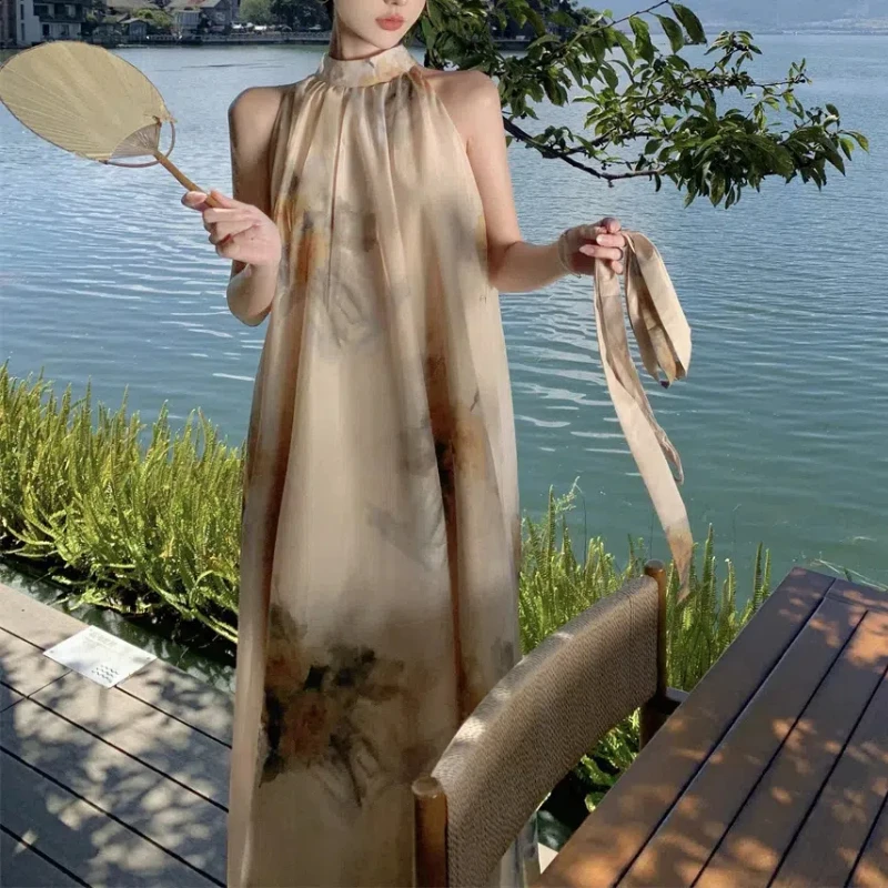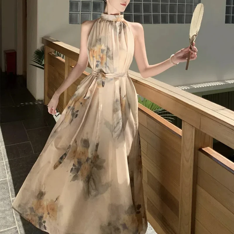 KYLETHOMASW - Knee Skirts Plant&Flowers Printing Bandage Summer Sleeveless Women's Clothing Pullover Halter All-match Colorful Sexy Dresses