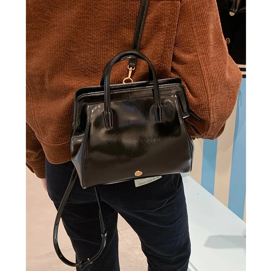 Kylethomasw Korea autumn/winter women's backpack retro new ins retro oil wax leather shoulder bag travel bagpack black commuter rucksack sac