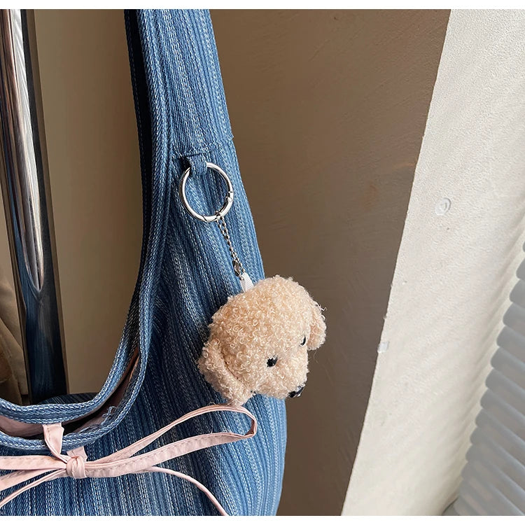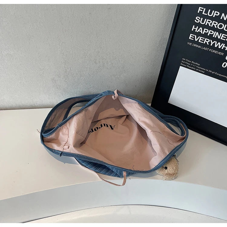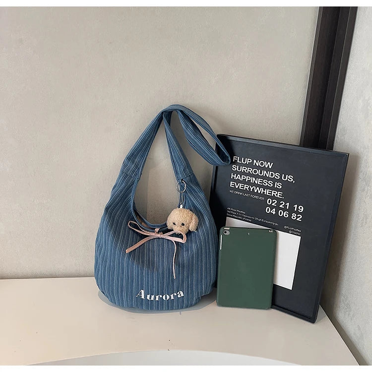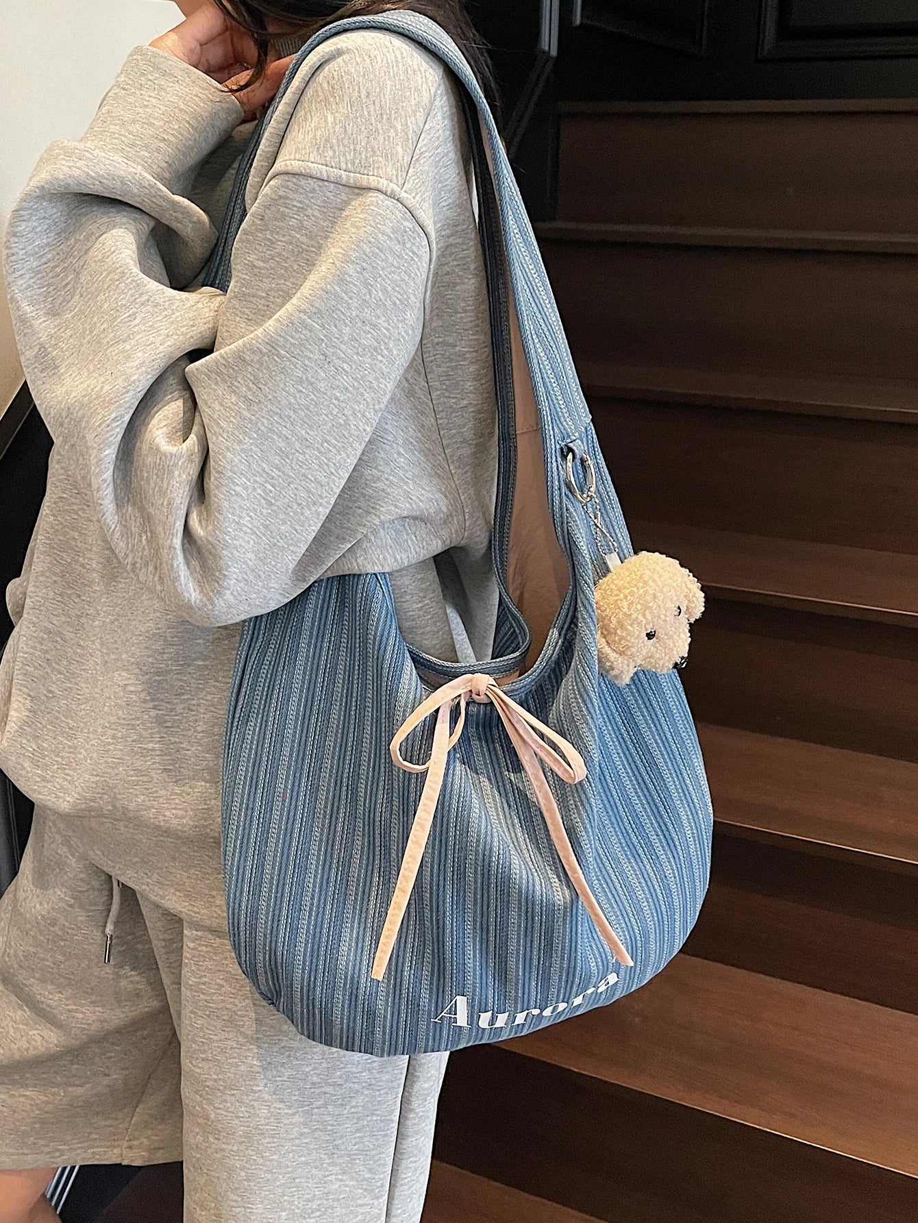 KYLETHOMASW - Korean Casual Stripesd Canvas Bag for Women 2025 New Large-Capacity Shoulder Tote Bag Double-Sided Commuter Armpit Bag