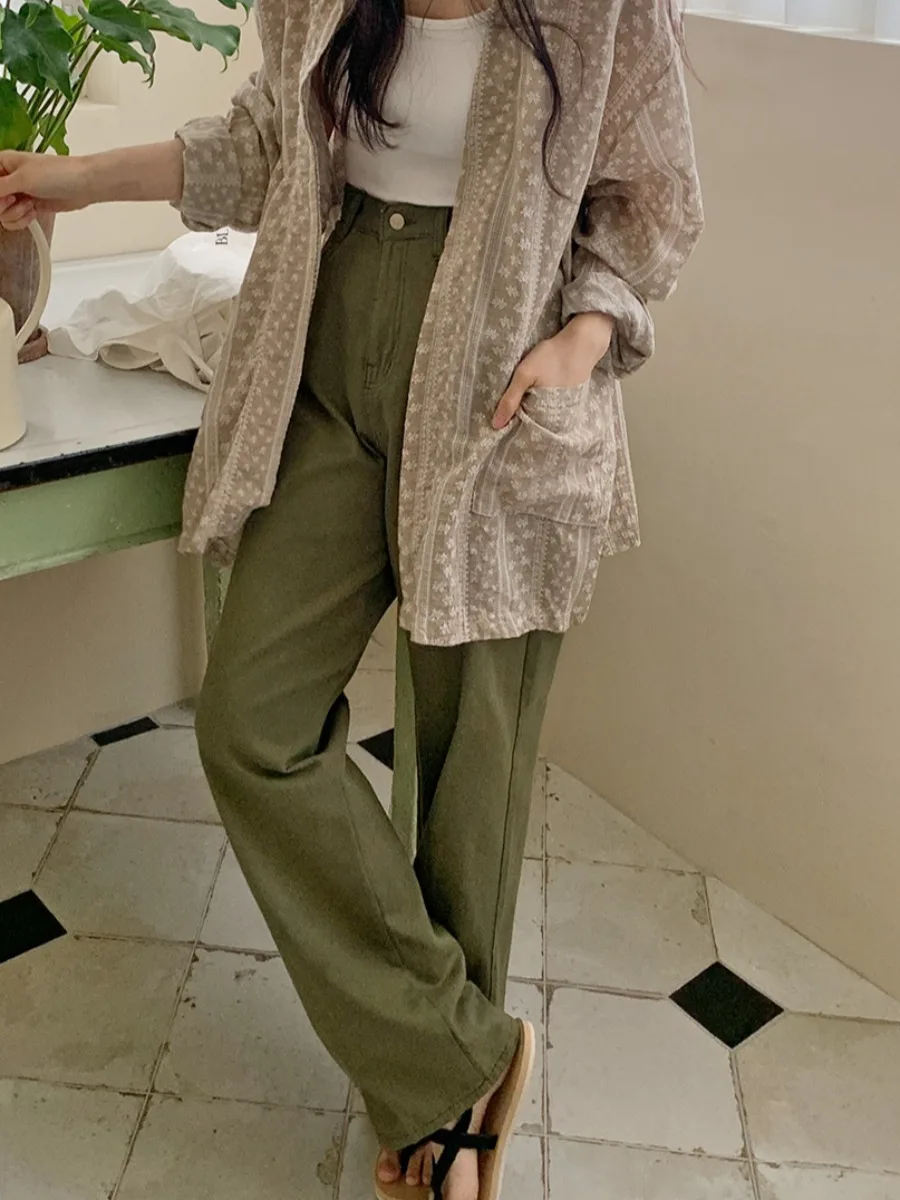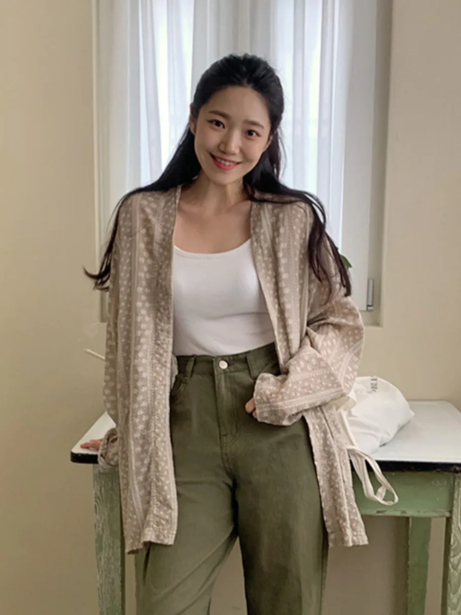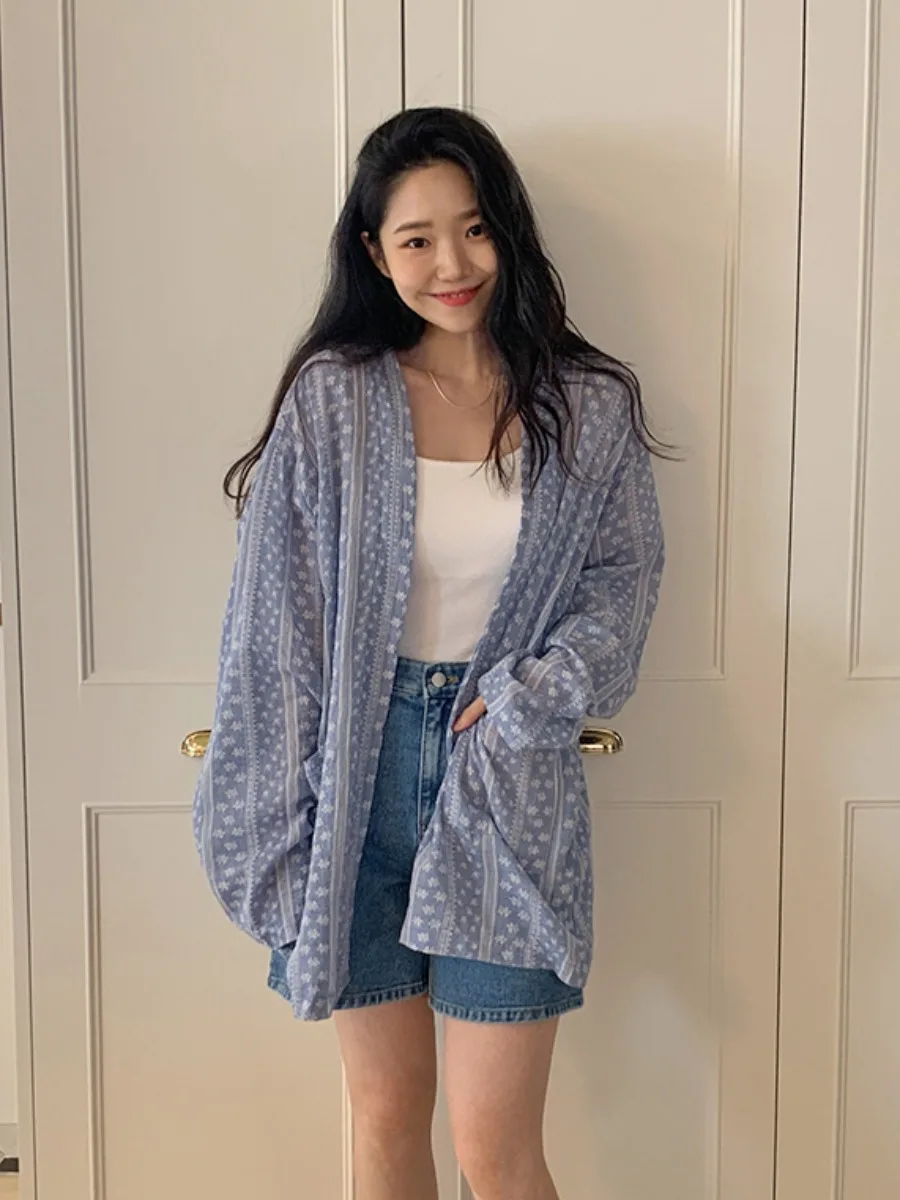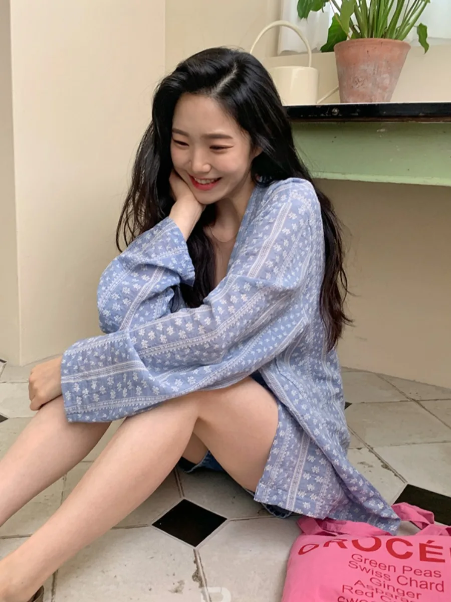KYLETHOMASW - Korean Style Women Shirt 2024 Summer New Floral Cardigan Shirts Outwear Long Sleeve Top Pocket Casual Women Clothes