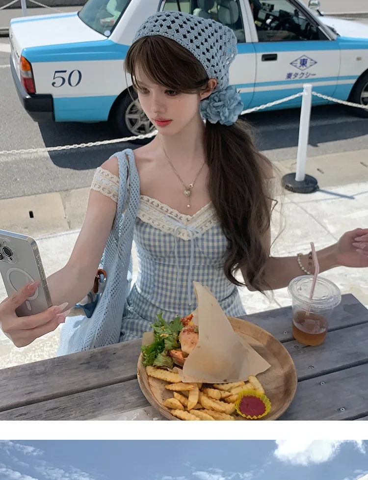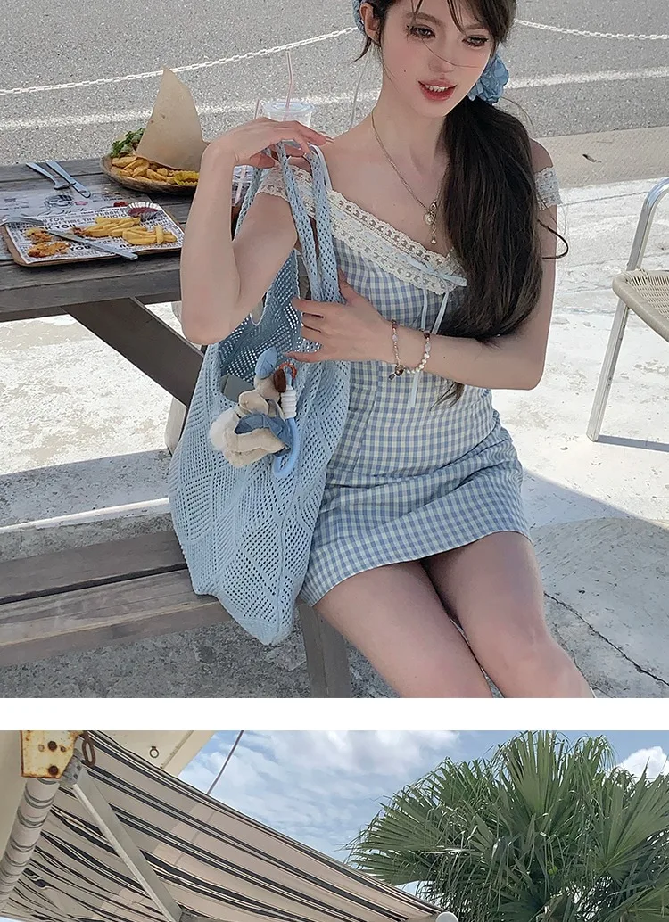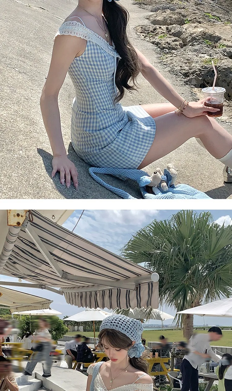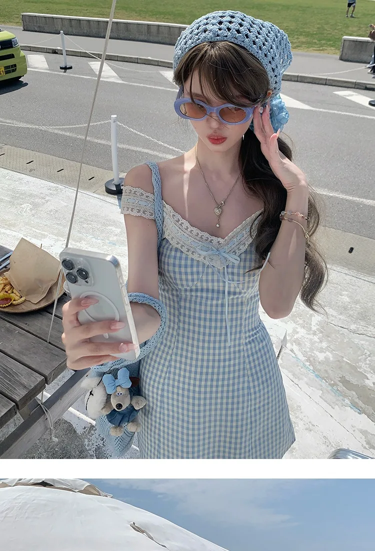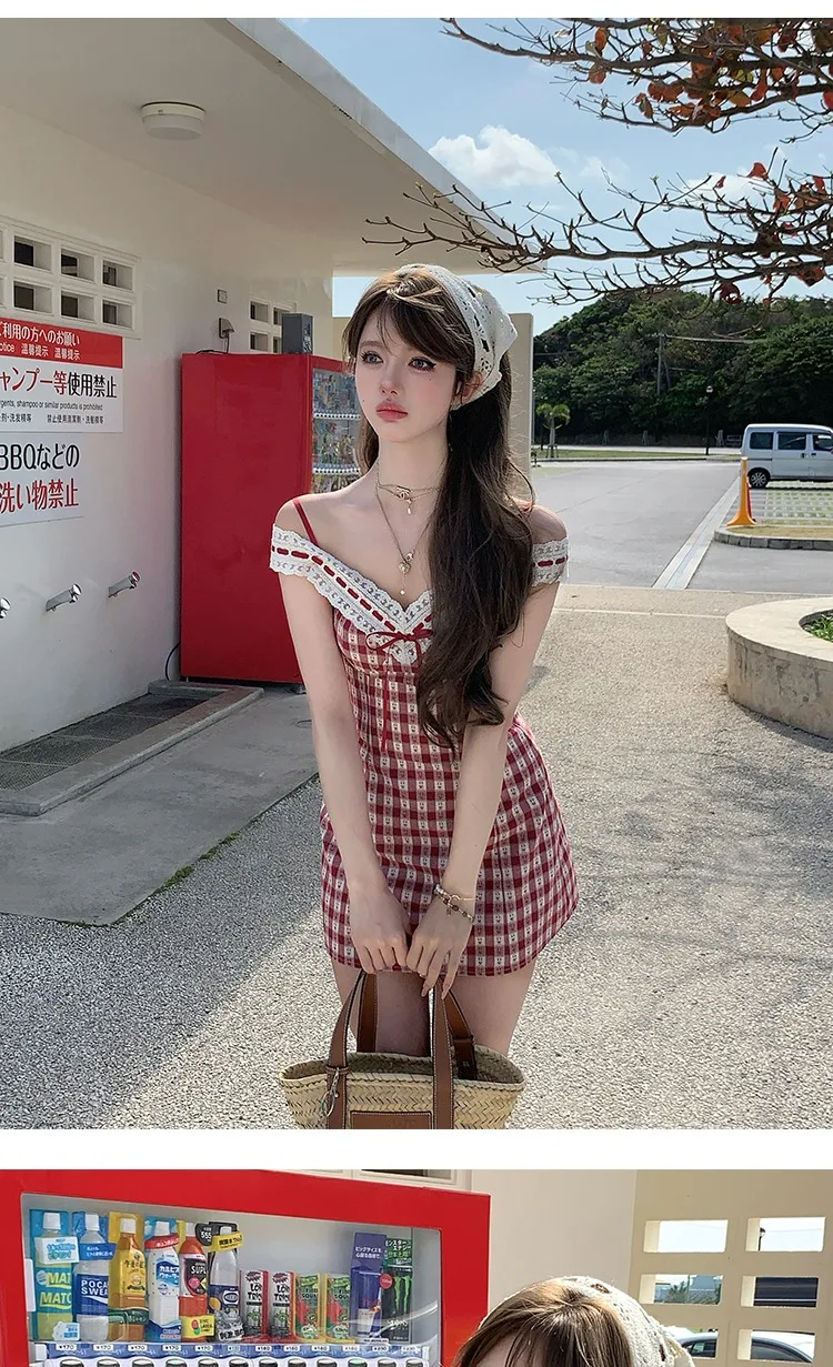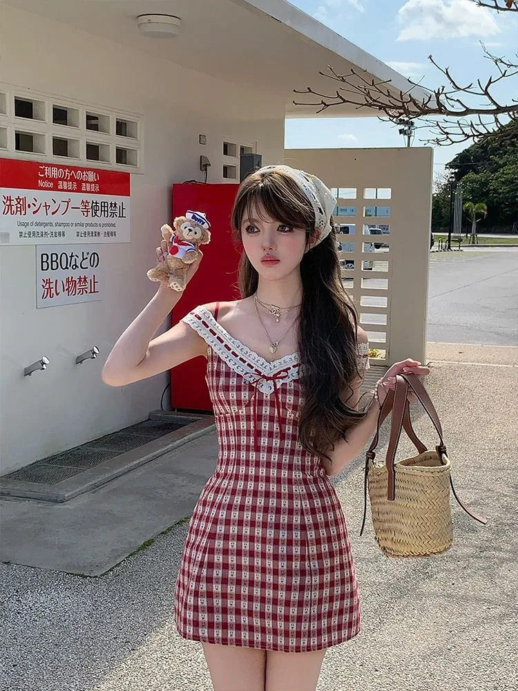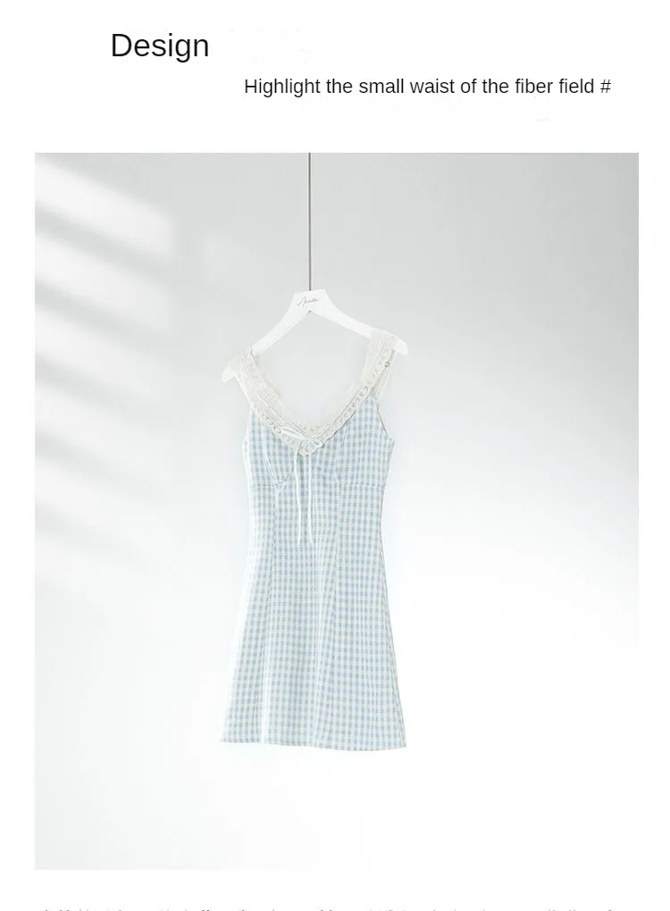 KYLETHOMASW - Lace Suspender Plaid Dress For Women's 2024 Summer New Popular Clothing Korean Fashion Elegant Party High Quality Short Dresses.