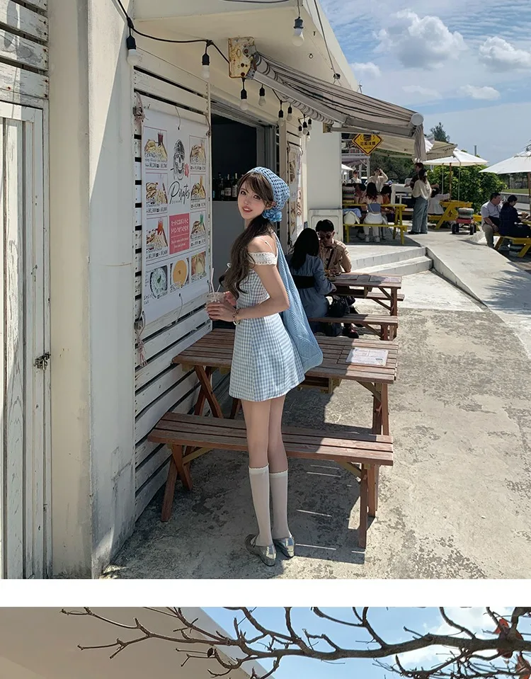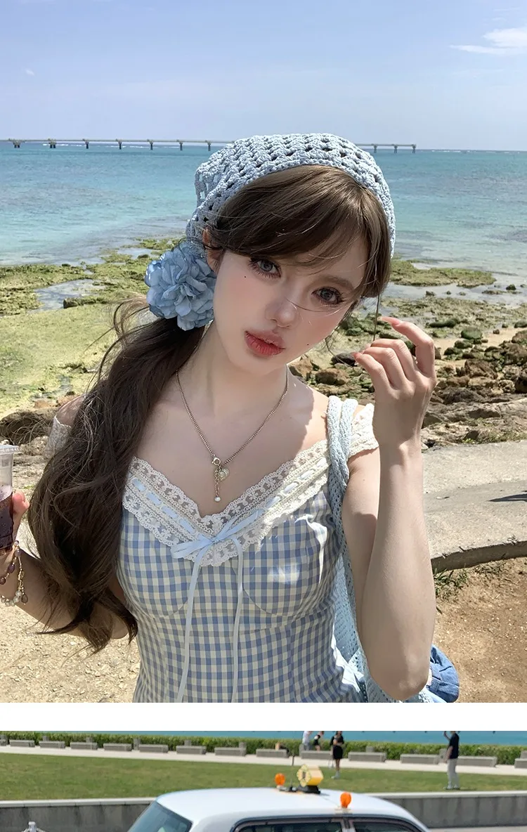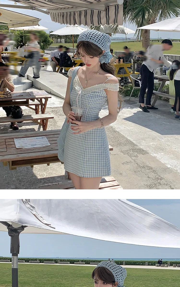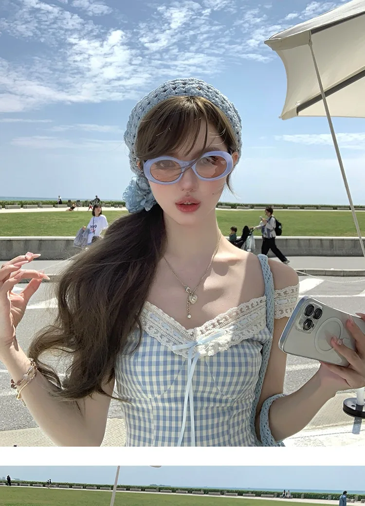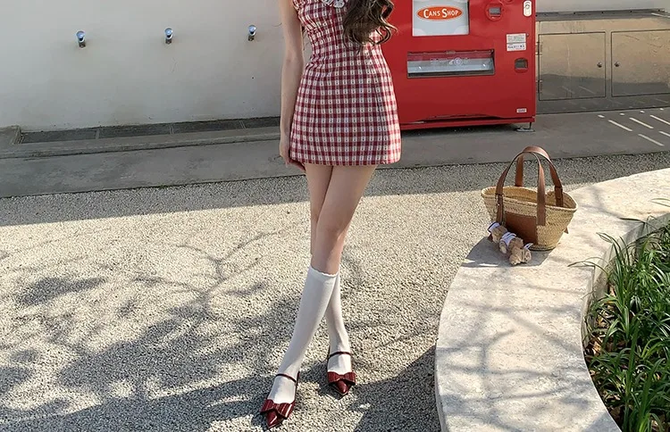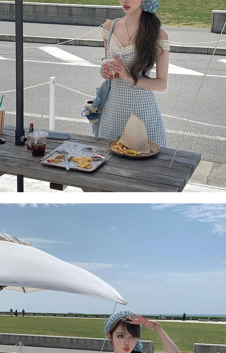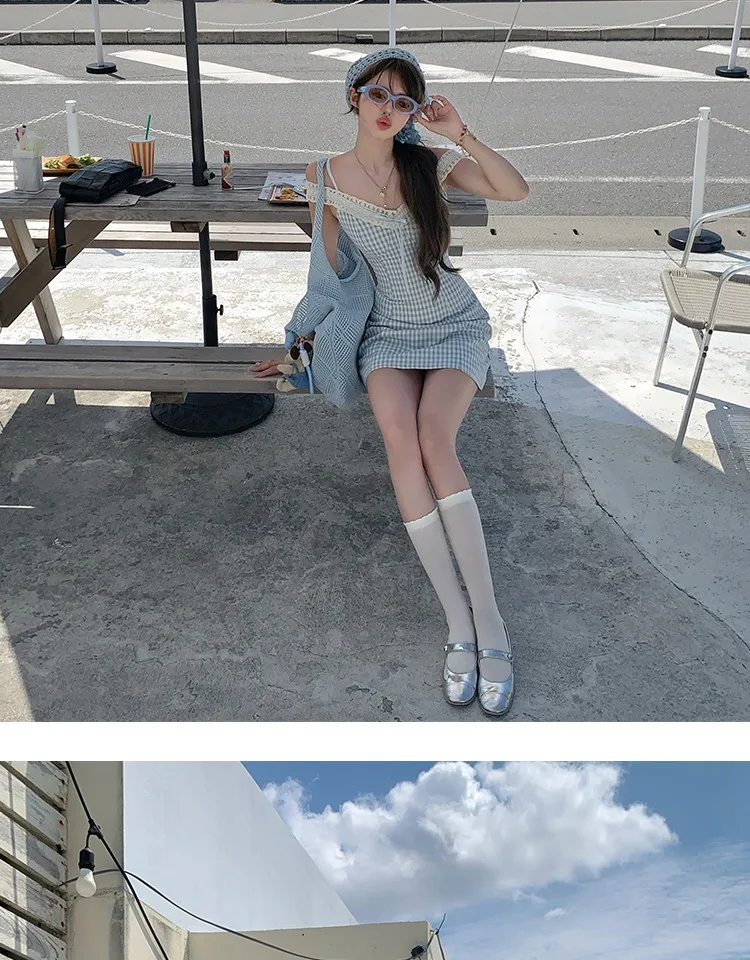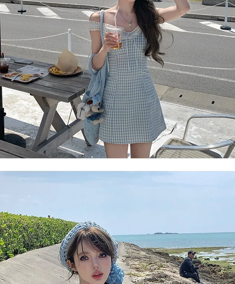 KYLETHOMASW - Lace Suspender Plaid Dress For Women's 2024 Summer New Popular Clothing Korean Fashion Elegant Party High Quality Short Dresses.
