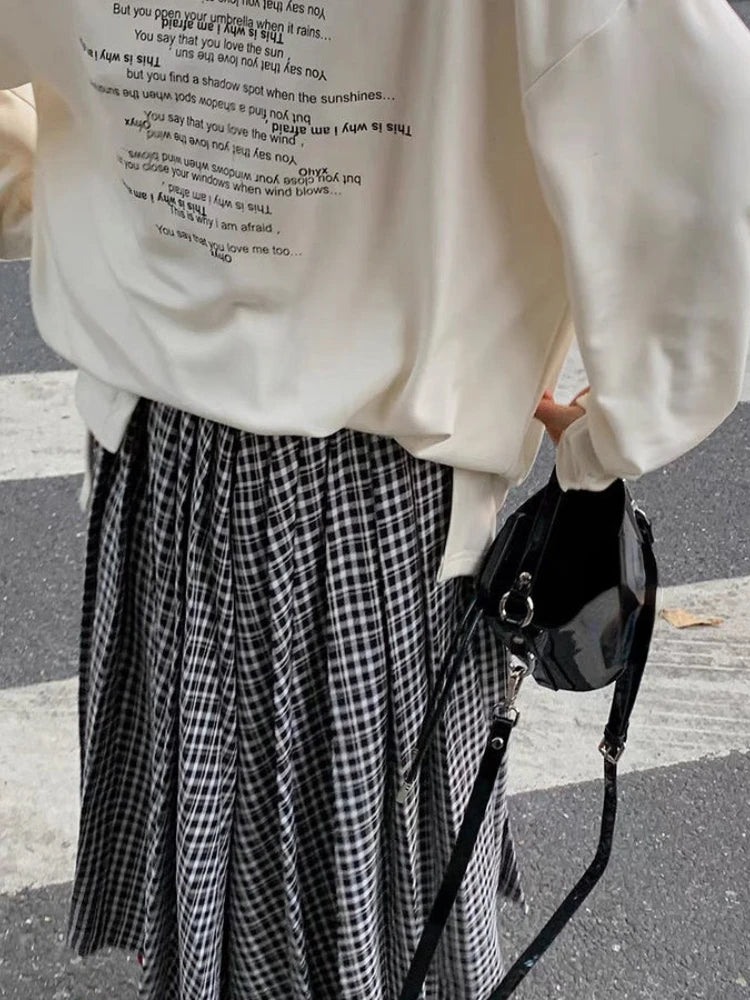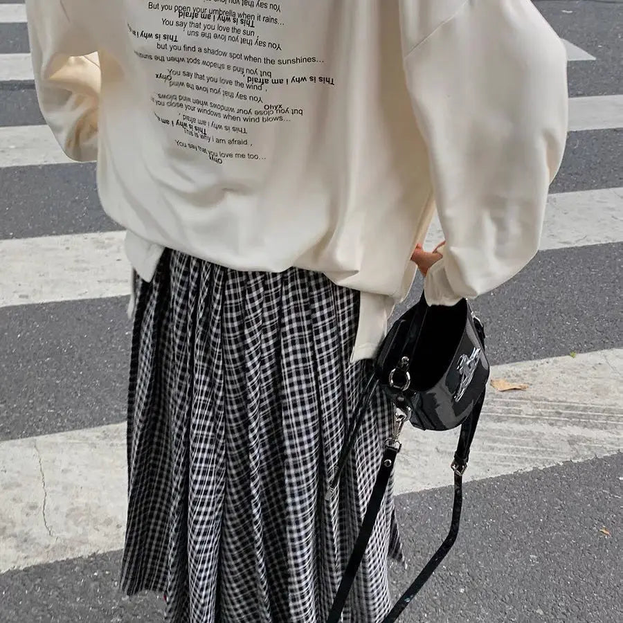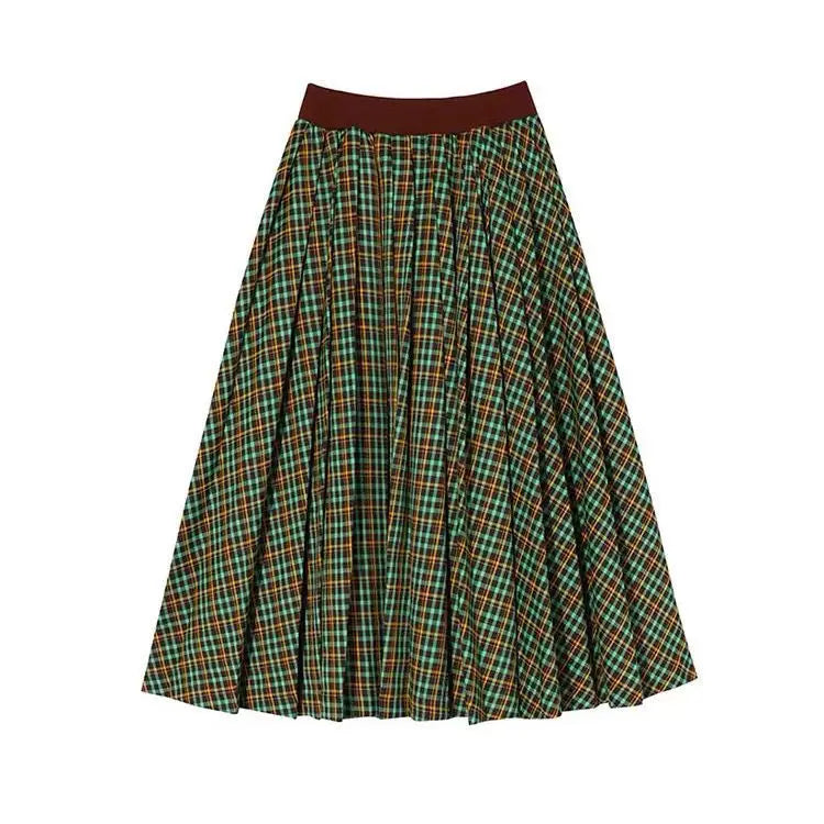 KYLETHOMASW - Large Vintage Plaid Skirts for Woman Autumn New Design Pleated Skirt Korean Fashion Faldas Long Elastic Waist Skirts