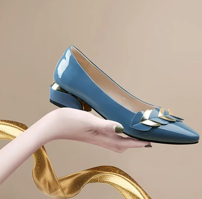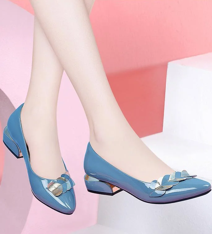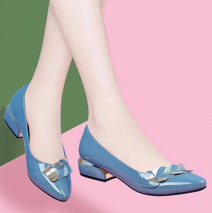 Kylethomasw Low Heel Elegant Blue Normal Leather Casual Shoes for Women 2024 Ladies Summer Footwear Pointed Toe Spring Luxury Brand Young 39