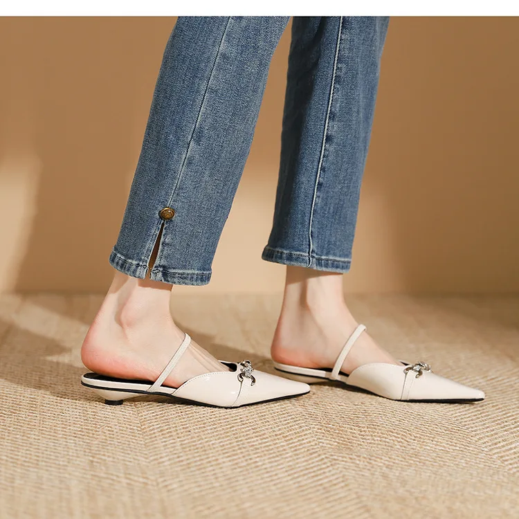 KYLETHOMASW - Low Shoes Ladies' Slippers Pointed Toe Butterfly-Knot Flat Spring PU Rubber Strange Style Shoes Woman Butterfly-Knot Slipp