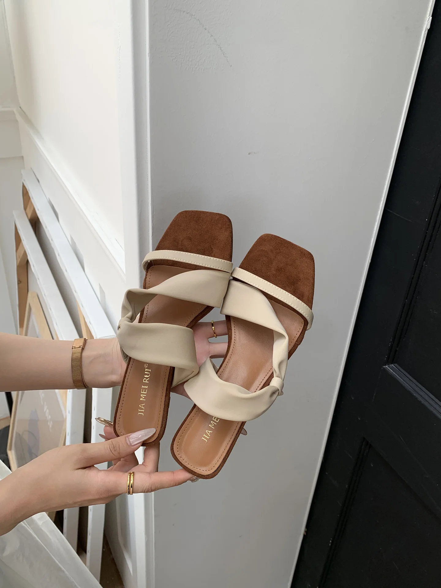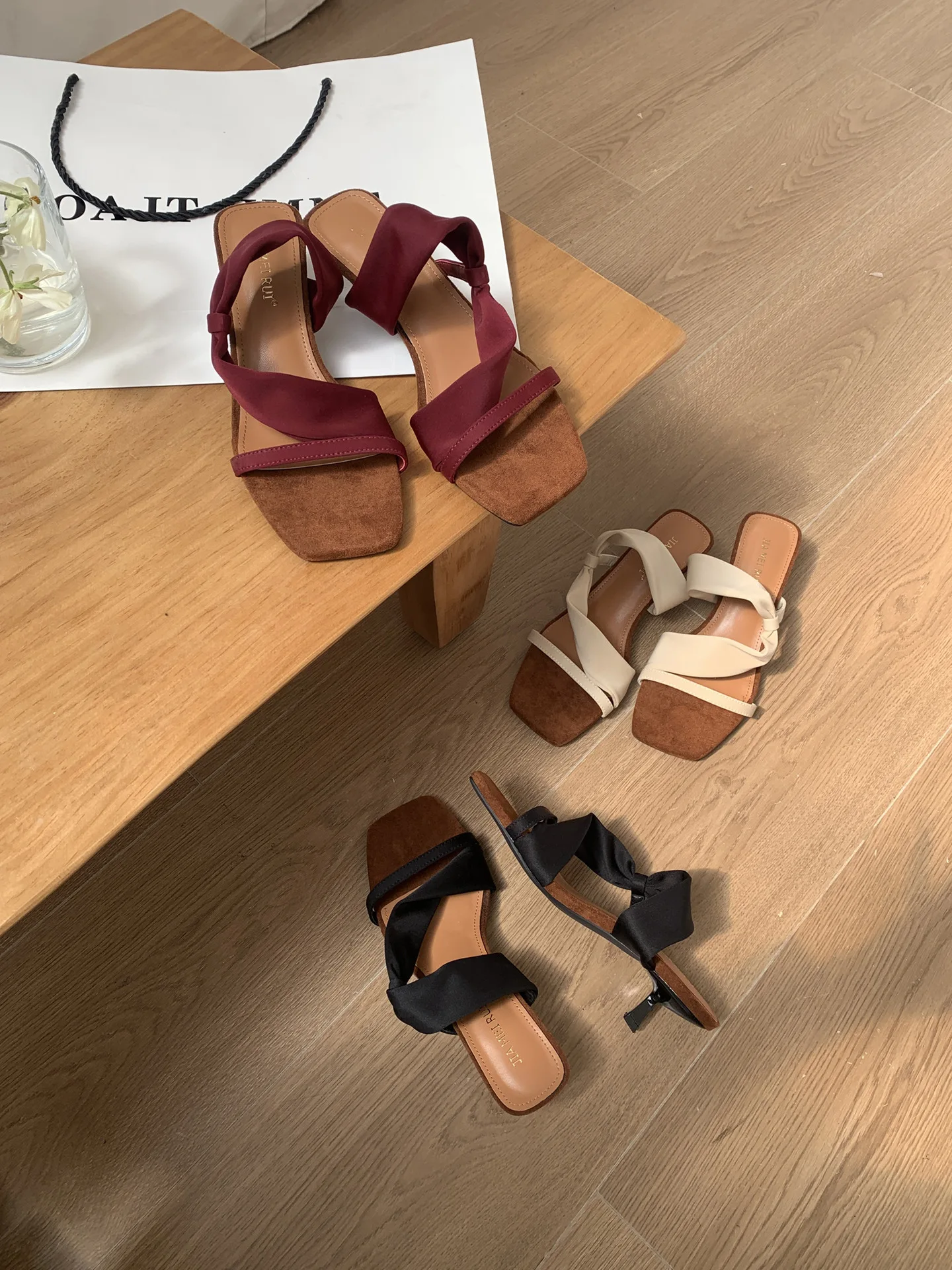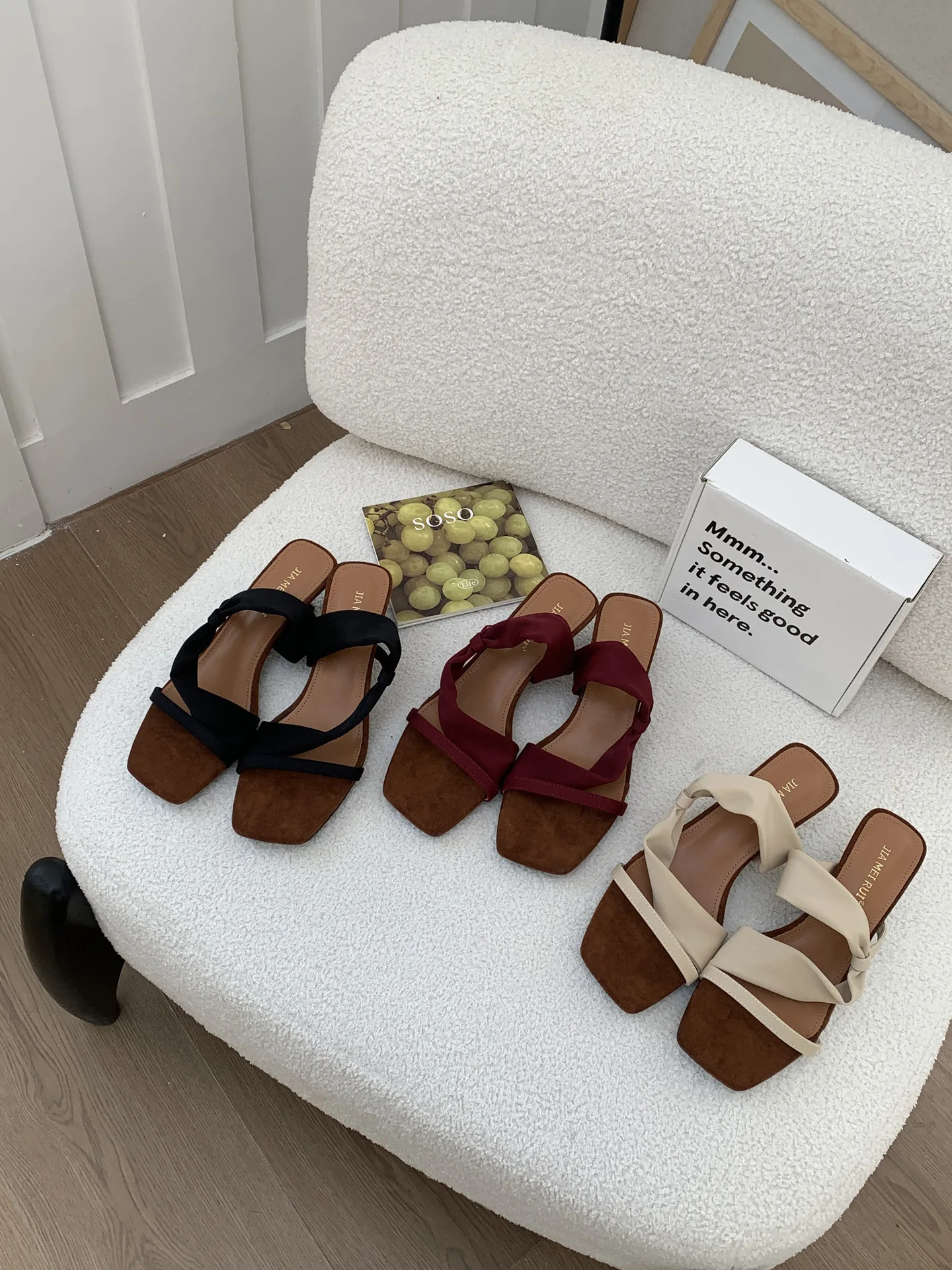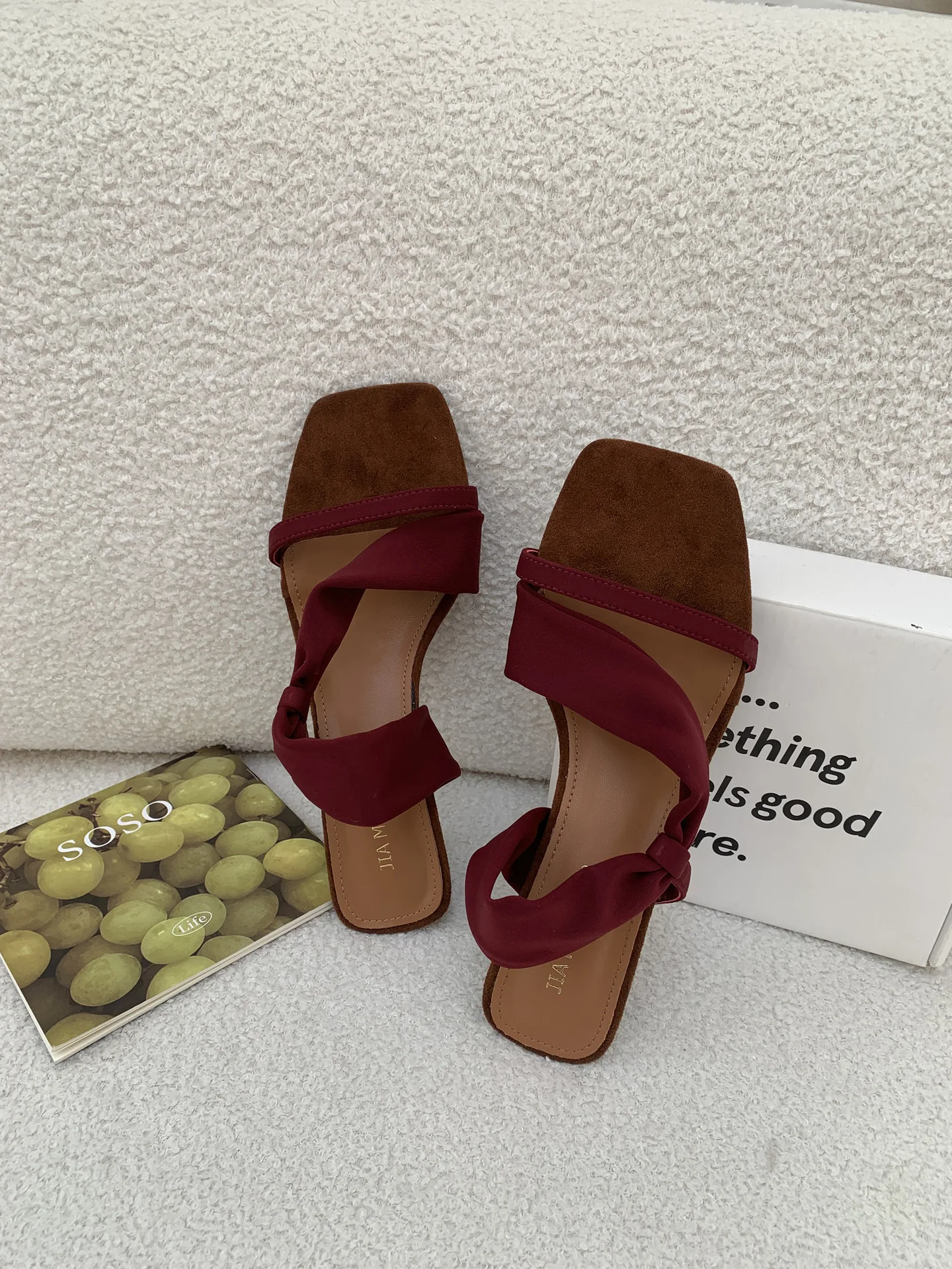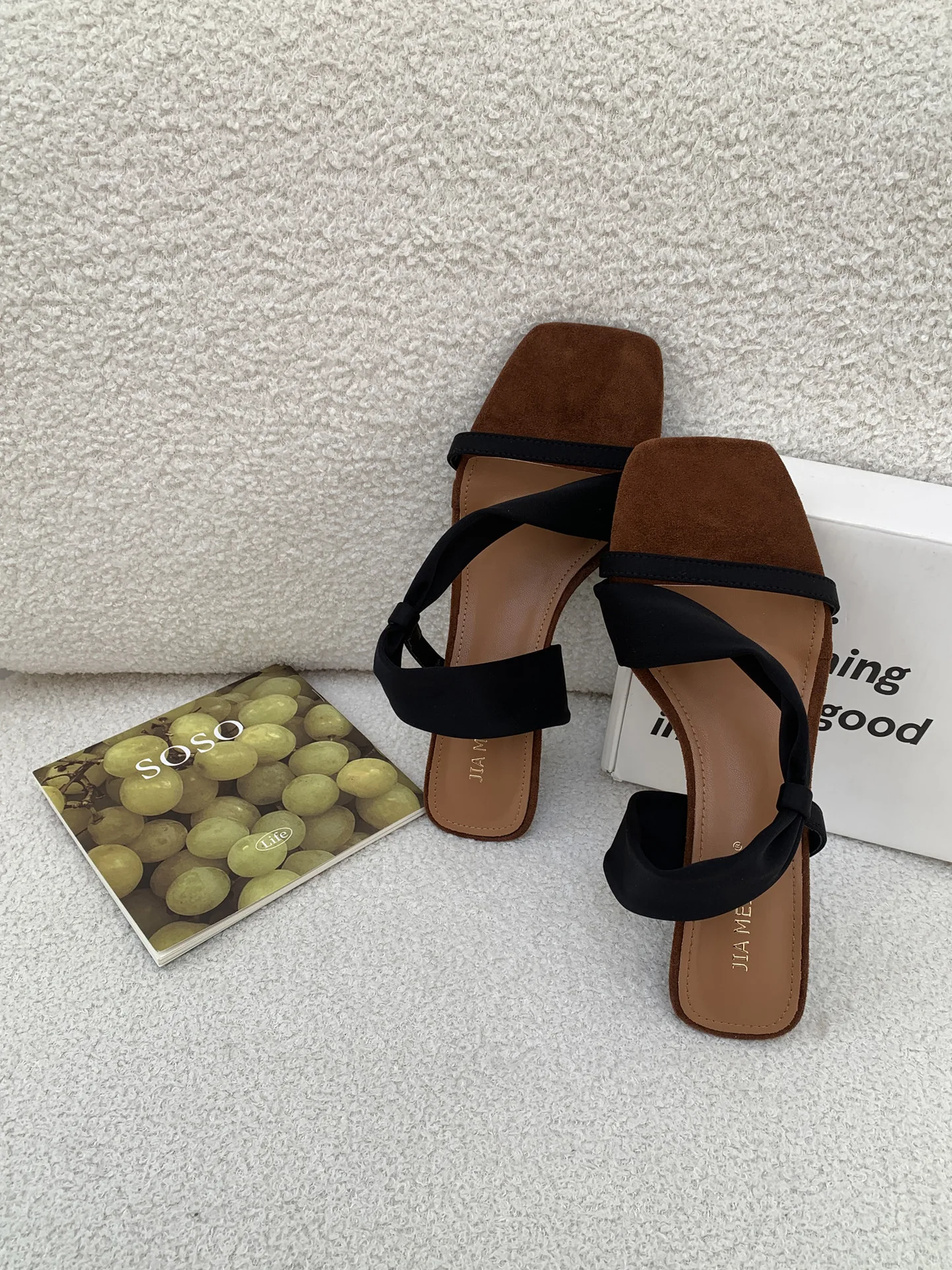 KYLETHOMASW - Low Shoes Rome PU Fabric Hoof Heels Silk Low Shoes Hoof Heels Silk Rome Fabric