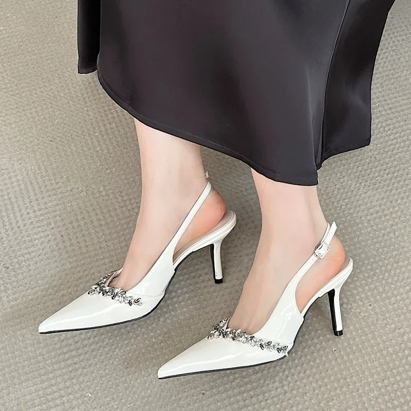 Kylethomasw Luxury Crystal Pointed Toe High Heels Women Fashion Elegant Party Dress Shoes Ladies Sexy Brand Slingbacks Sandals Women Pumps