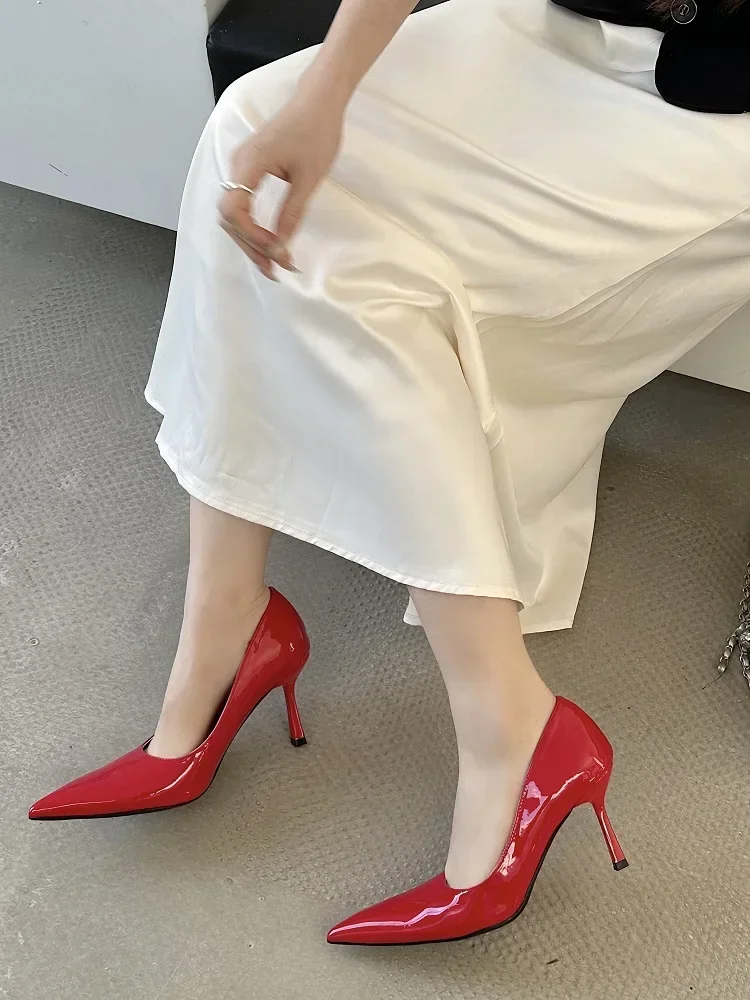 Kylethomasw Luxury Patent Leather Women Pumps Sexy Pointed Toe Thin High Heels Elegant Party Shoes for Women Heeled Sandals Tacones De Mujer