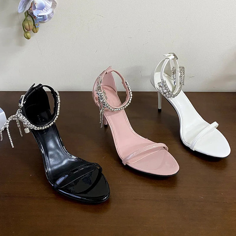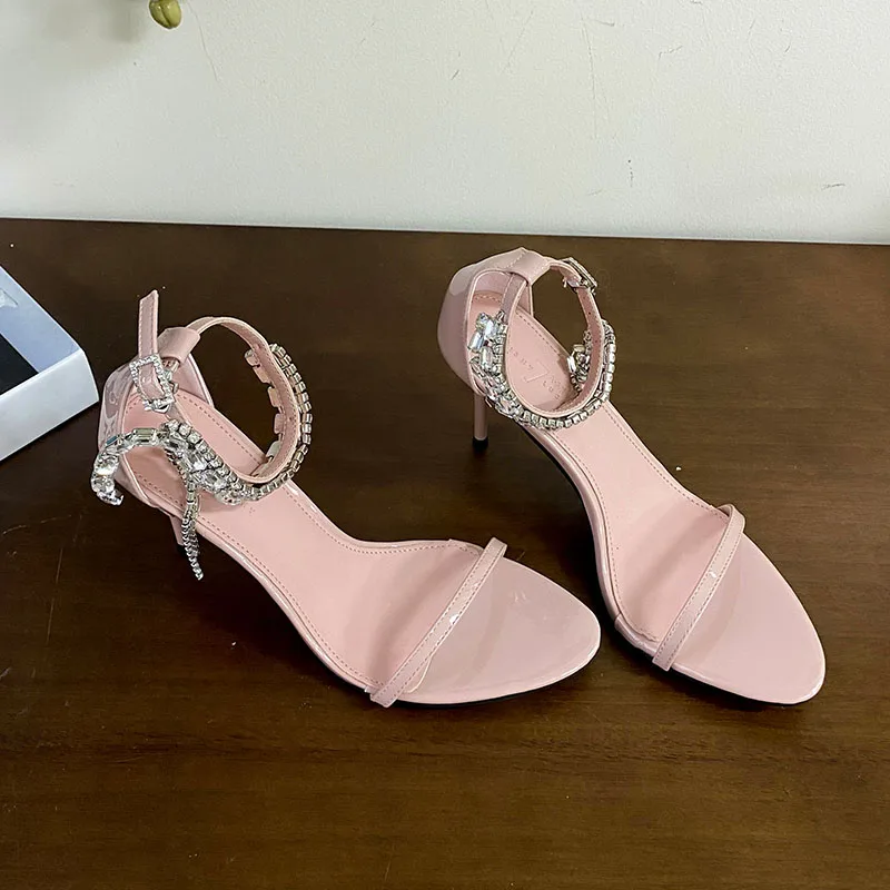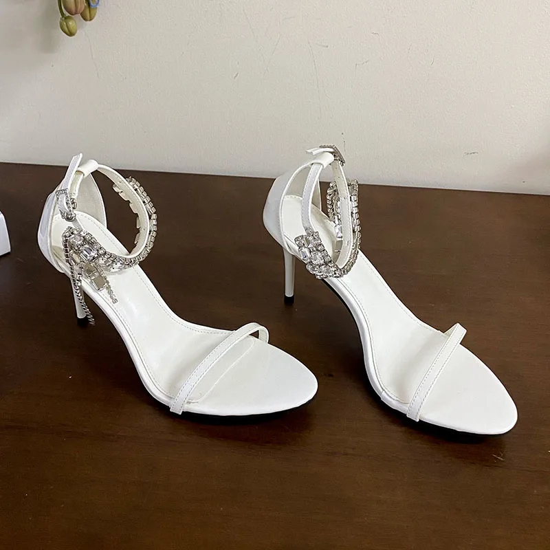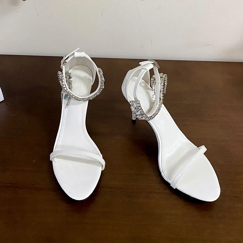 KYLETHOMASW  -  Luxury Rhinestones Women Heels Sandals Shoes Fashion Round Toe Female Ankle Strap Footwear Party Ladies High Heels Shoes Pumps