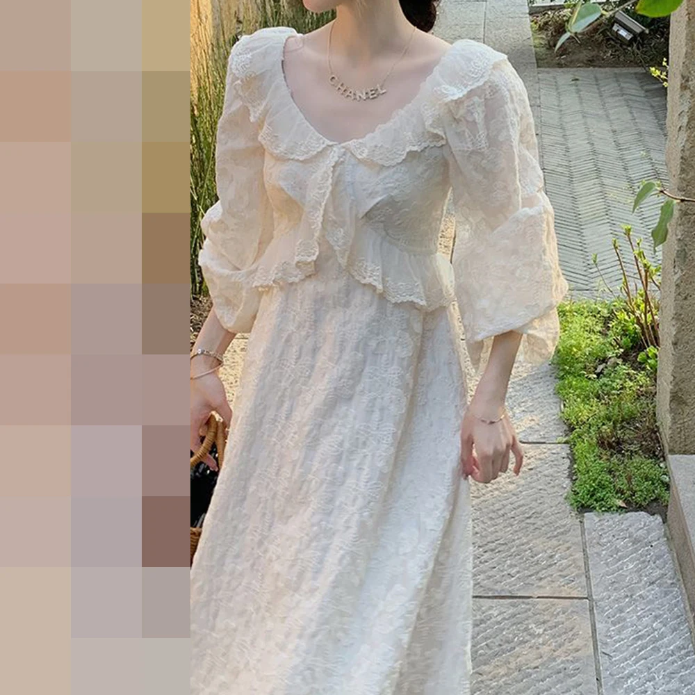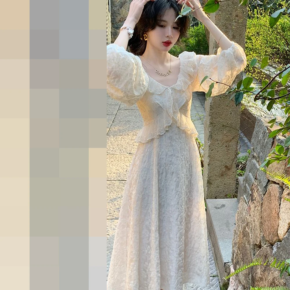 KYLETHOMASW - Mermaid princess summer new retro ruffle edge embroidery slim chic dress Hong Kong flavor retro chic skirt