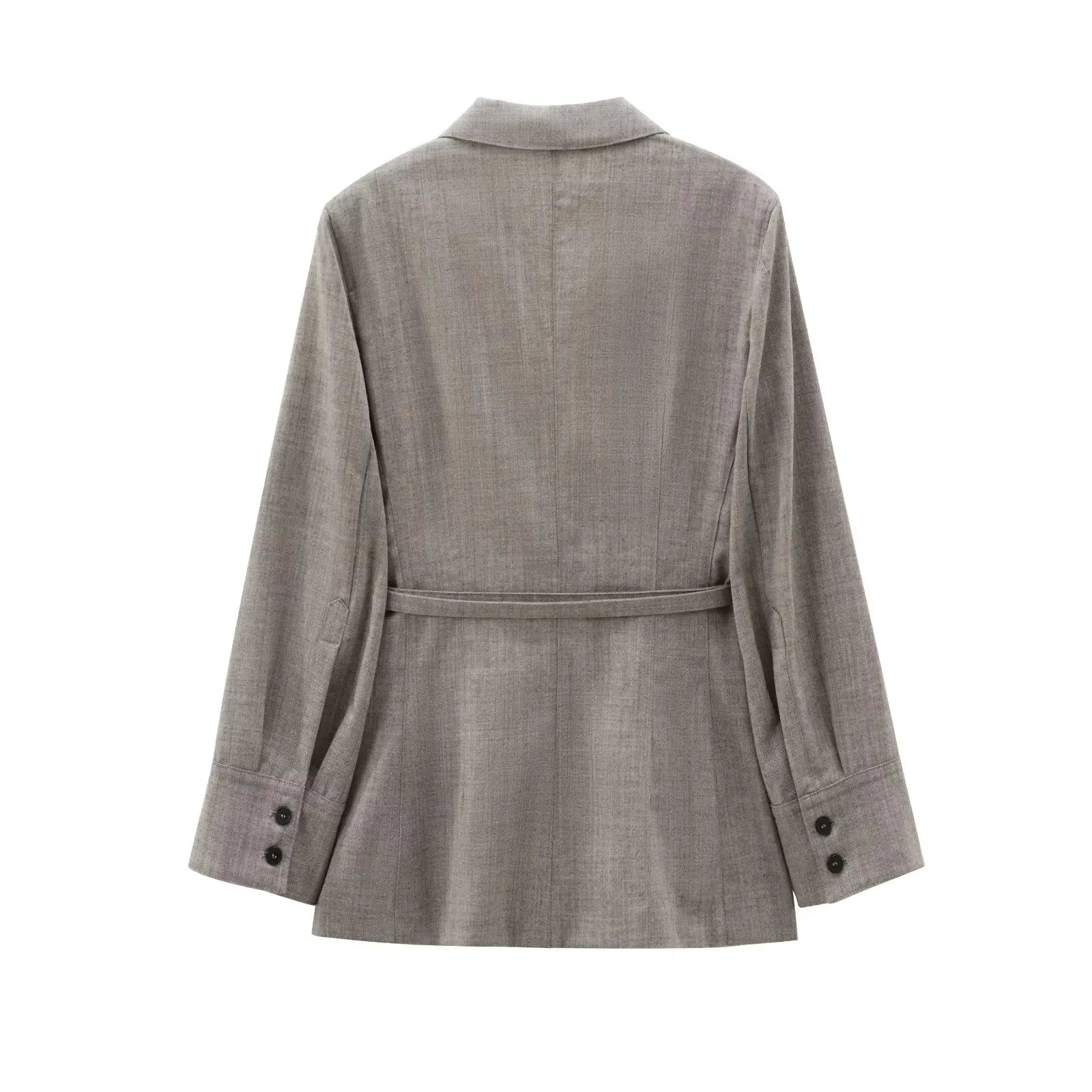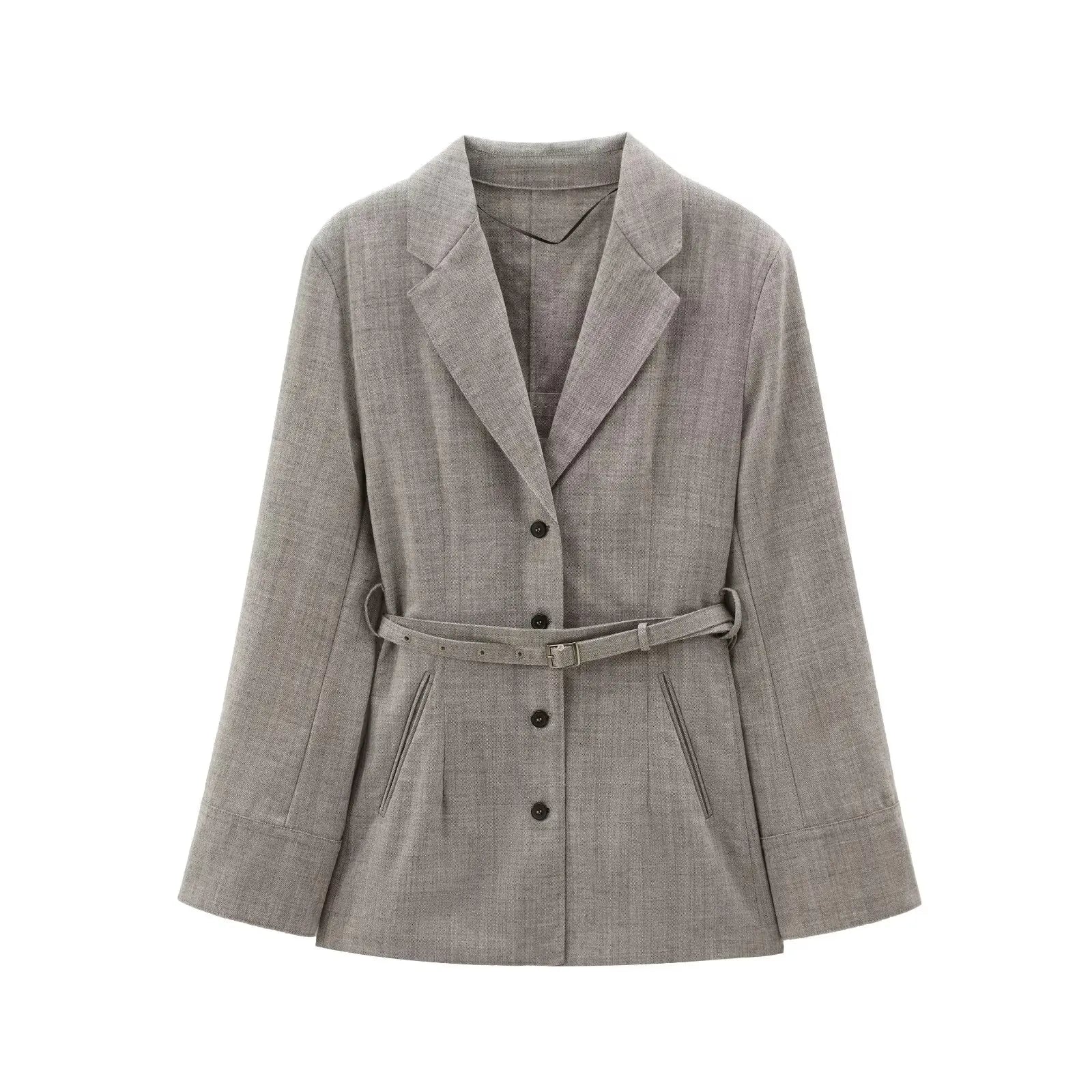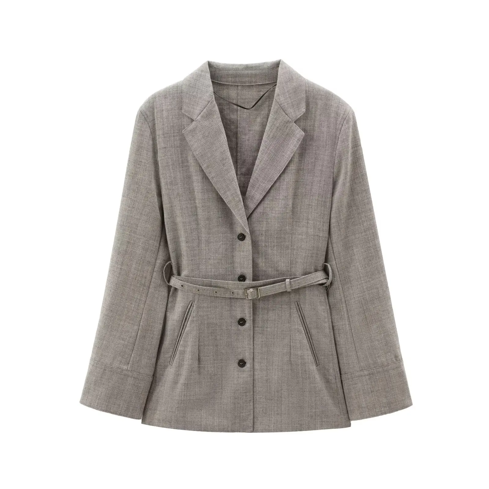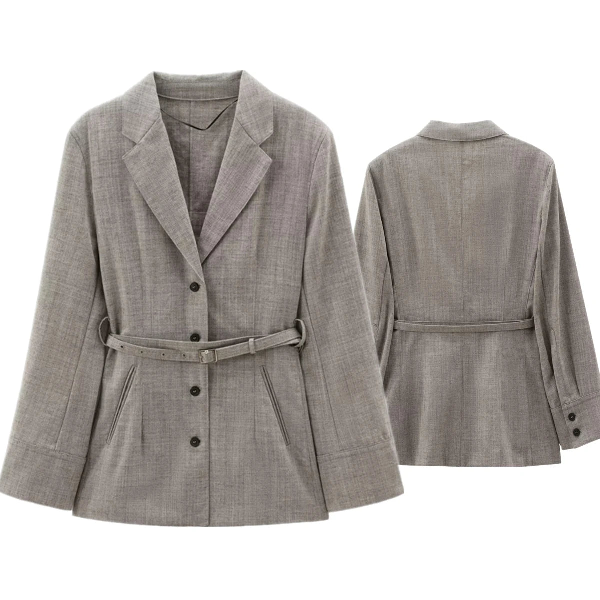 KYLETHOMASW - Minimalist Collect Waist Casual Suit Jacket Fashion Elegant Gray Color Single Breasted Blazers Women Tops