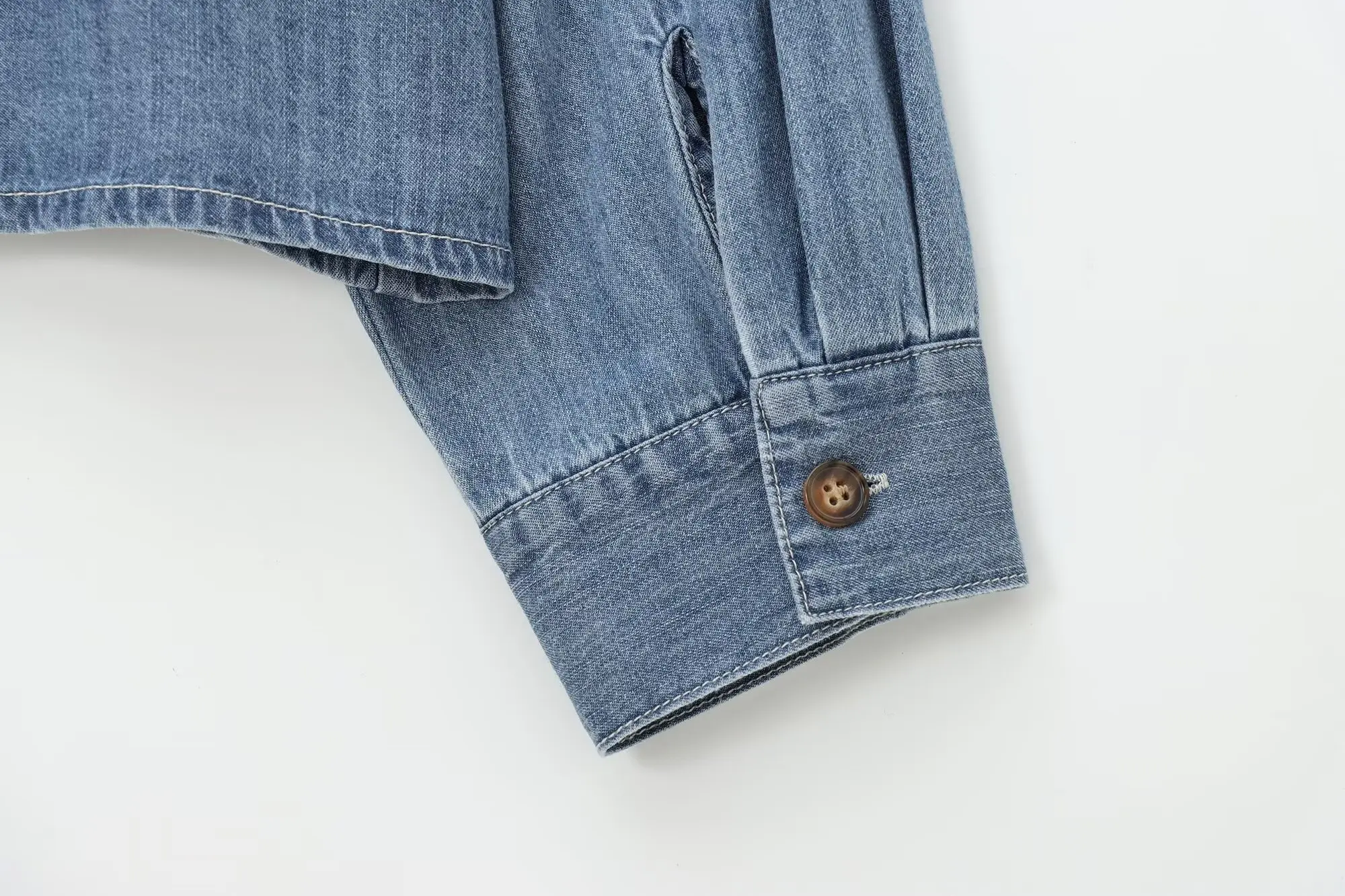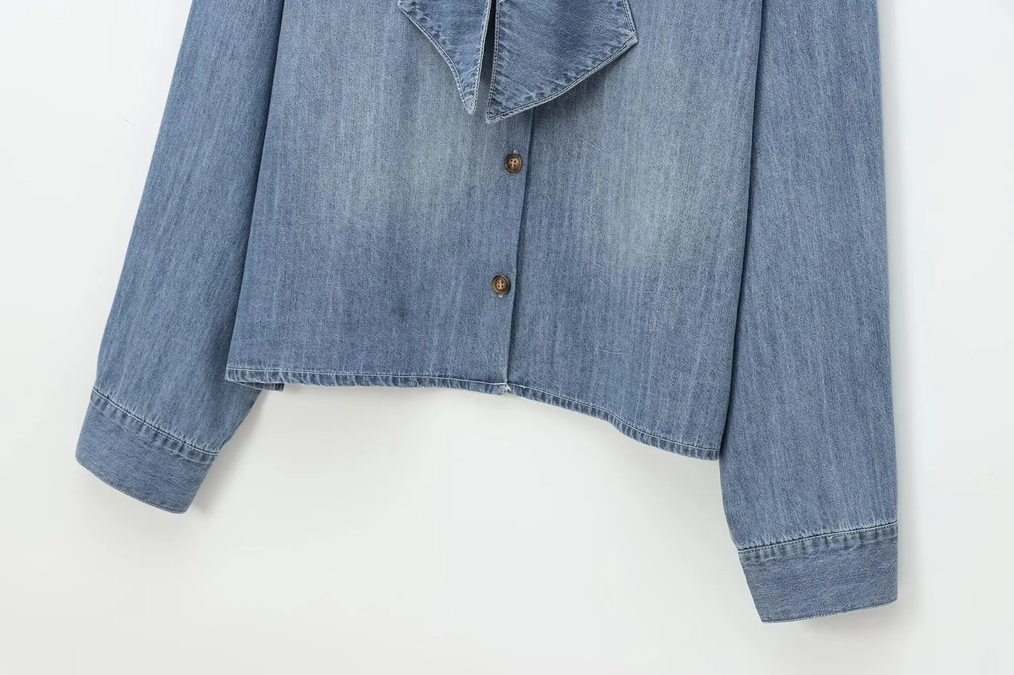 KYLETHOMASW - Minimalist Women's Blouse Bow Denim Shirt Fashionable And Elegant Casual Commuting Long Sleeved Shirt Pull Tops