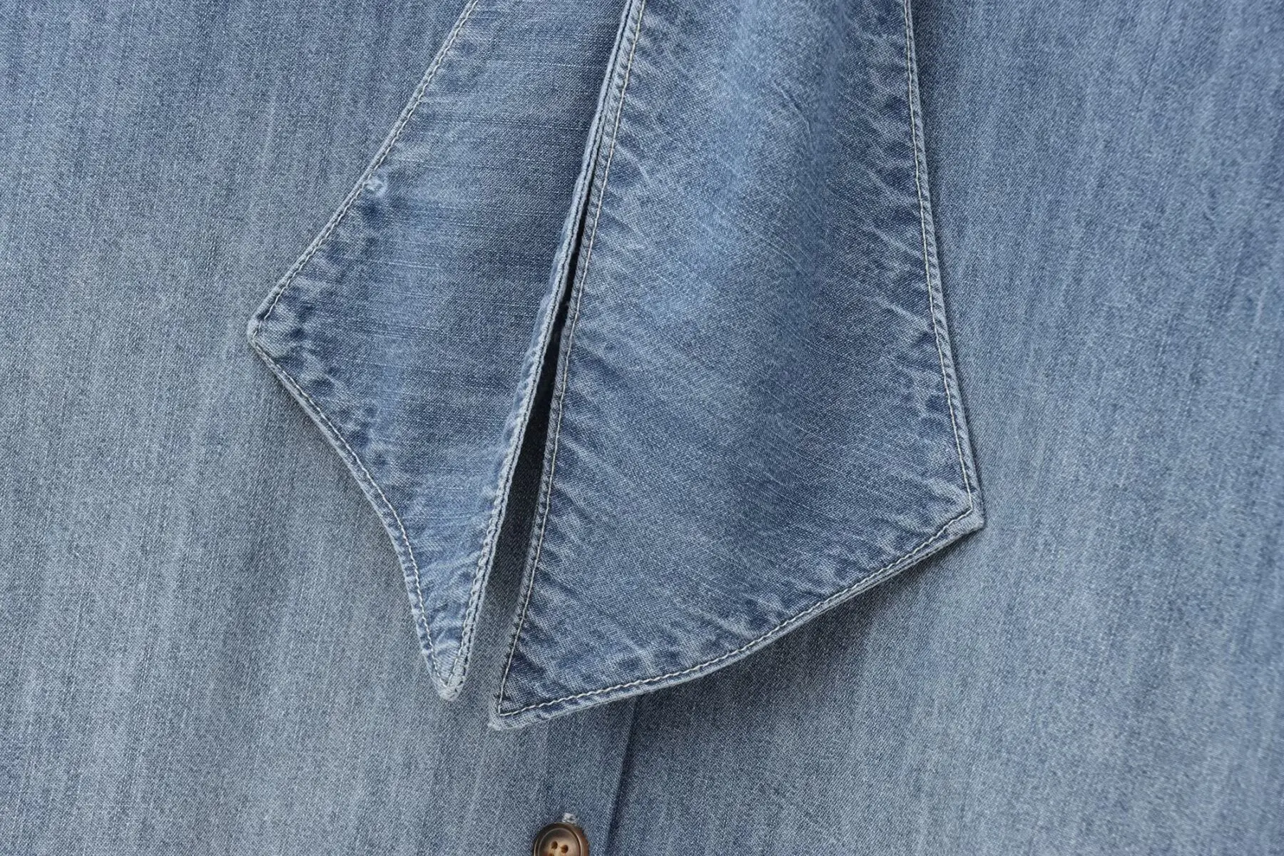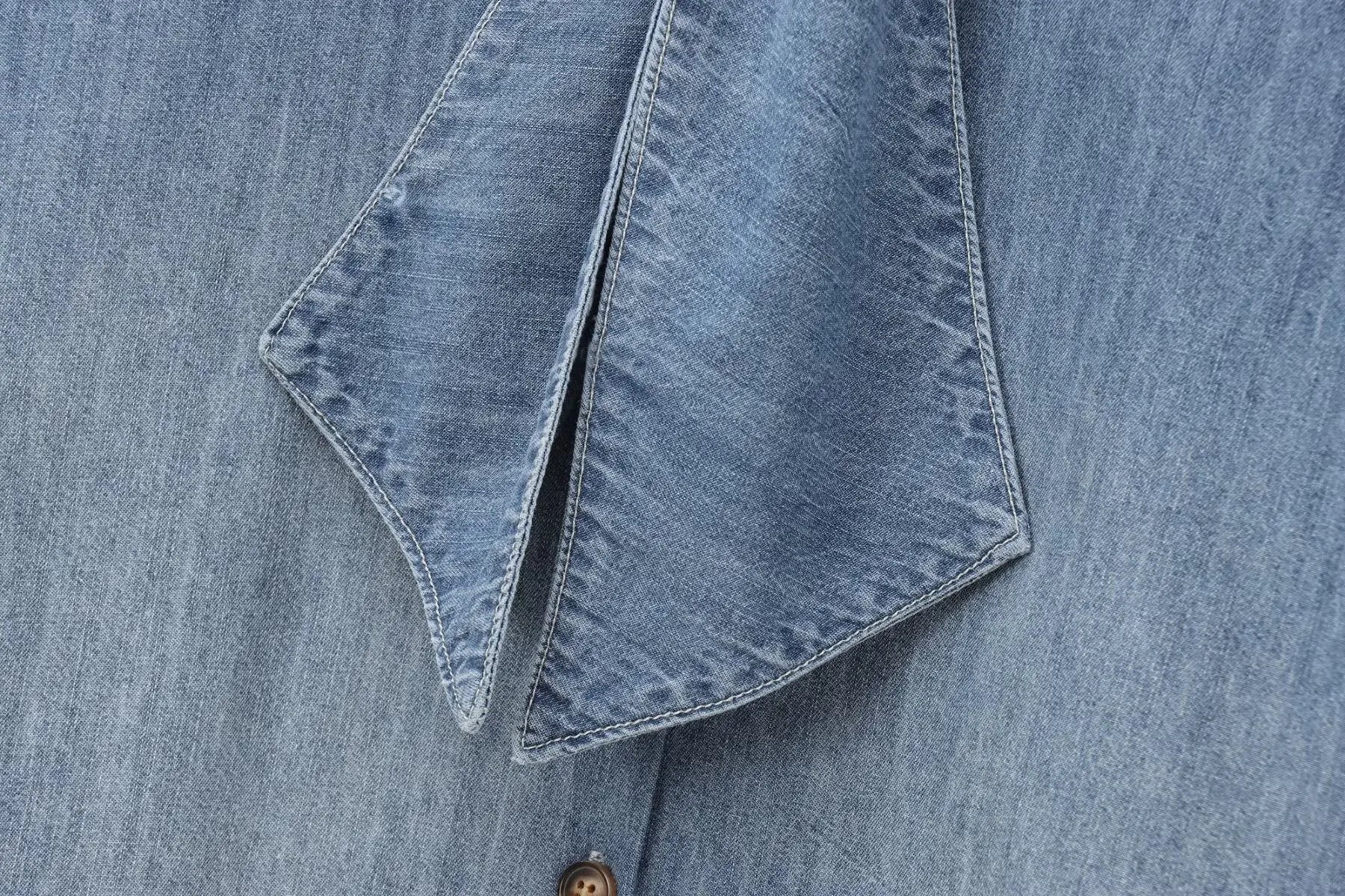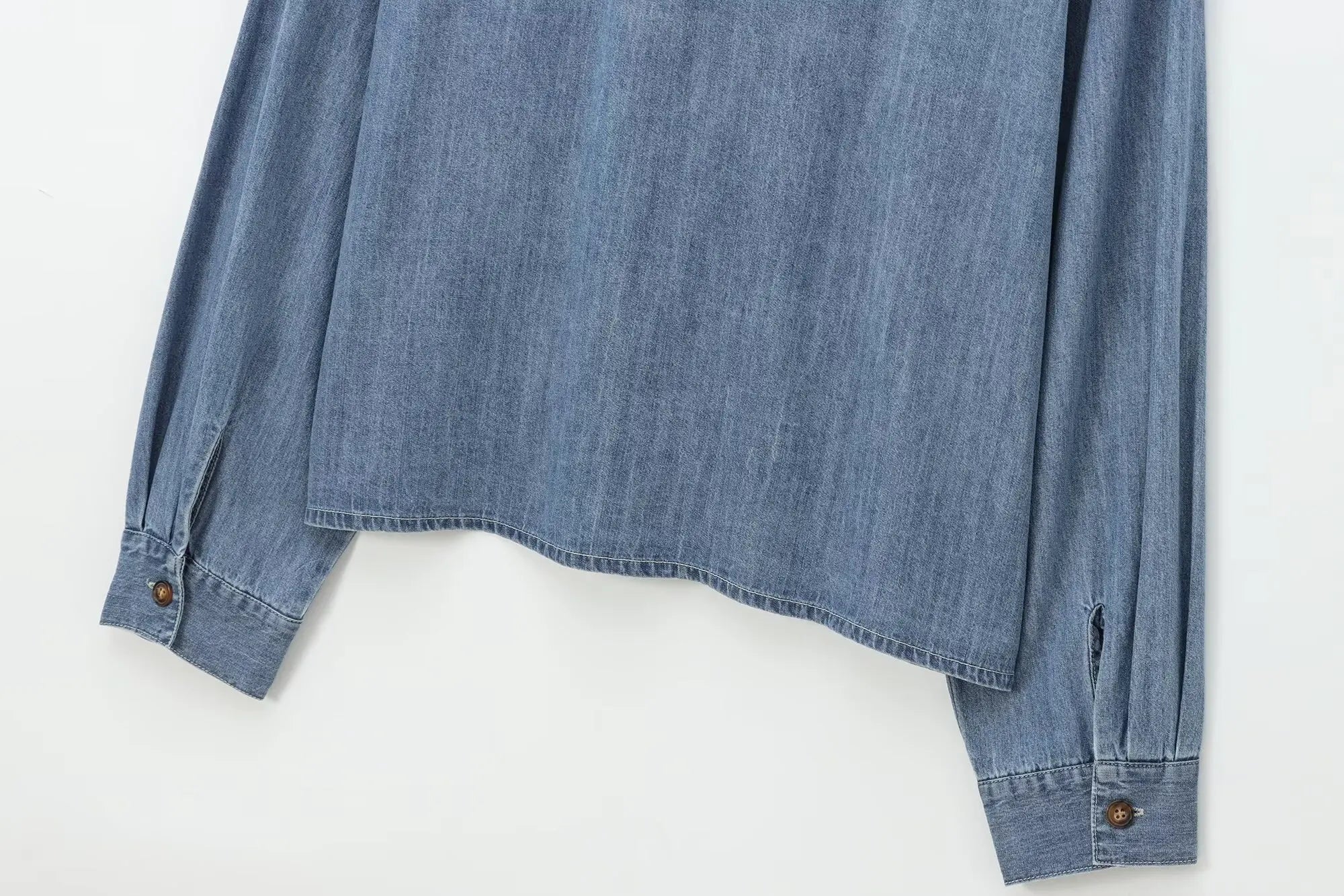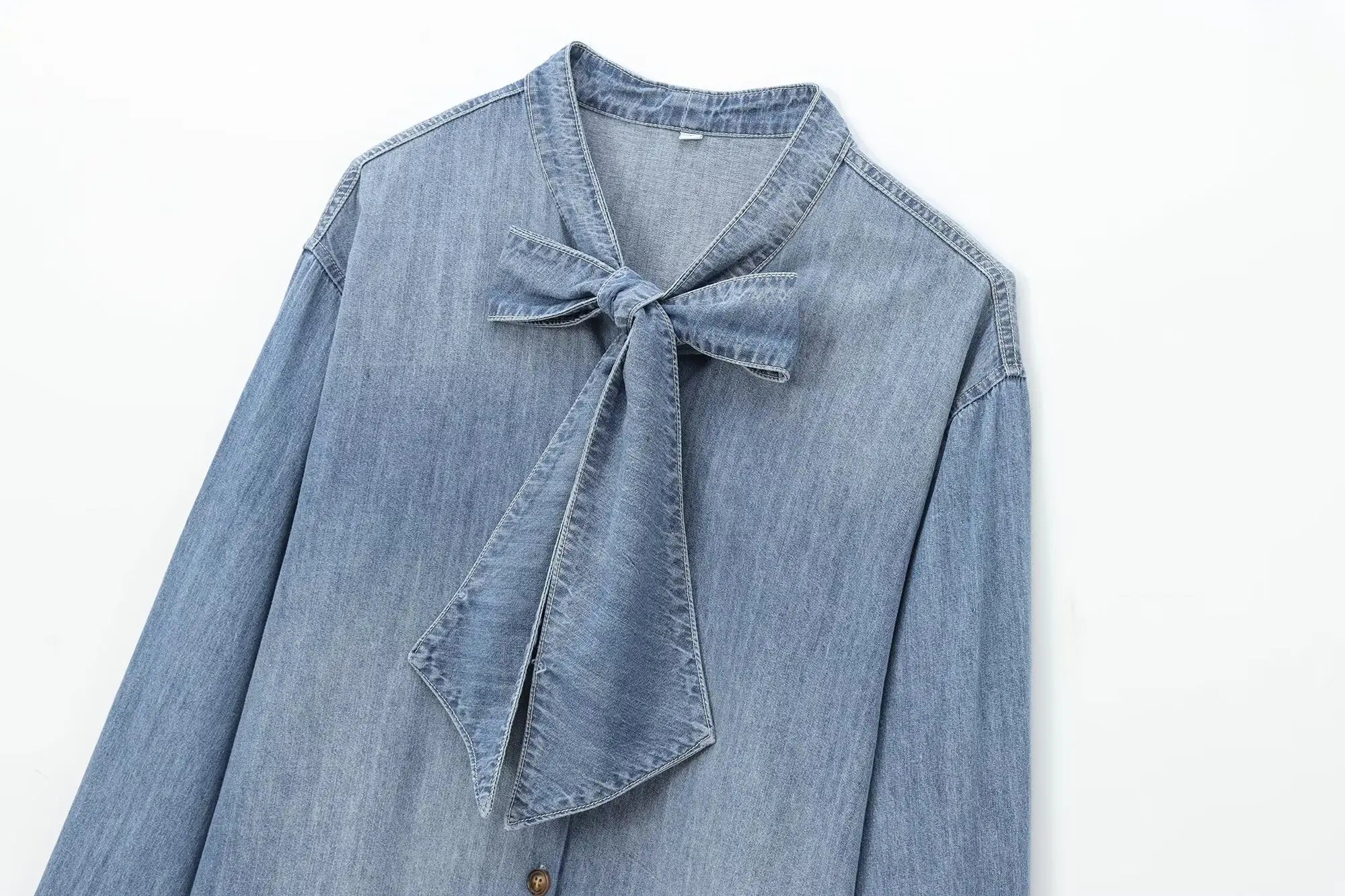 KYLETHOMASW  -  Minimalist Women's Blouse Bow Denim Shirt Fashionable And Elegant Casual Commuting Long Sleeved Shirt Pull Tops