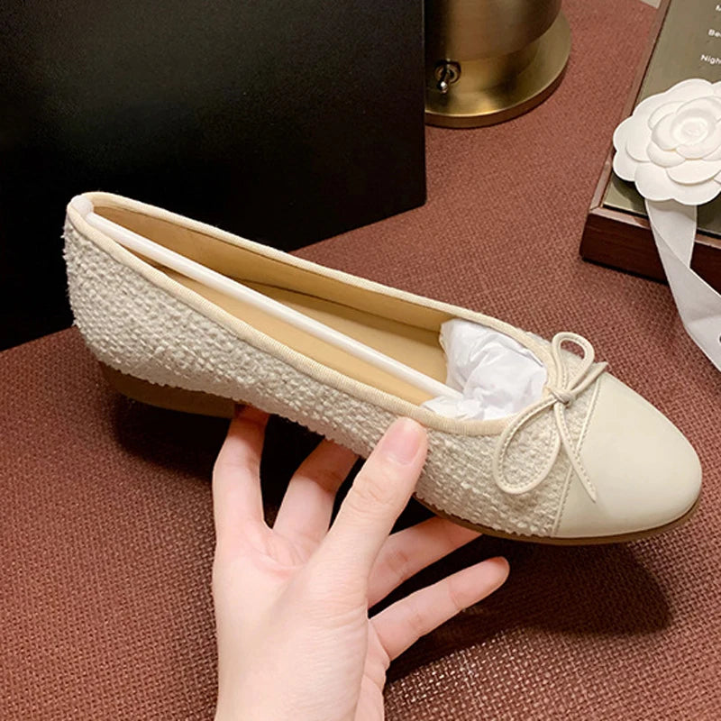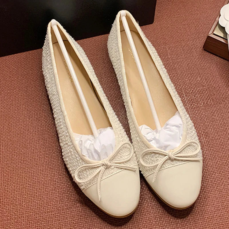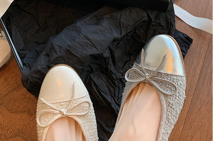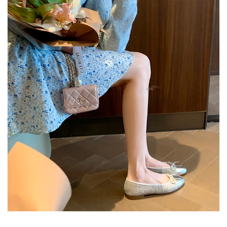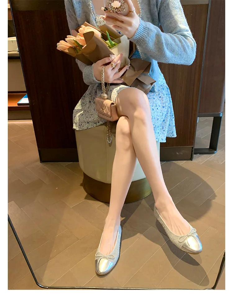KYLETHOMASW - Mixed Color Silver Bowtie Ballets Women Round Toe Flats Office Slip On Loafers Ladies Tweed Cloth Ballerina Bridal Wedding Shoes