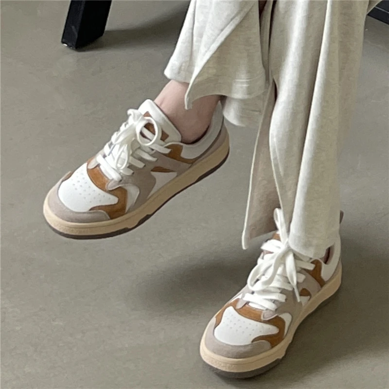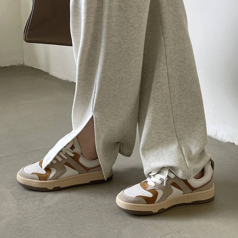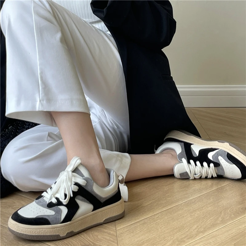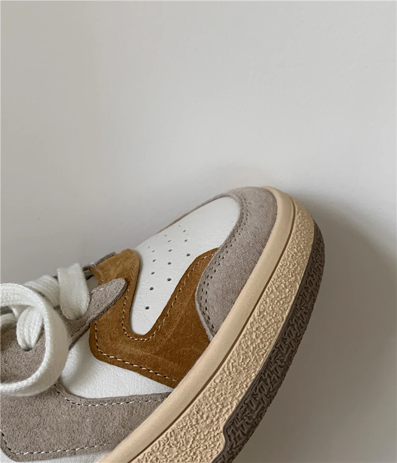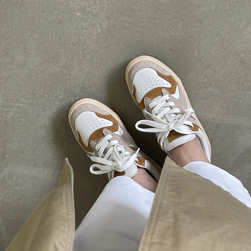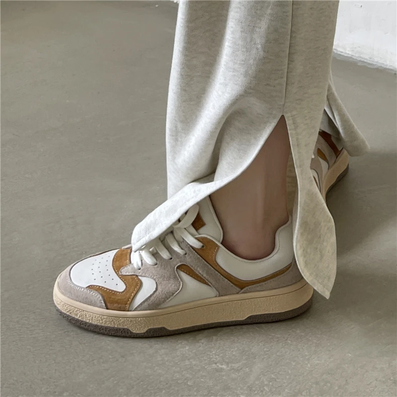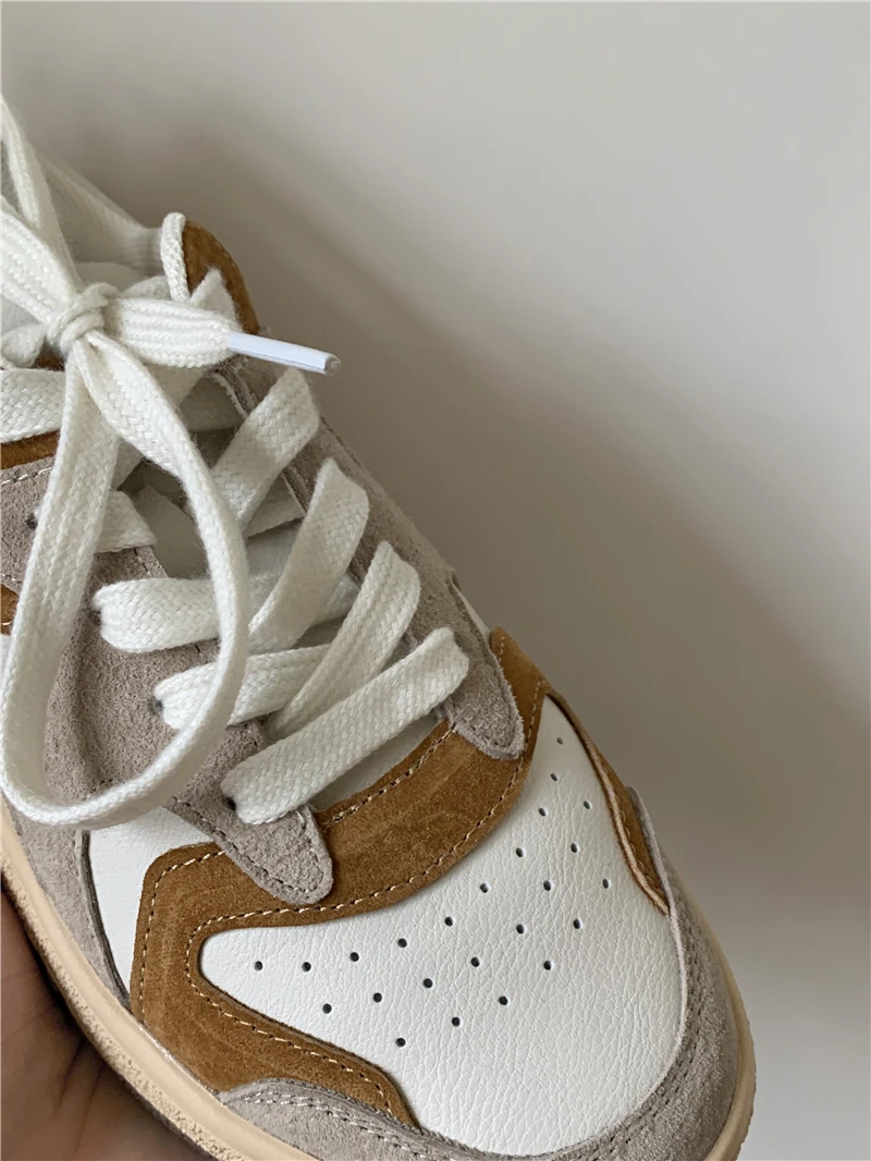 KYLETHOMASW - Mixed Colors Cow Suede Leather Women Sneakers Casual Outdoor Flats Lace-Up Comfortable Shoes Woman 2025 Four Season New