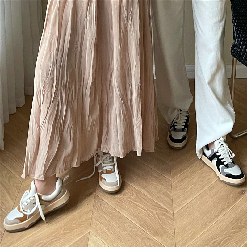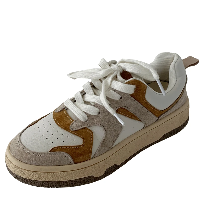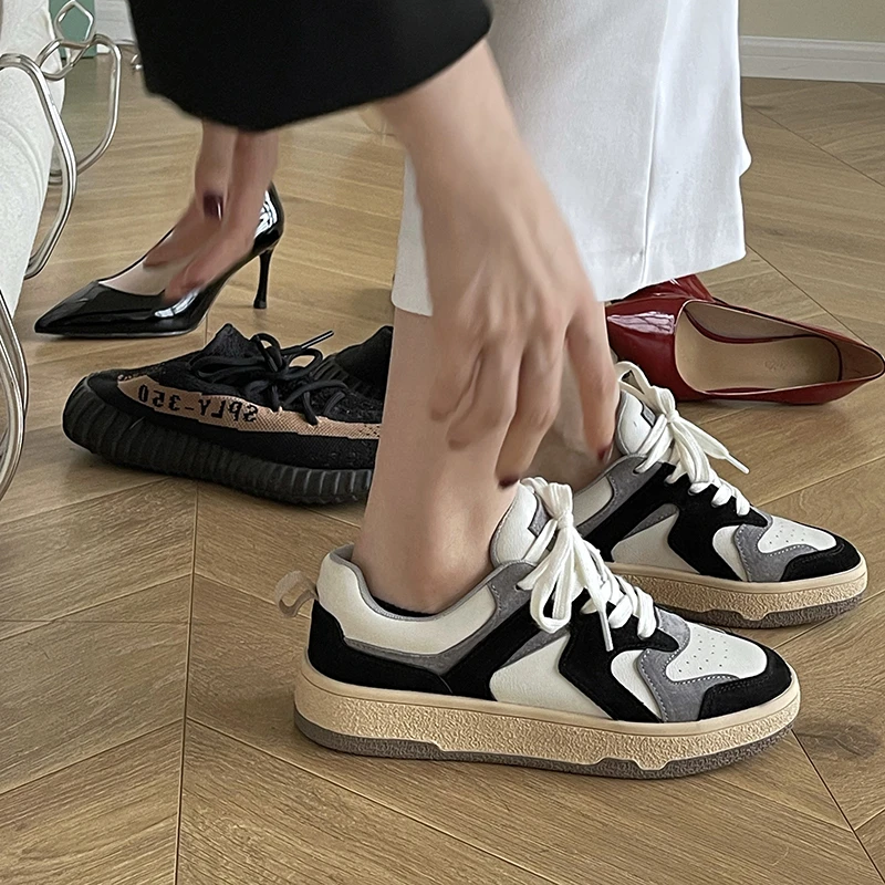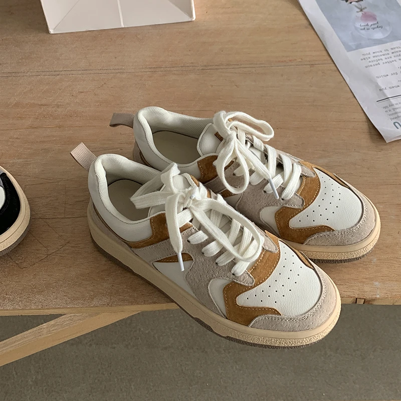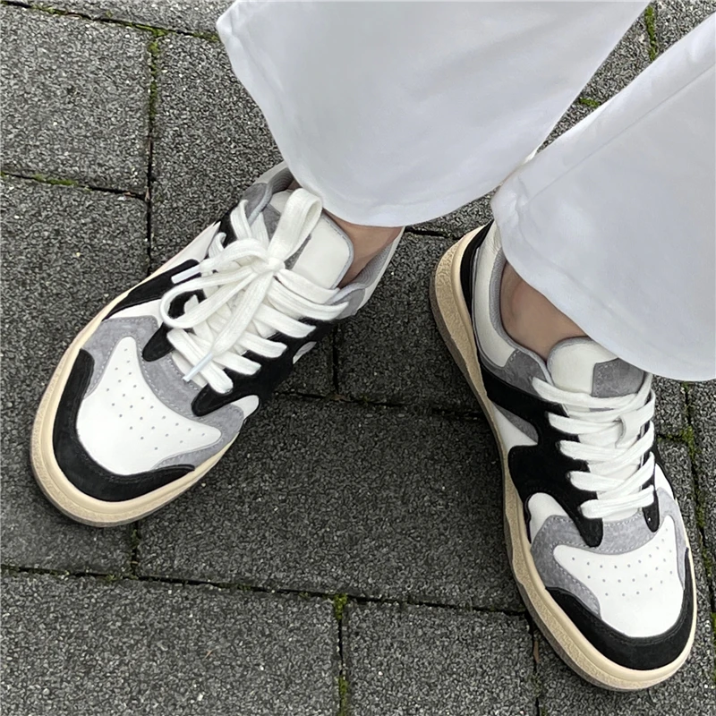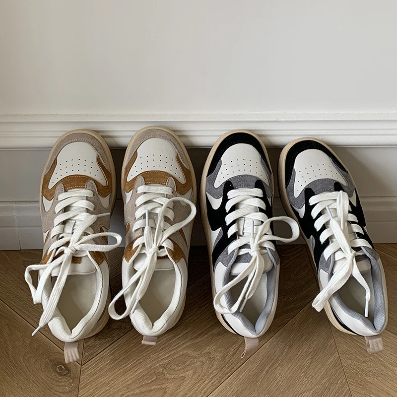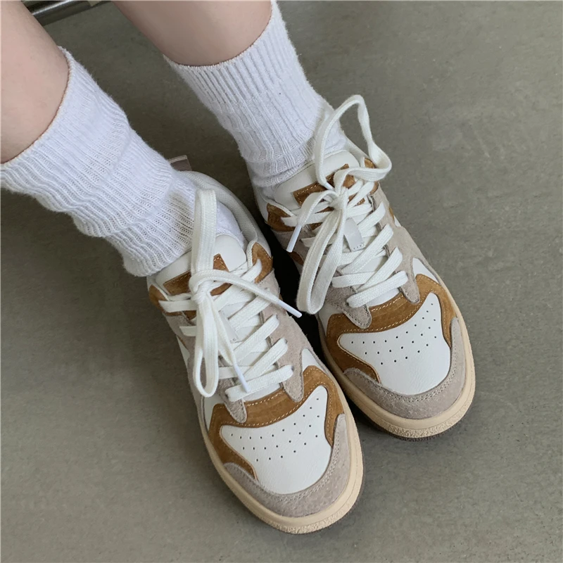 KYLETHOMASW - Mixed Colors Cow Suede Leather Women Sneakers Casual Outdoor Flats Lace-Up Comfortable Shoes Woman 2025 Four Season New