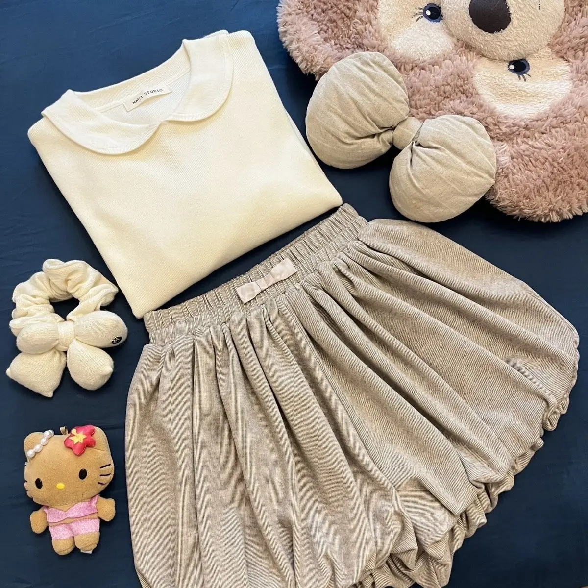 KYLETHOMASW - Moda Trendy Bud Loose High Waist Femme Pantalones Slim Small Fellow French Style Shorts Ruched Lovely Casual Elegant Soft Short