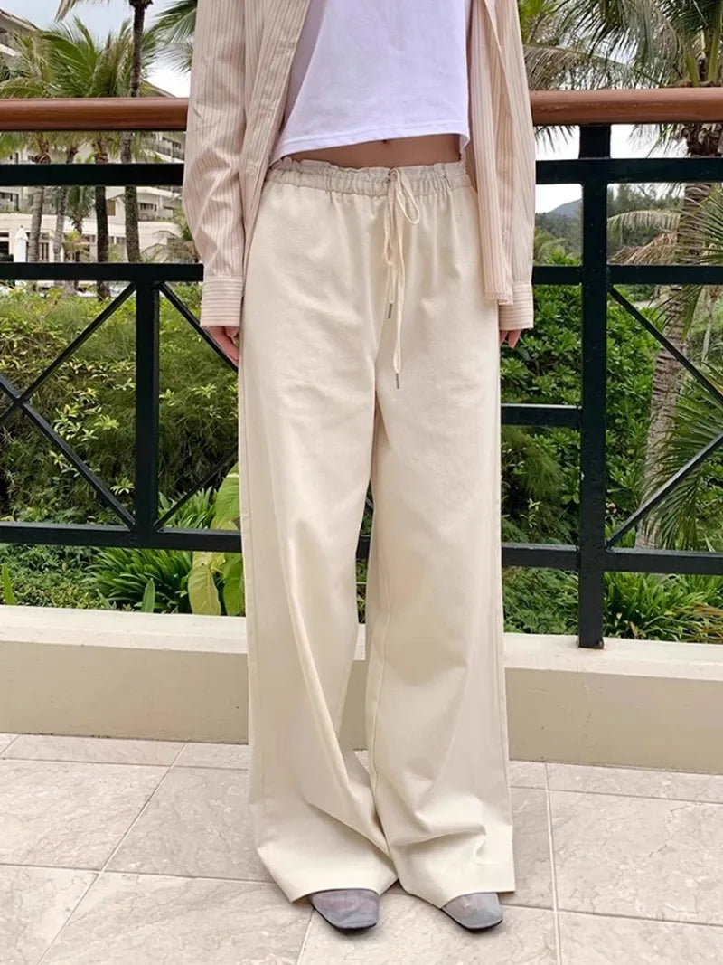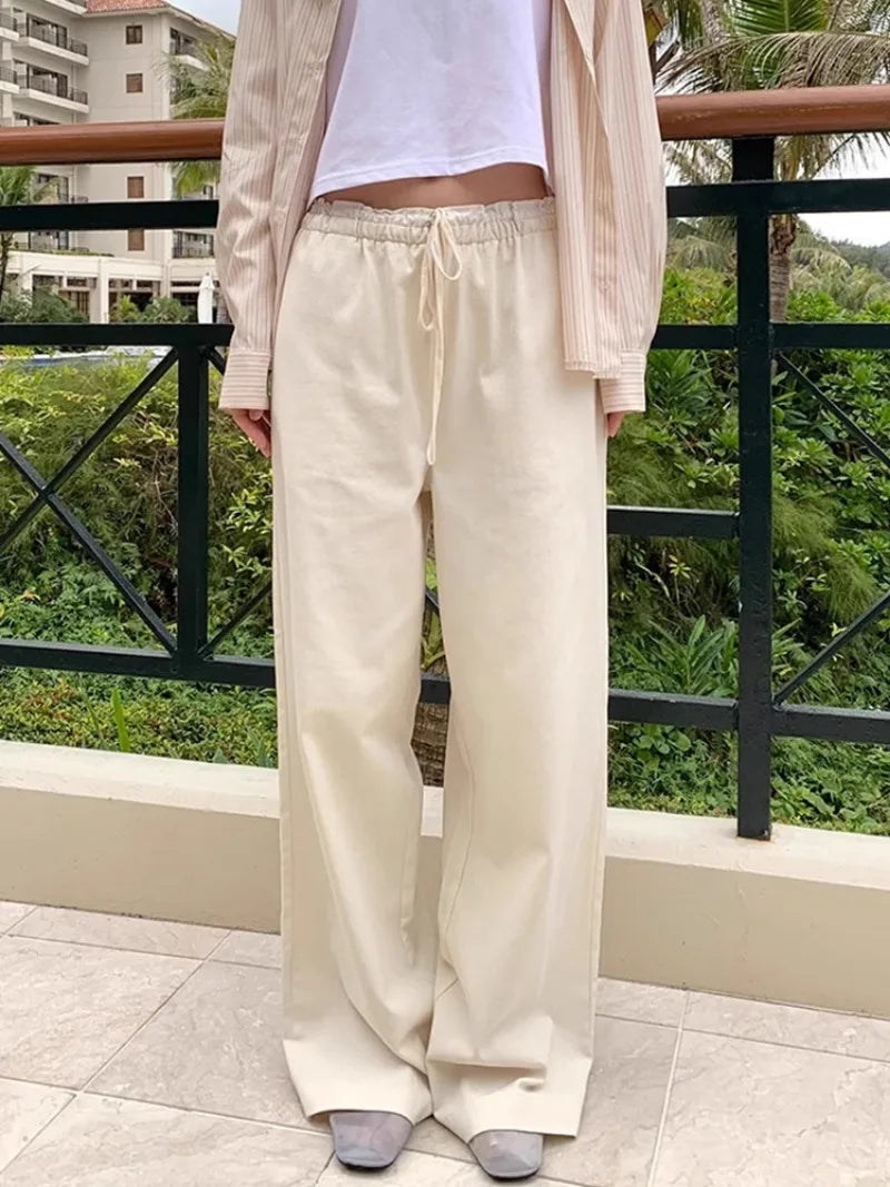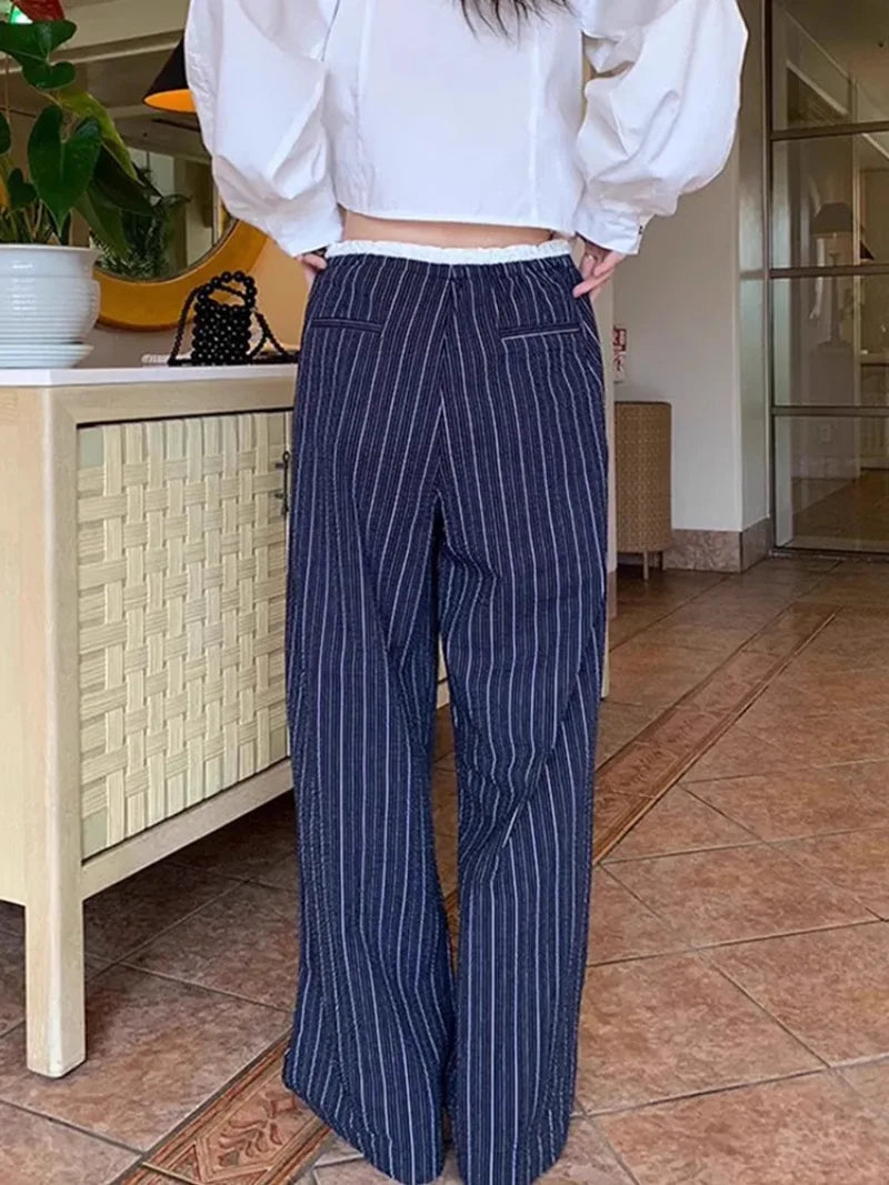 KYLETHOMASW - Mushroom Waist Splicing Lace Striped Casual 2025 Spring Women Simple Niche Design Sense New High Waist Wide Leg Pants