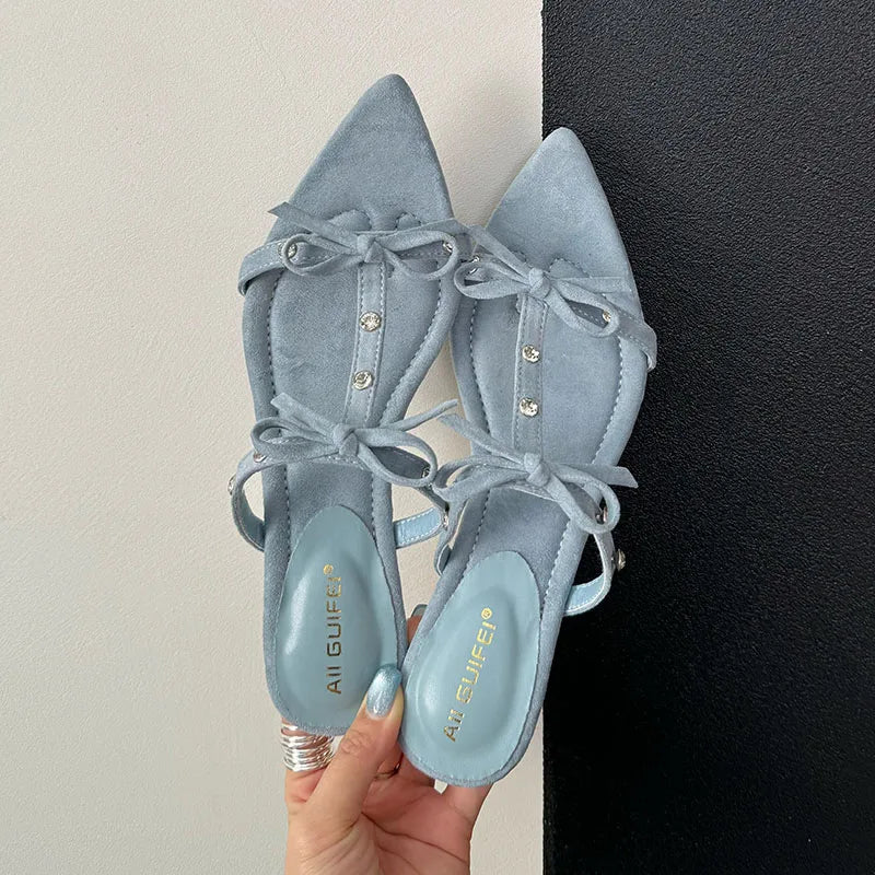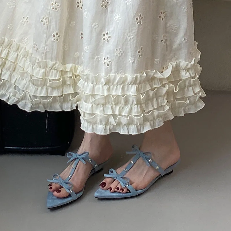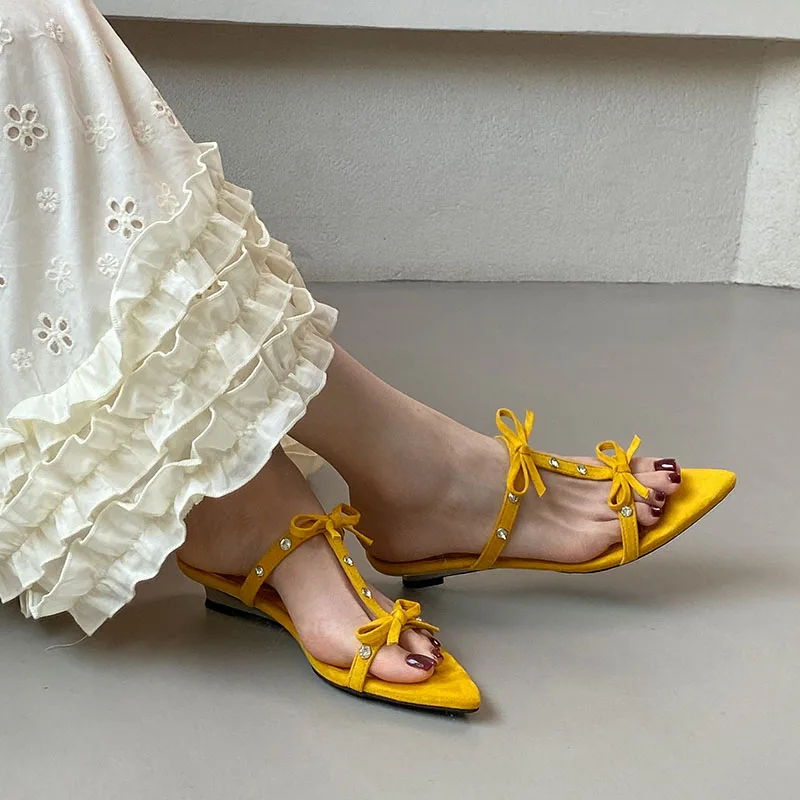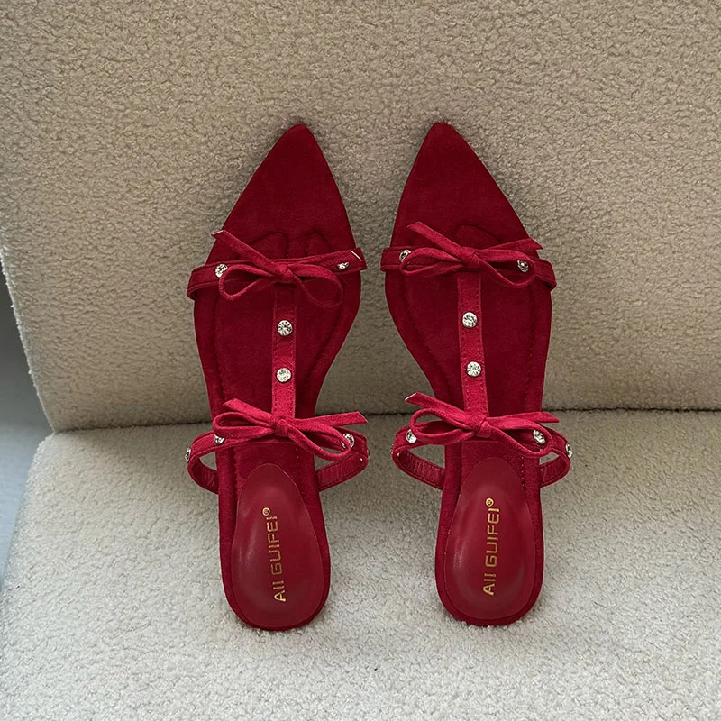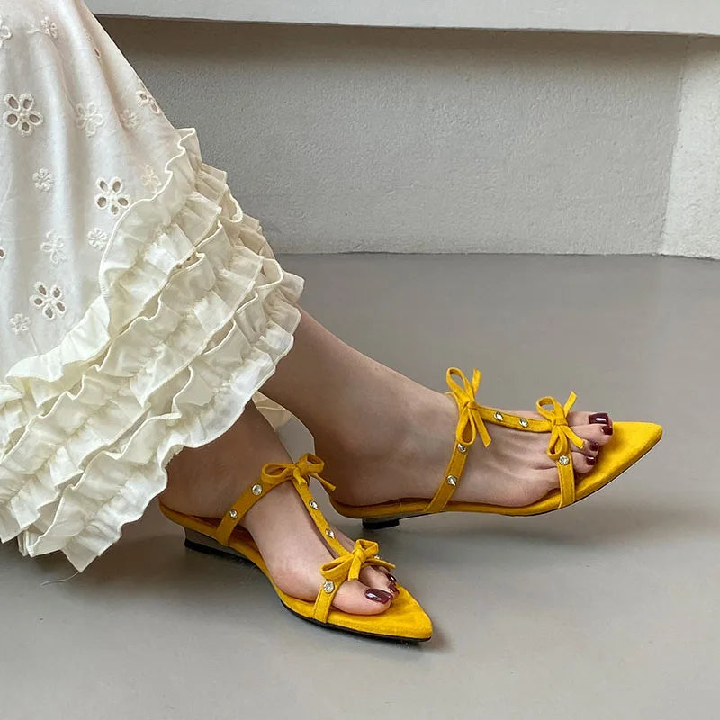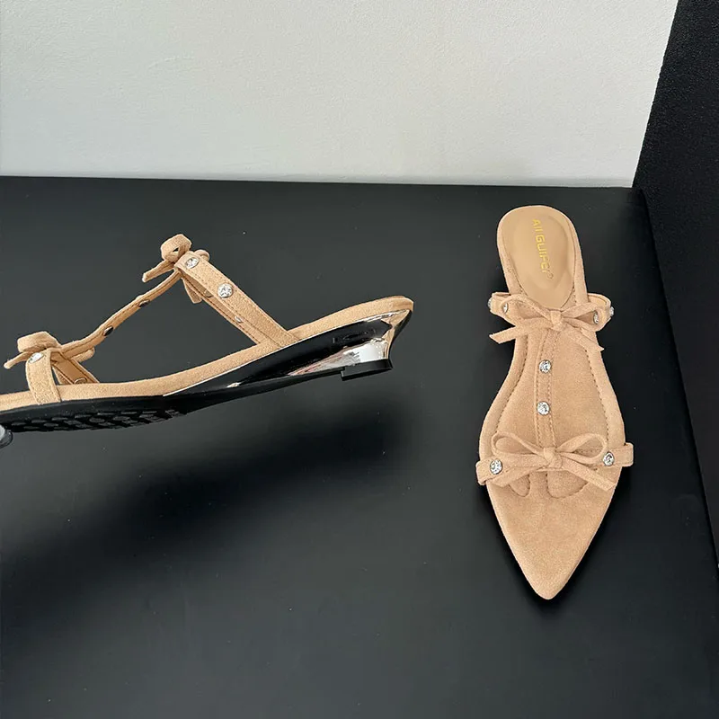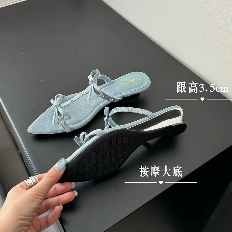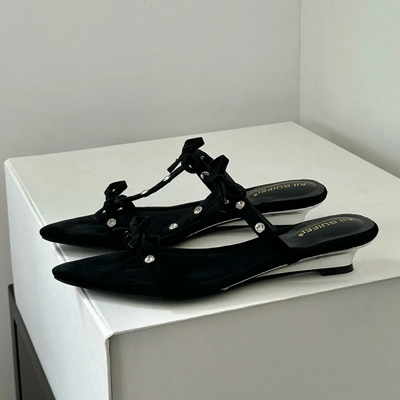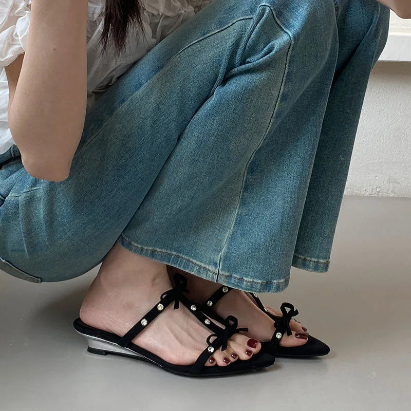 KYLETHOMASW - New Footwear Pointed Toe Women Wedges Slippers Female Slides Fashion Butterfly-Knot Ladies Heeled Slippers Sandals Shoes Pumps