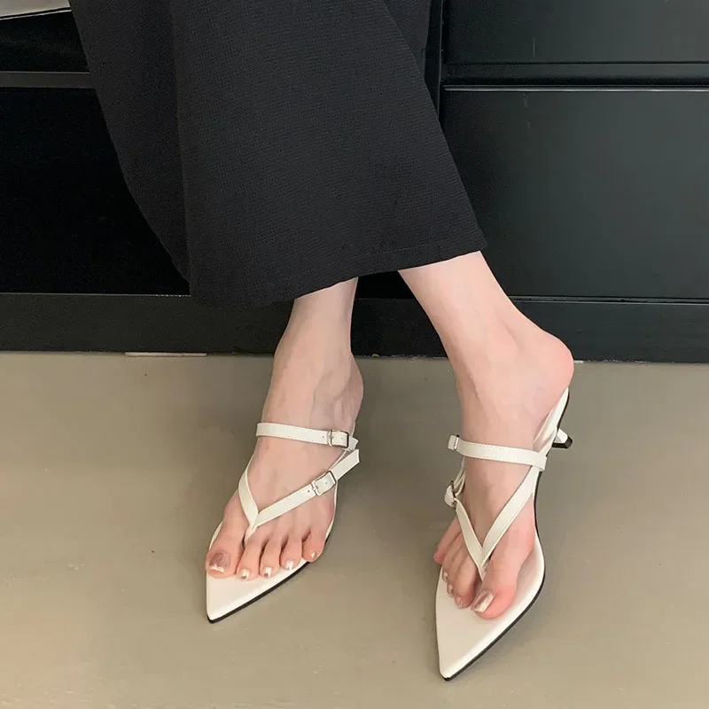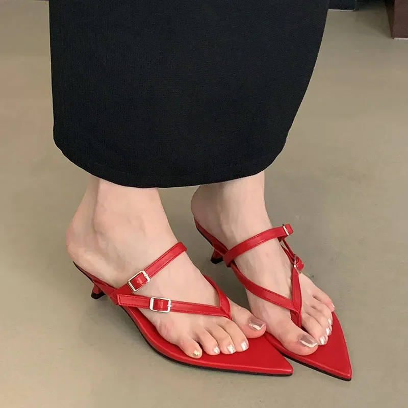 KYLETHOMASW - New Pointed Buckle Women Wedge Flip Flops Fashion Beach Dress Sexy Brand Designer Fashion Women Mule Shoes Slippers Women