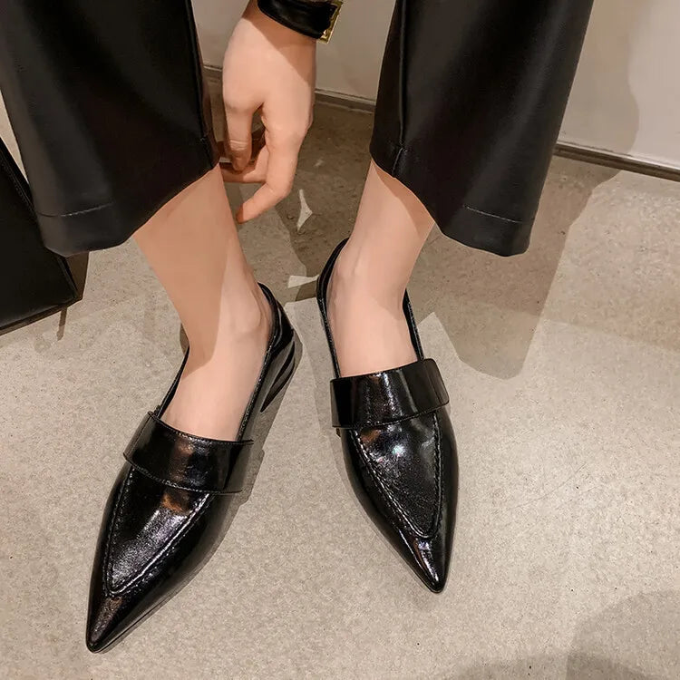 KYLETHOMASW  -  New Retro Pointed Toe Flats Women Loafers Shoes Ladies Summer Patent Leather Casual Walking Shoes Designer