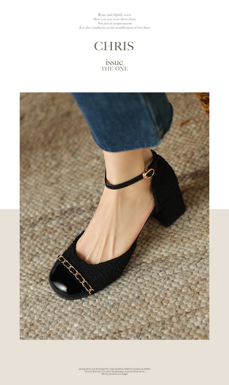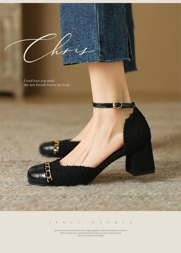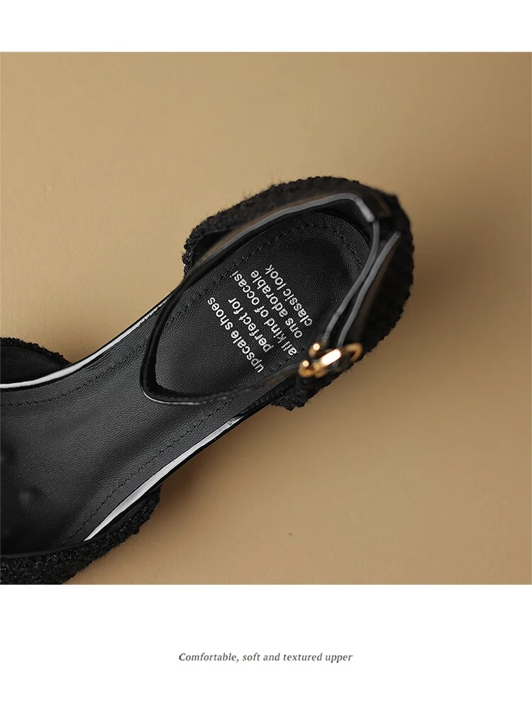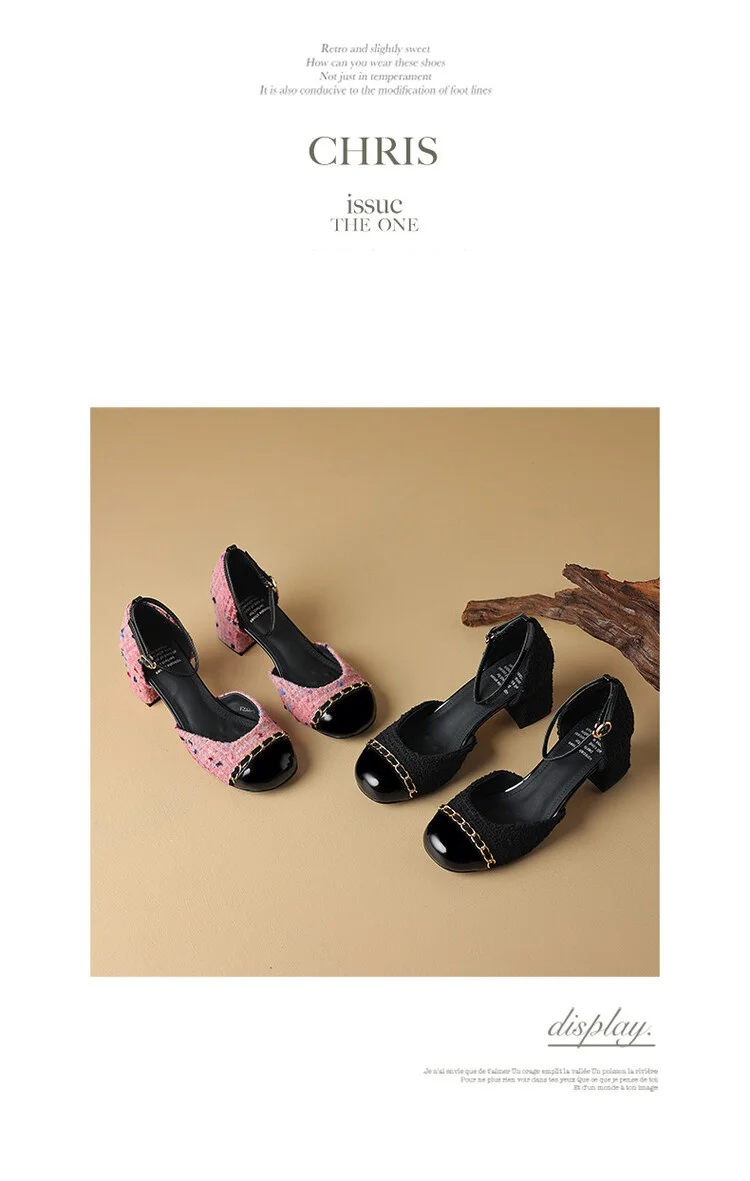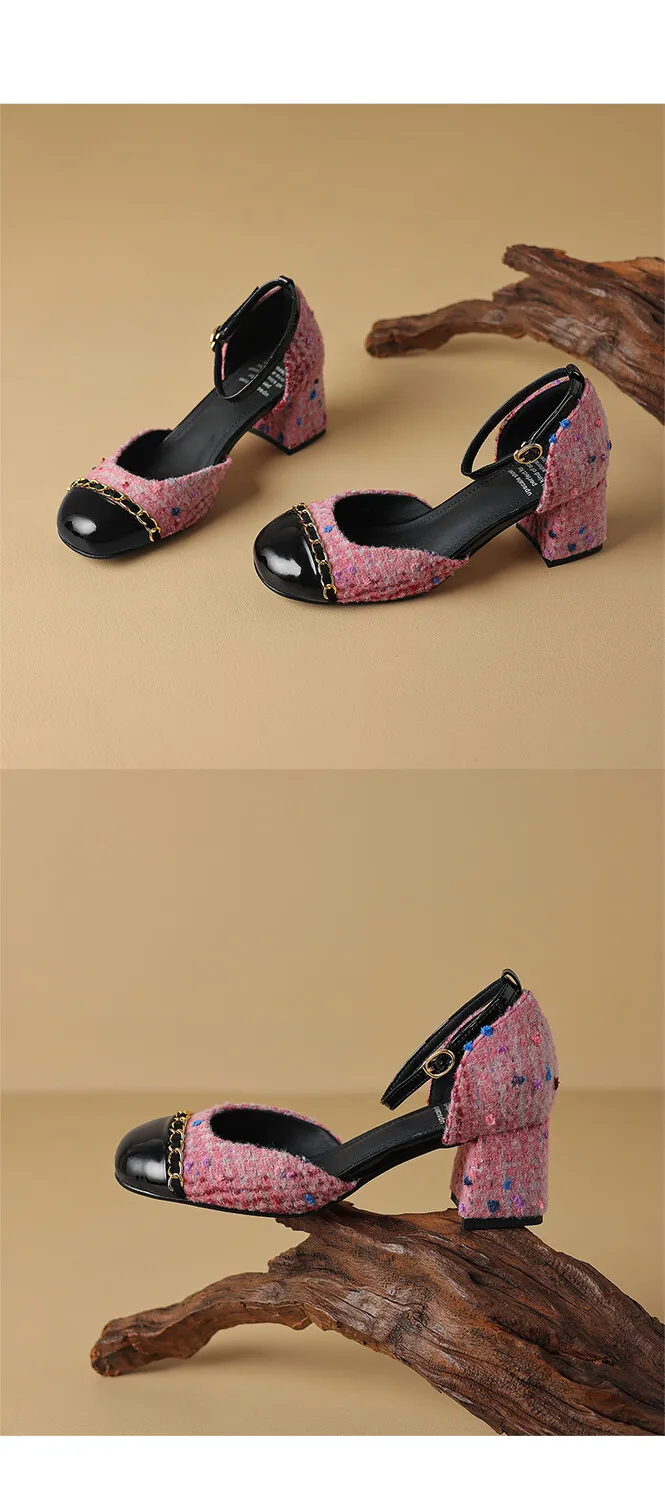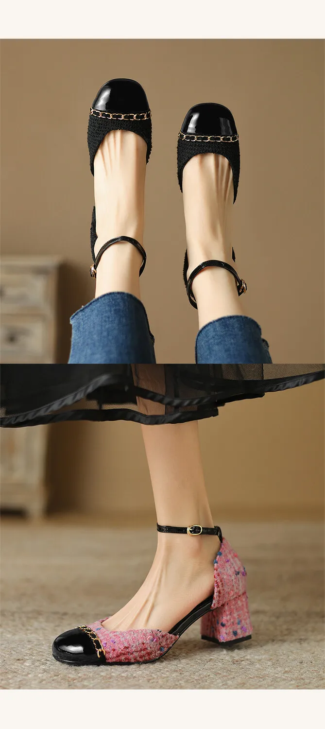 Kylethomasw NEW Summer Women Sandals Cotton Fabric Shoes for Women Cover Toe Chunky Shoes Round Toe Cover Heel Sandals Splicing Chain Shoes