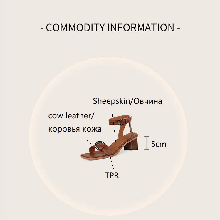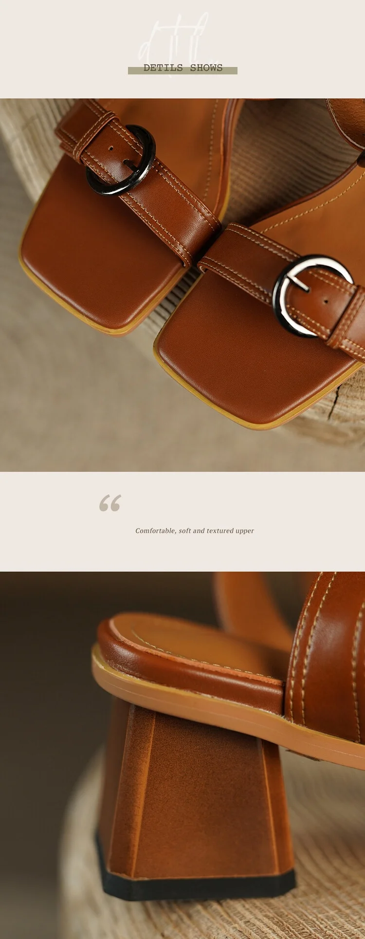 Kylethomasw NEW Summer Women Shoes Square Toe Chunky Heel Women Sandals Cow Leather High Heels Solid Band Shoes Casual Black Shoes for Women
