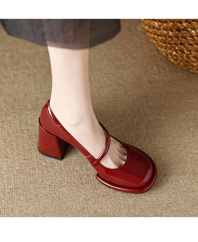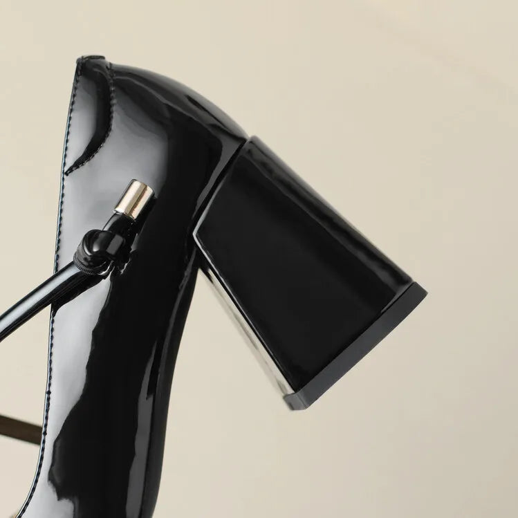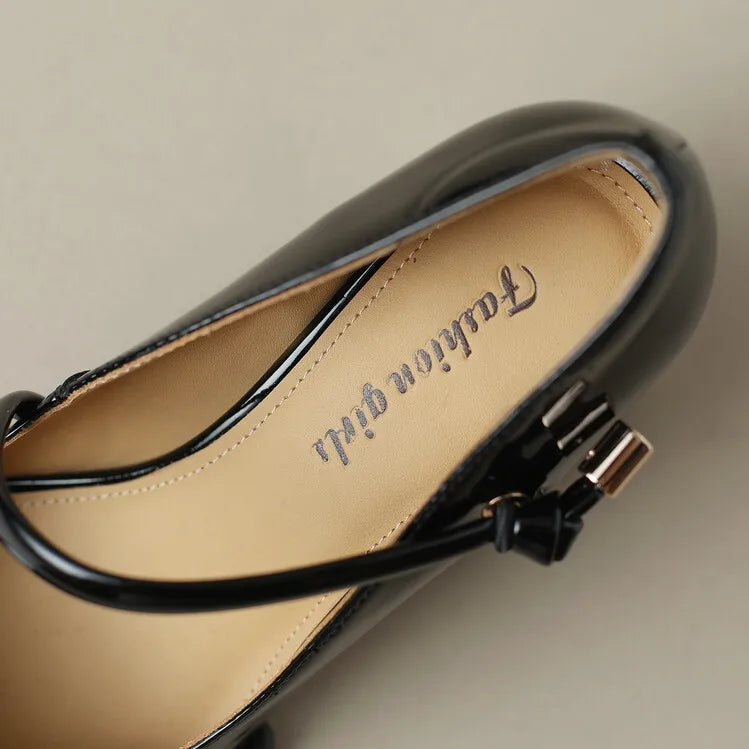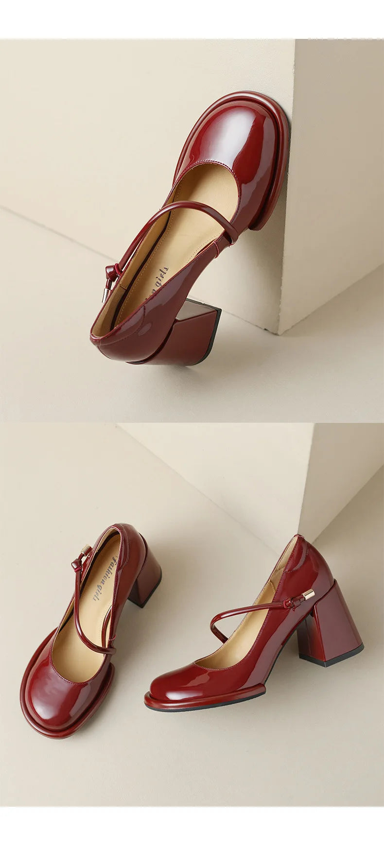 KYLETHOMASW  -  New Women Mary Janes Shoes Vintage Pumps Patent Leather Shoes High Heels Dress Shoes Black Shallow Boat Shoe Zapatos Mujer
