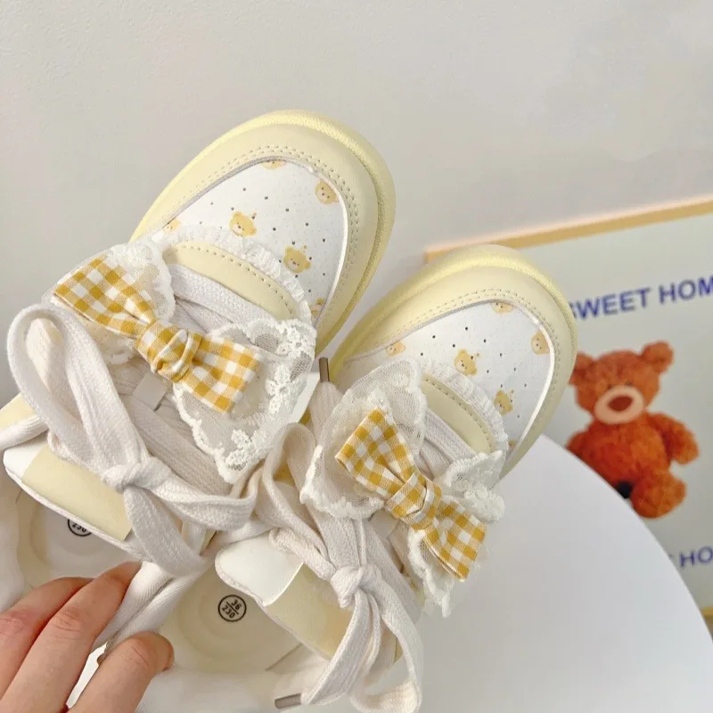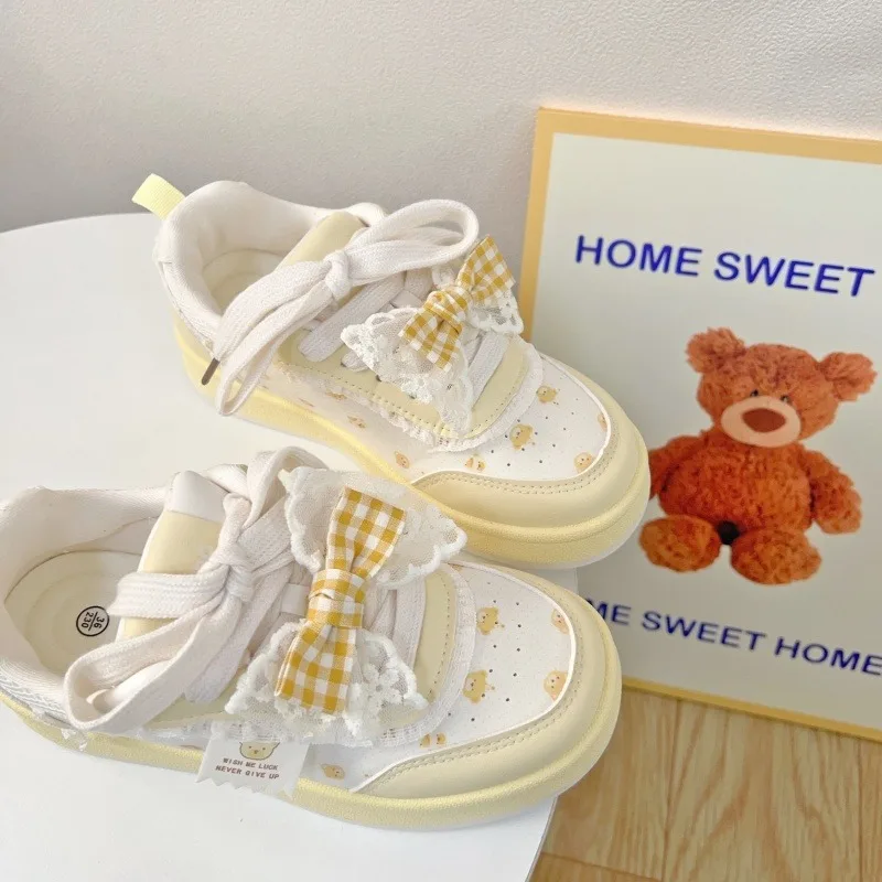 KYLETHOMASW - New Women Students Sneakers Fashion Cute Ladies Causal Shoes School Patchwork Non-slip Women's Sports Shoes with Bowknot